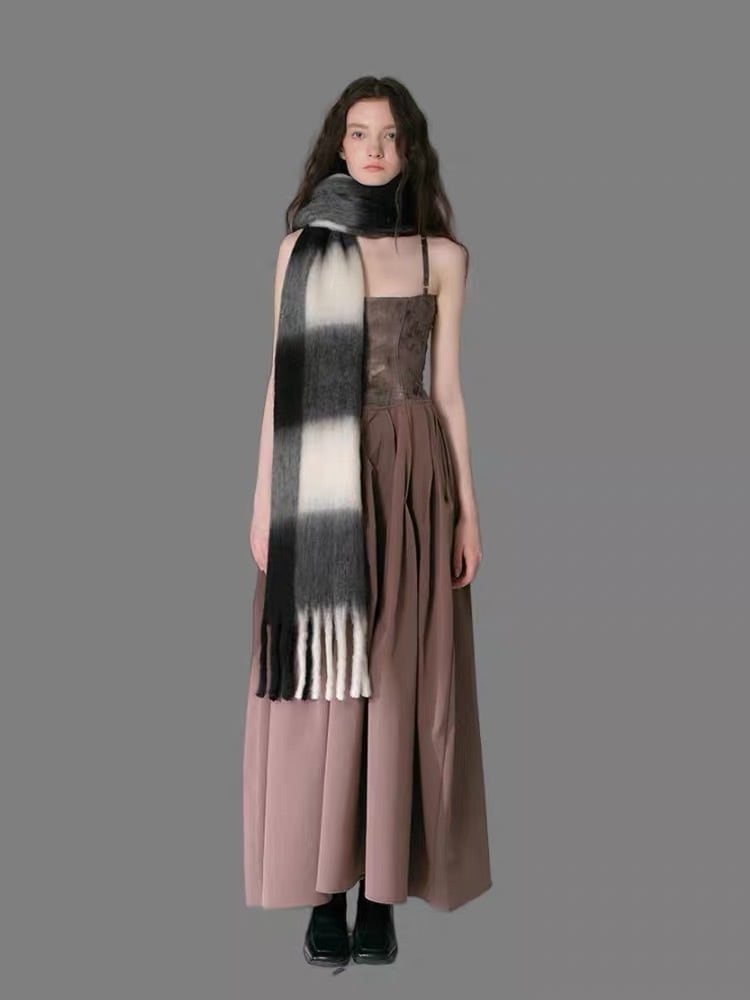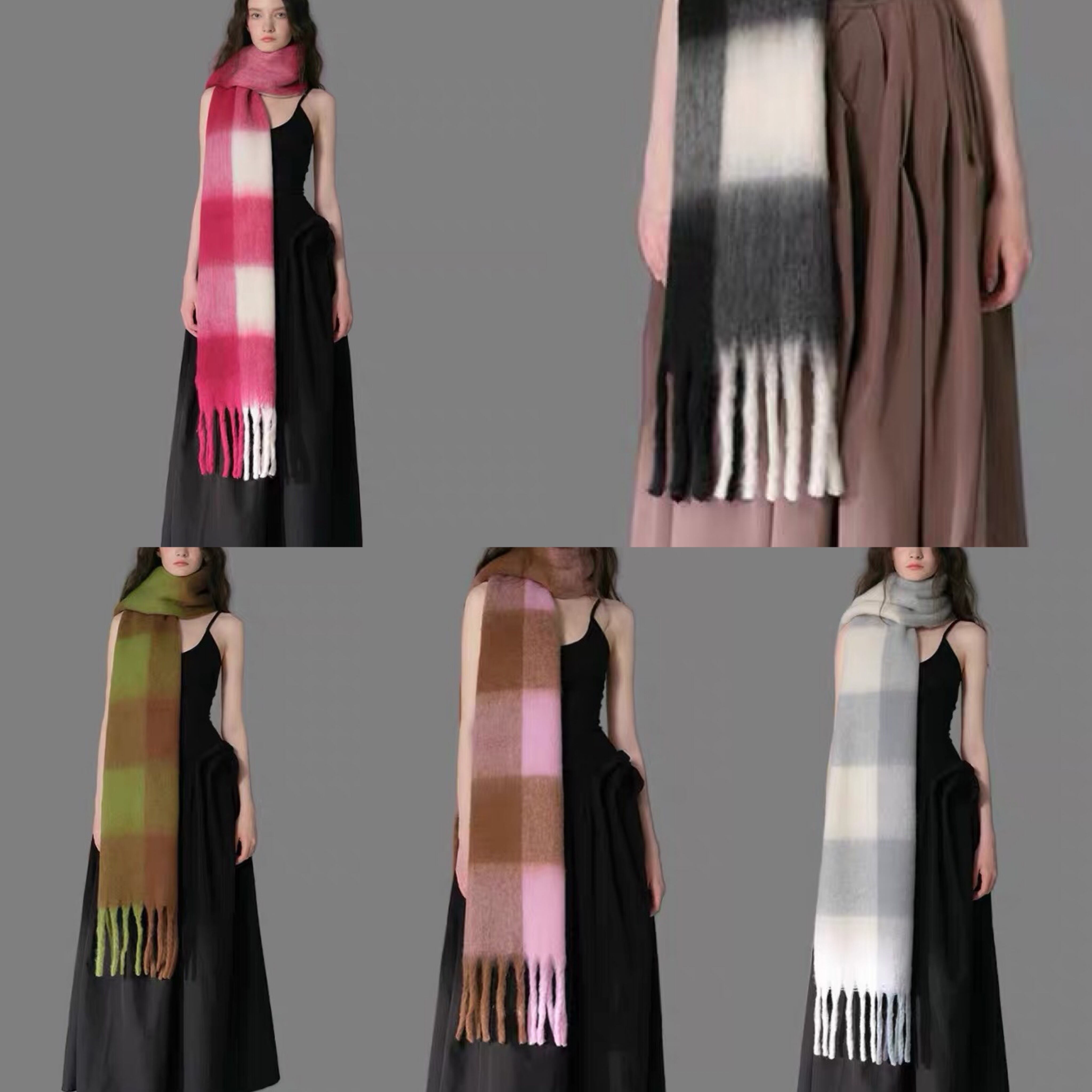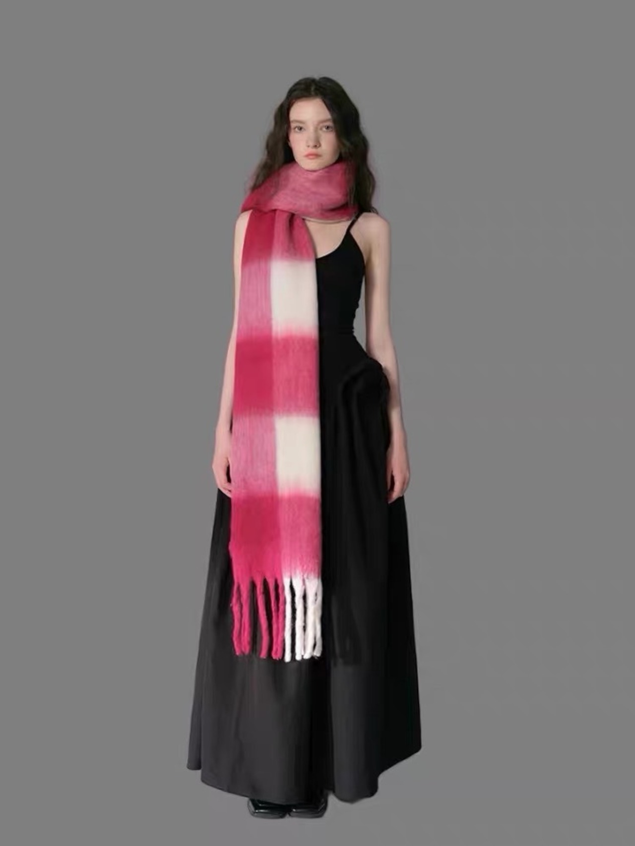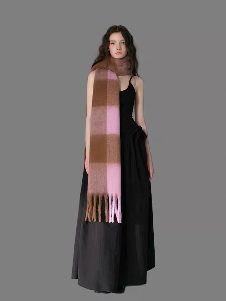 マフラー チェック 白 黒 ピンク 茶色 緑 グレー