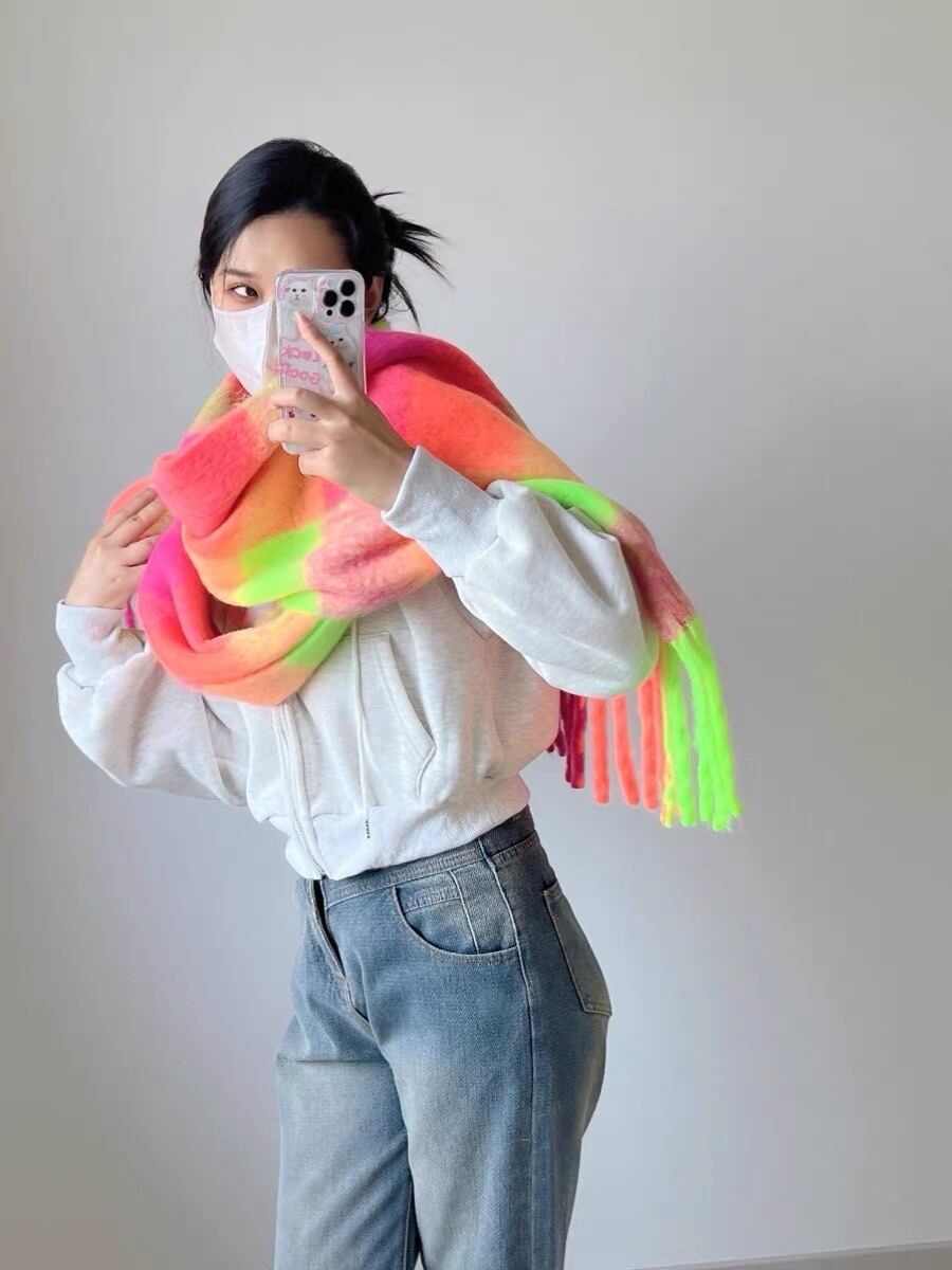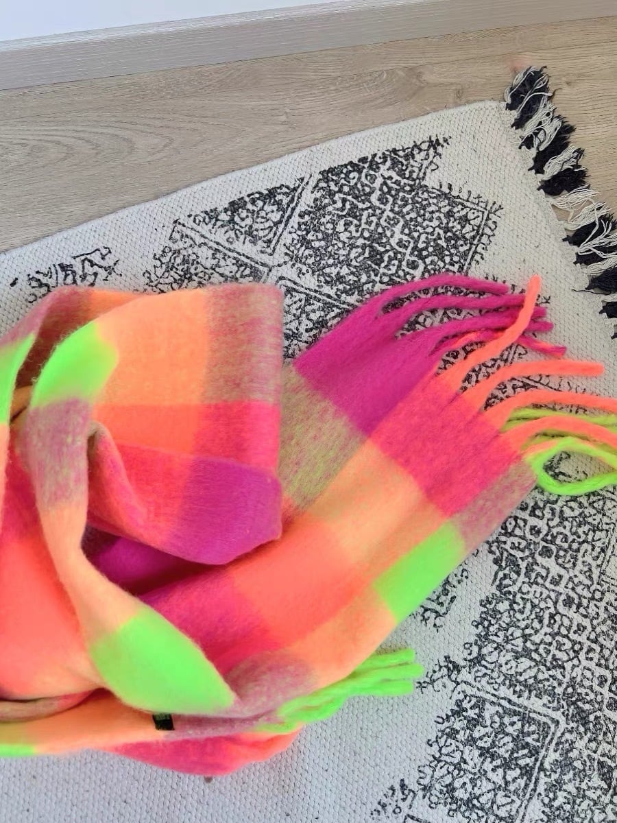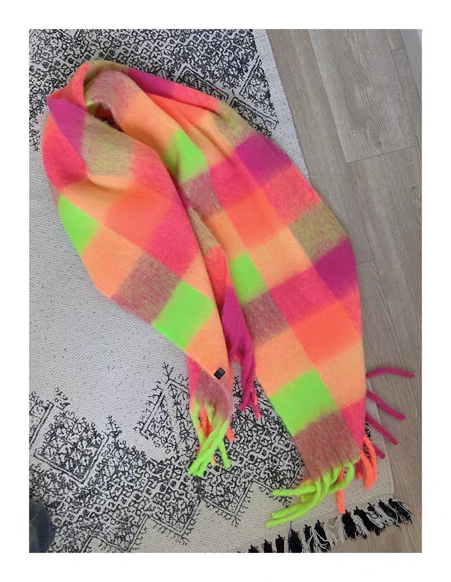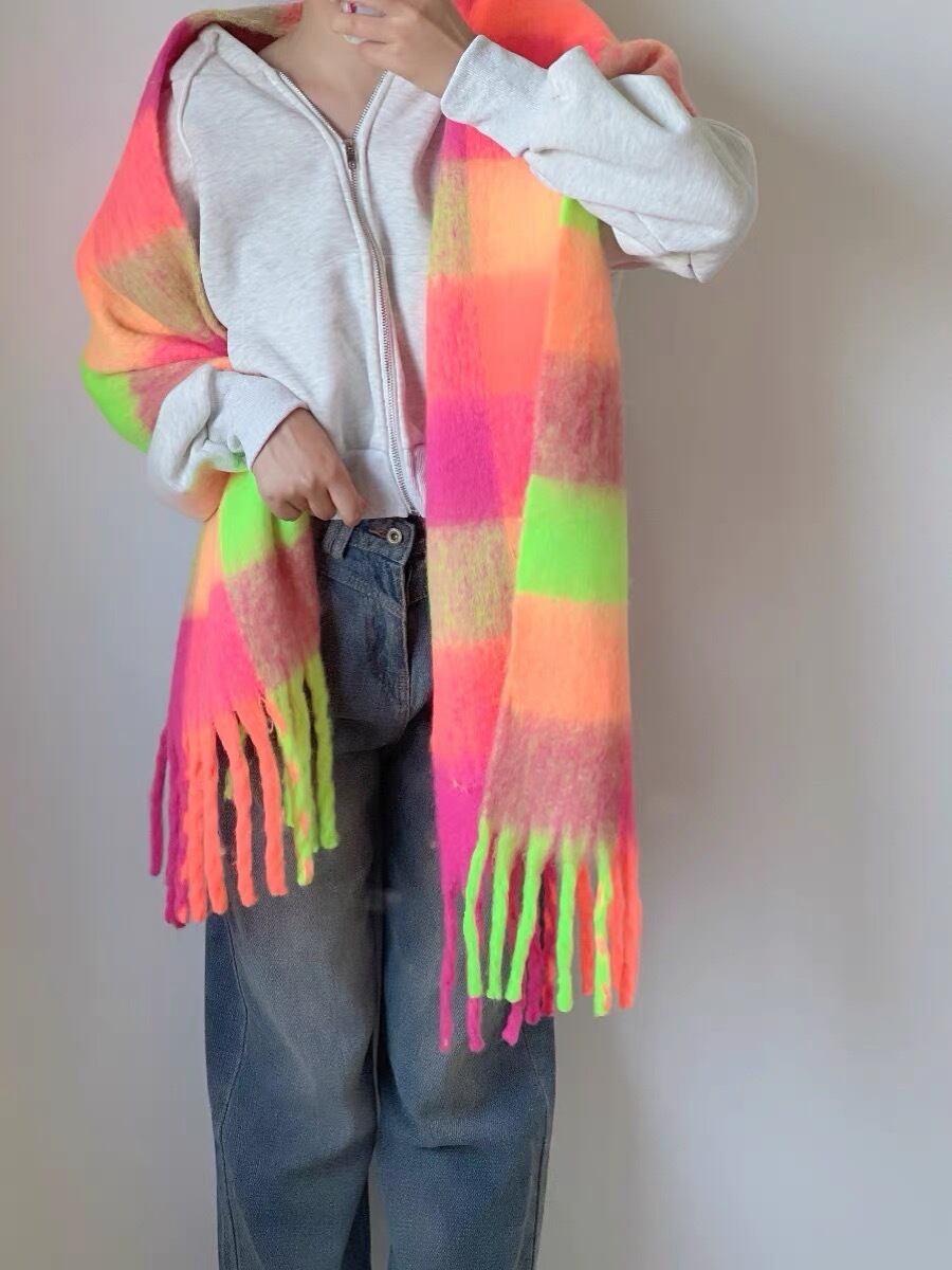 オレンジ 黄色 ピンク マフラー チェック ショール 蛍光