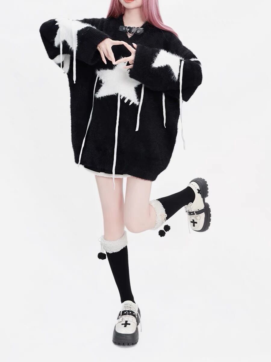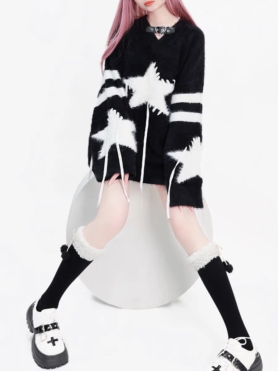 セーター 星 ニット 黒 カジュアル トップス