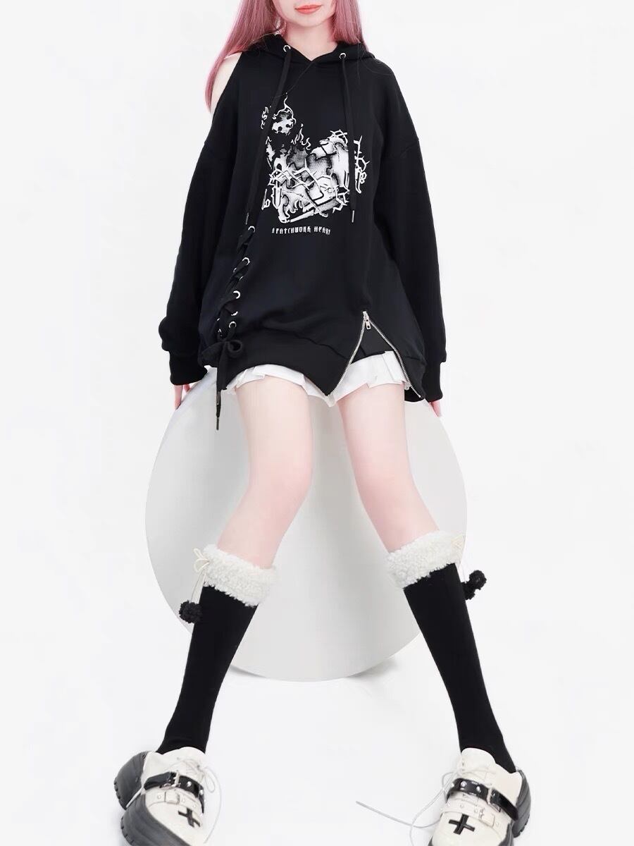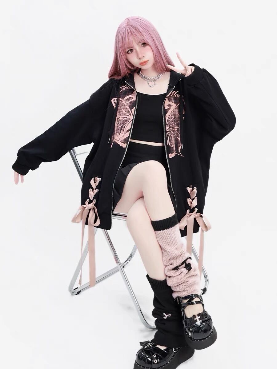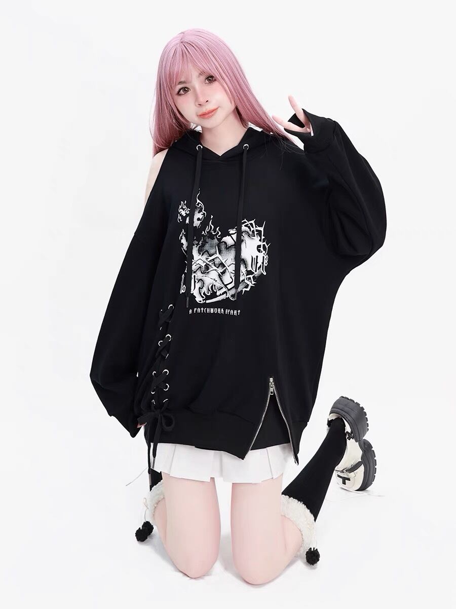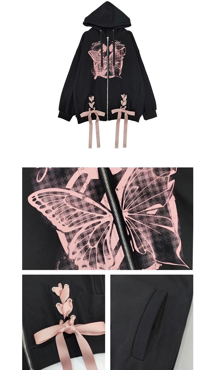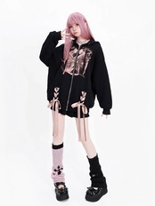 パーカー 黒 リボン スウェット カジュアル トレーナー