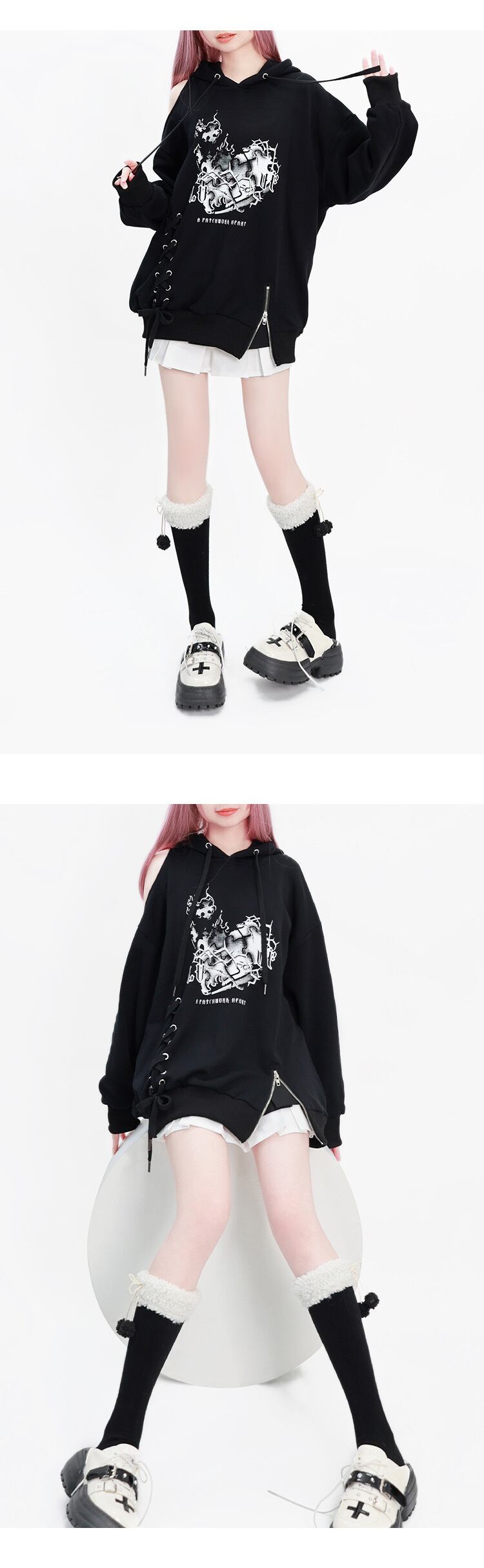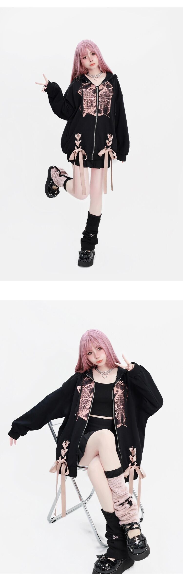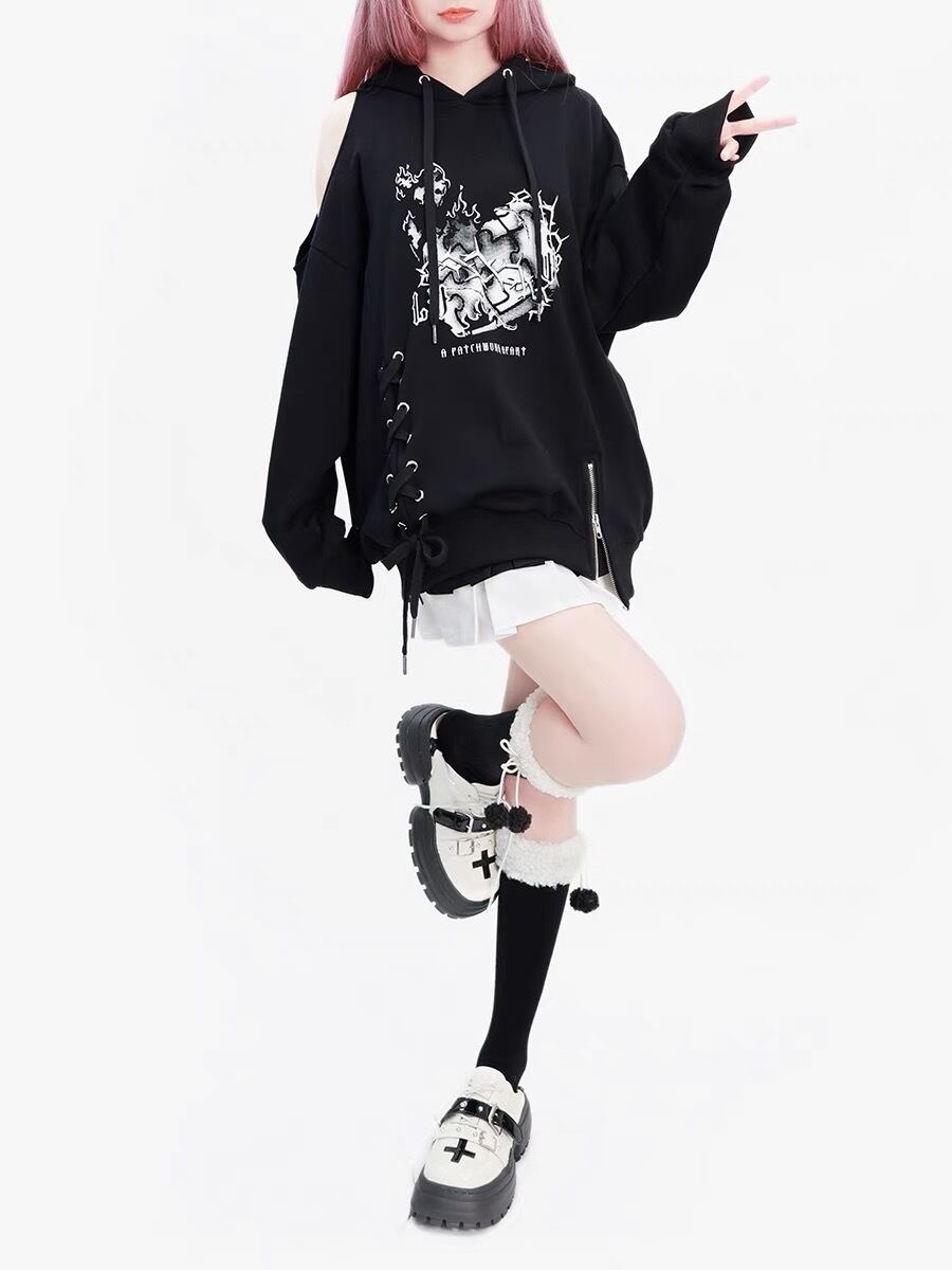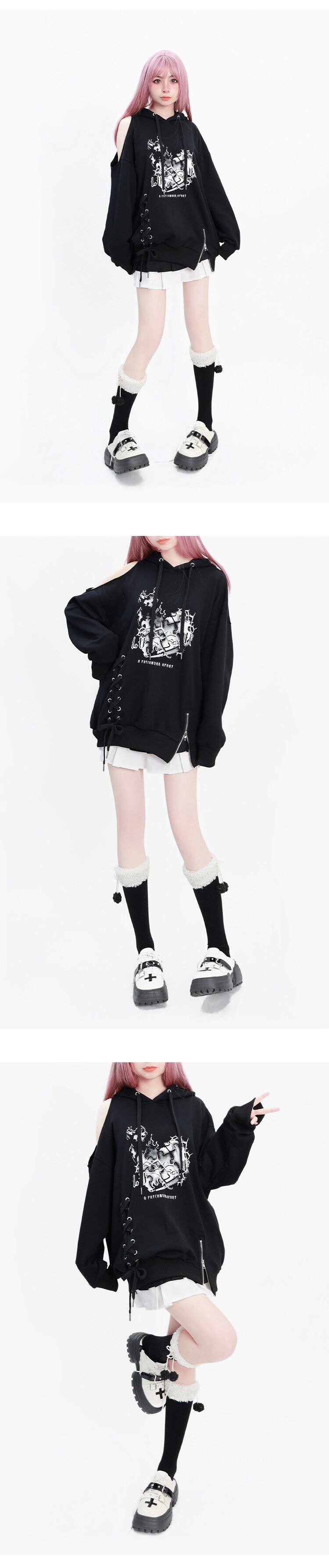 パーカー 黒 リボン スウェット カジュアル トレーナー