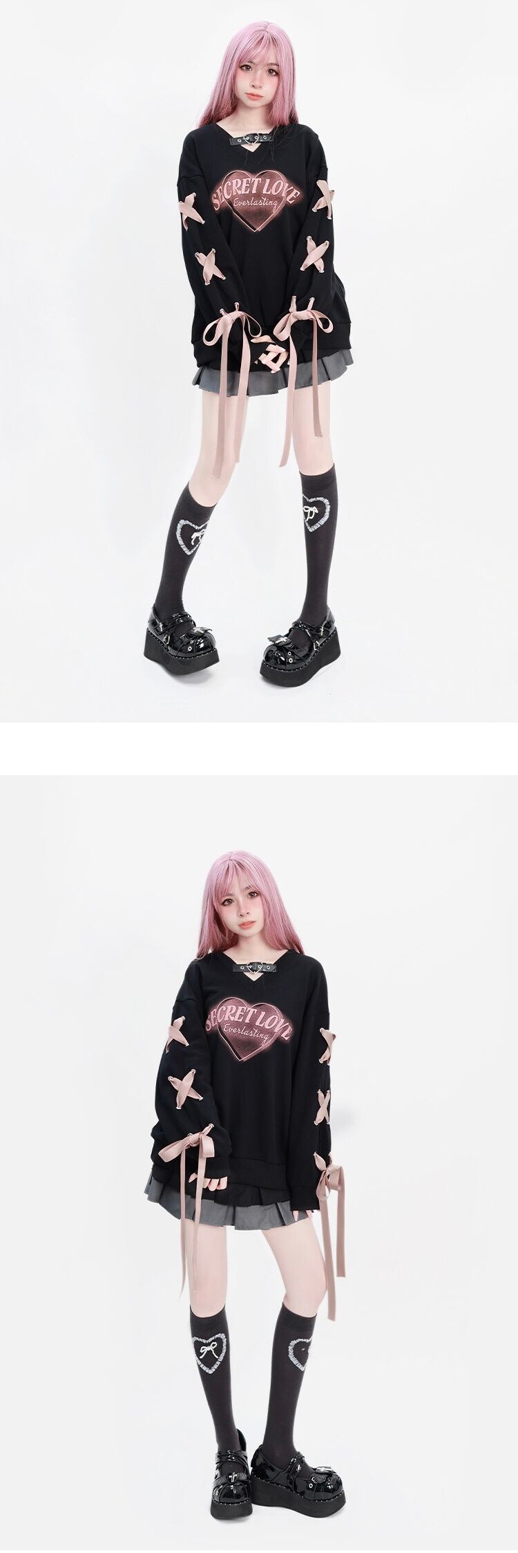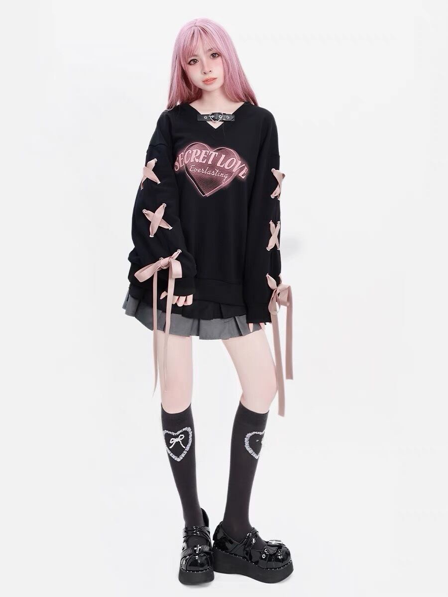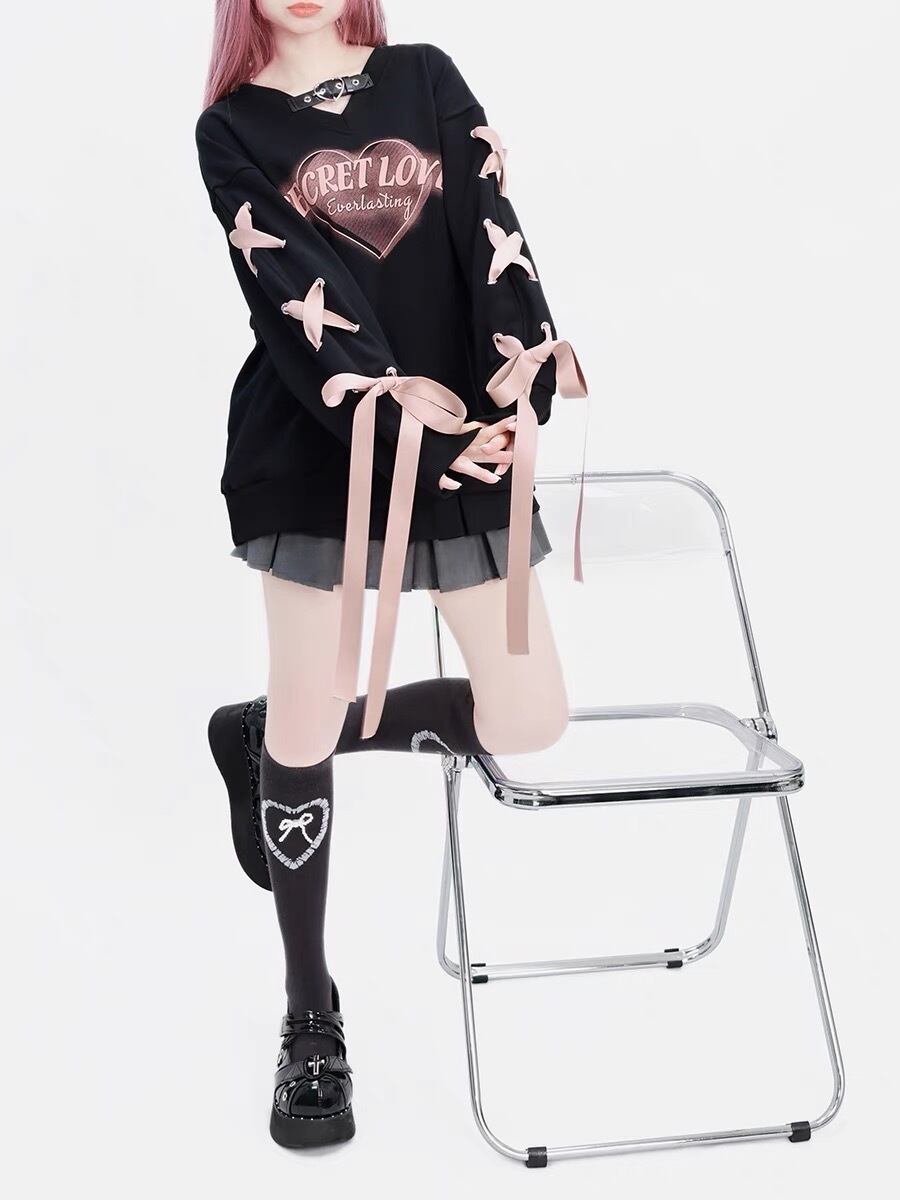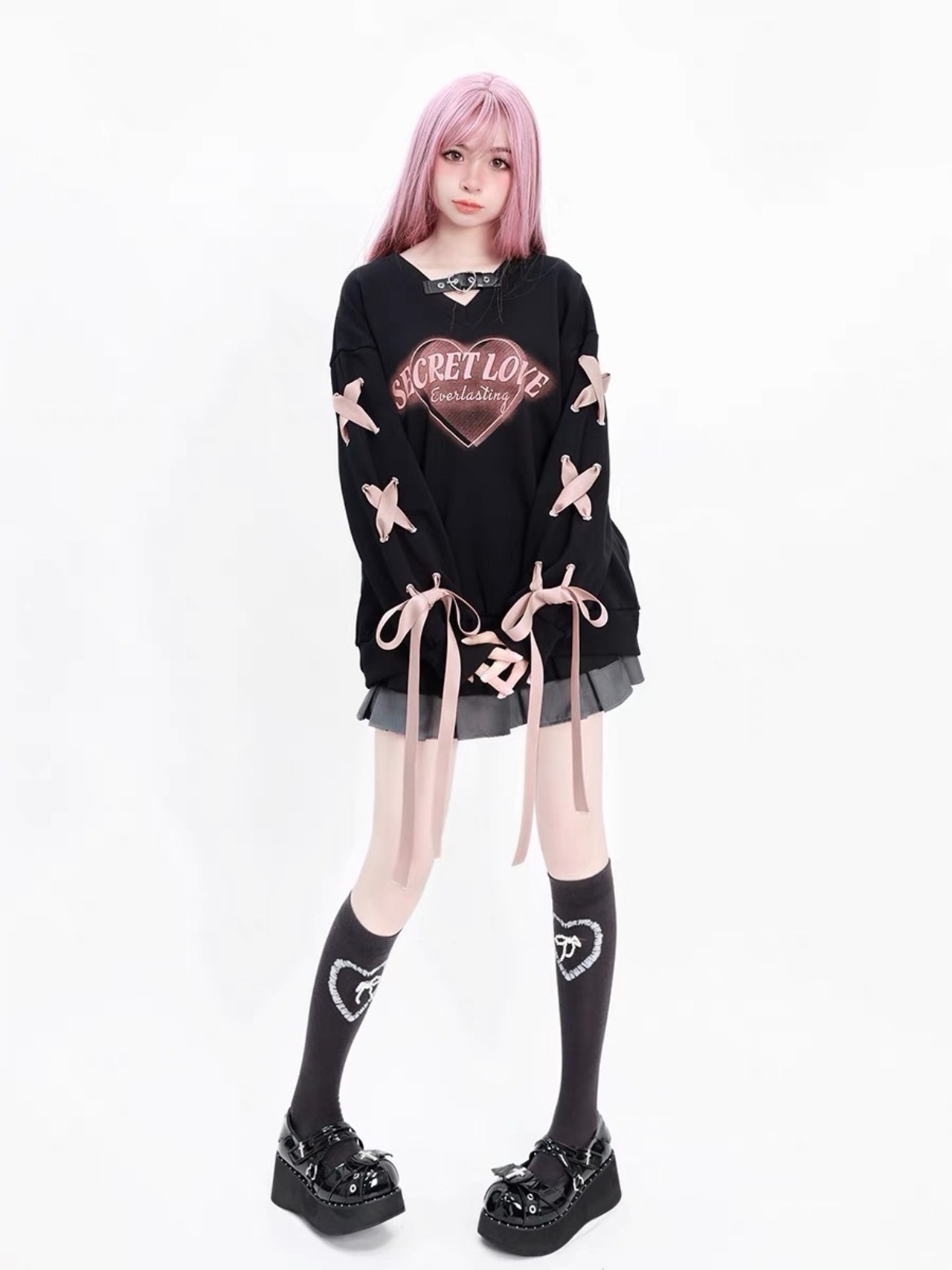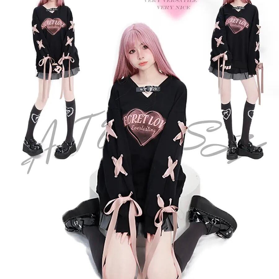 【1点のみ❣️】トレーナー カジュアル リボン ピンク 黒 パーカー