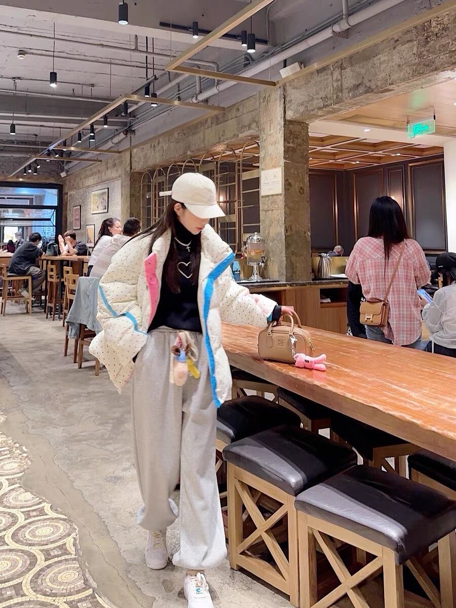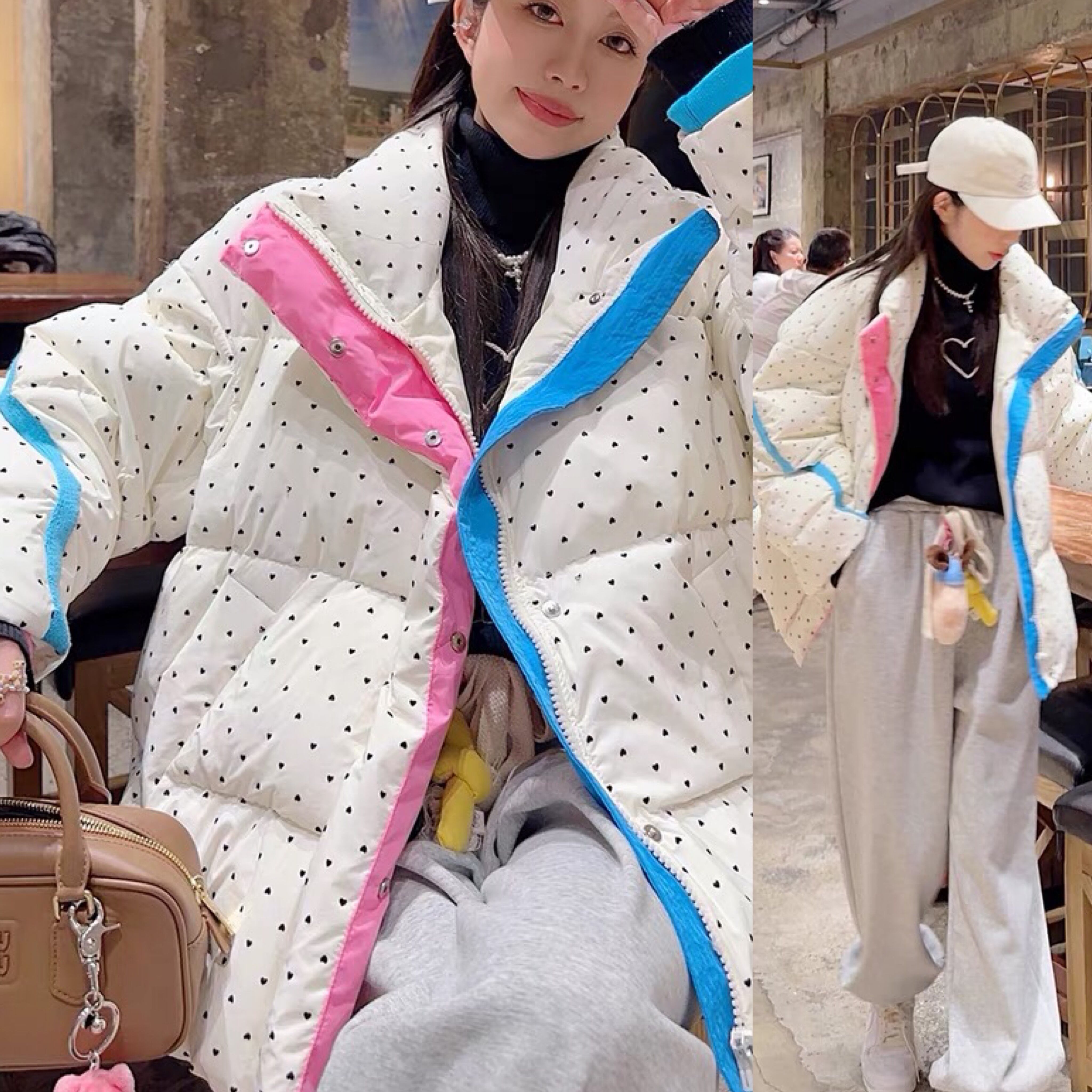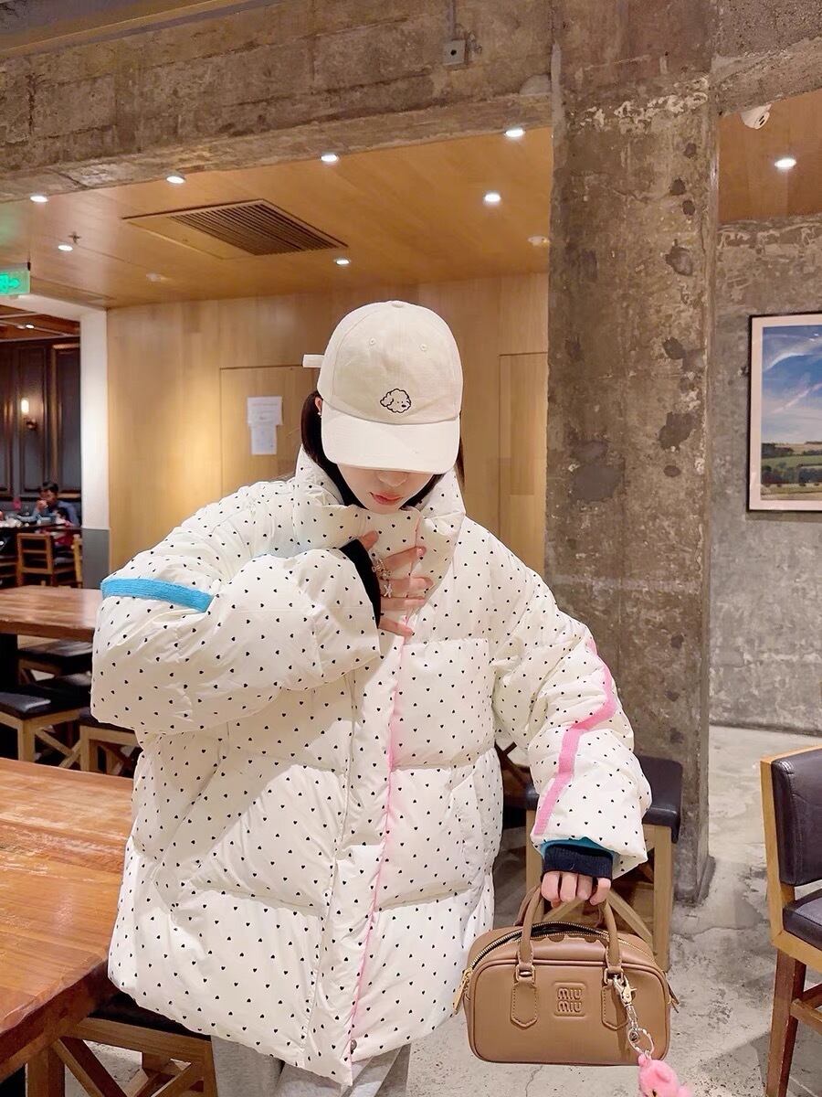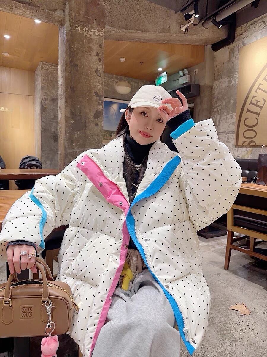 ダウン アウター コート 水玉 ピンク 水色 ゆったり
