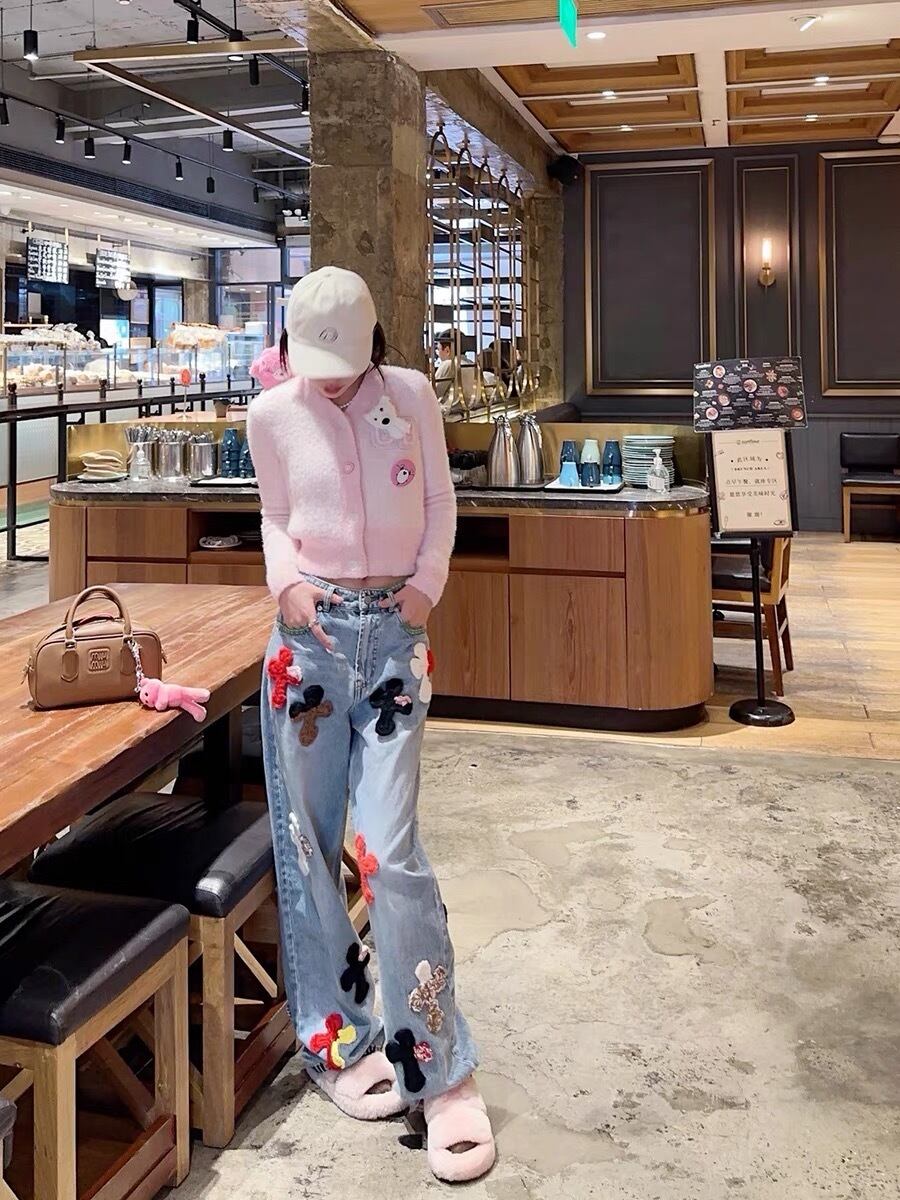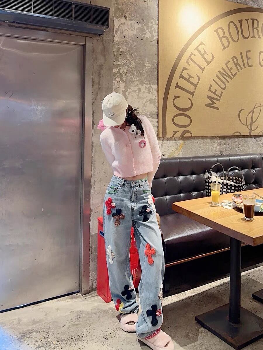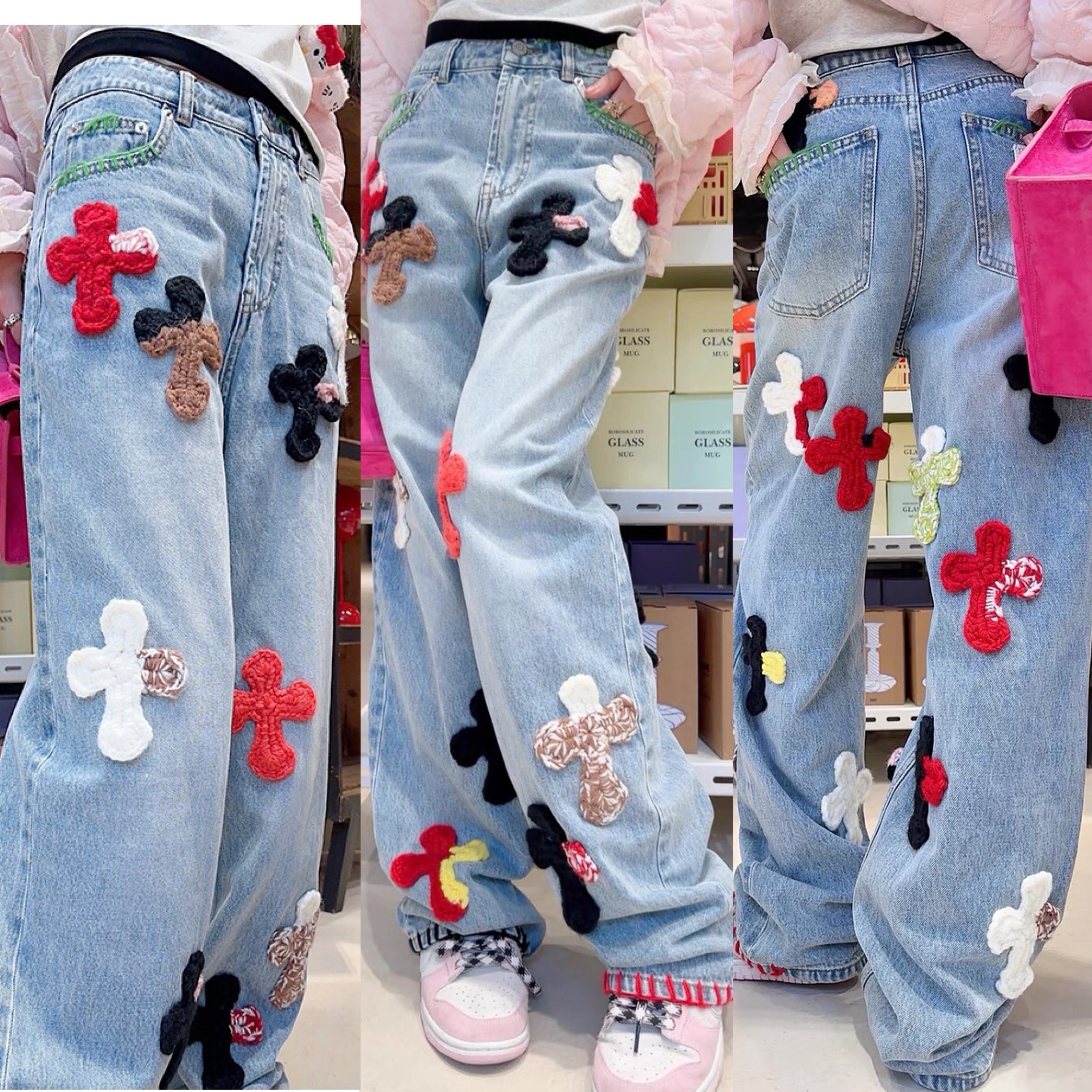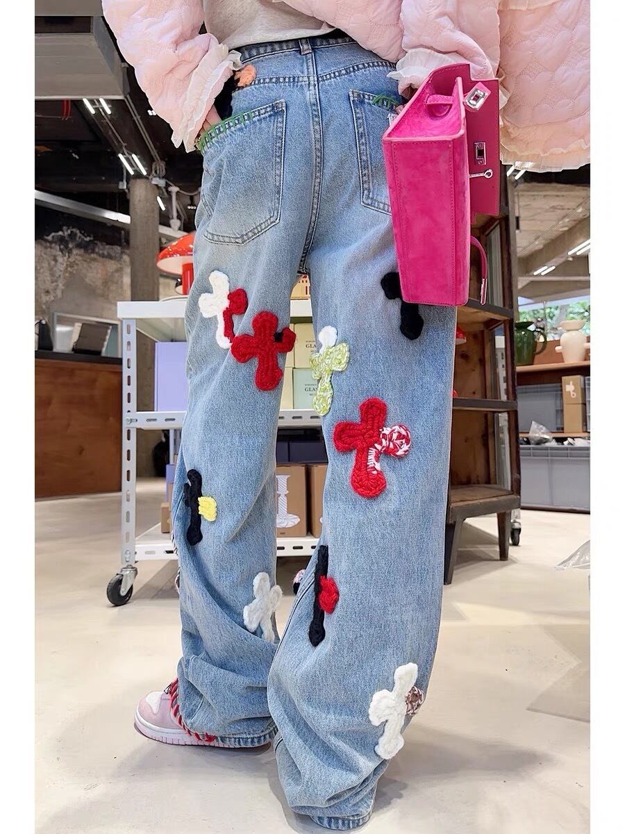 デニム ジーンズ カラフル ボトムス 水色 デコ