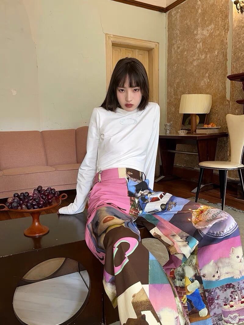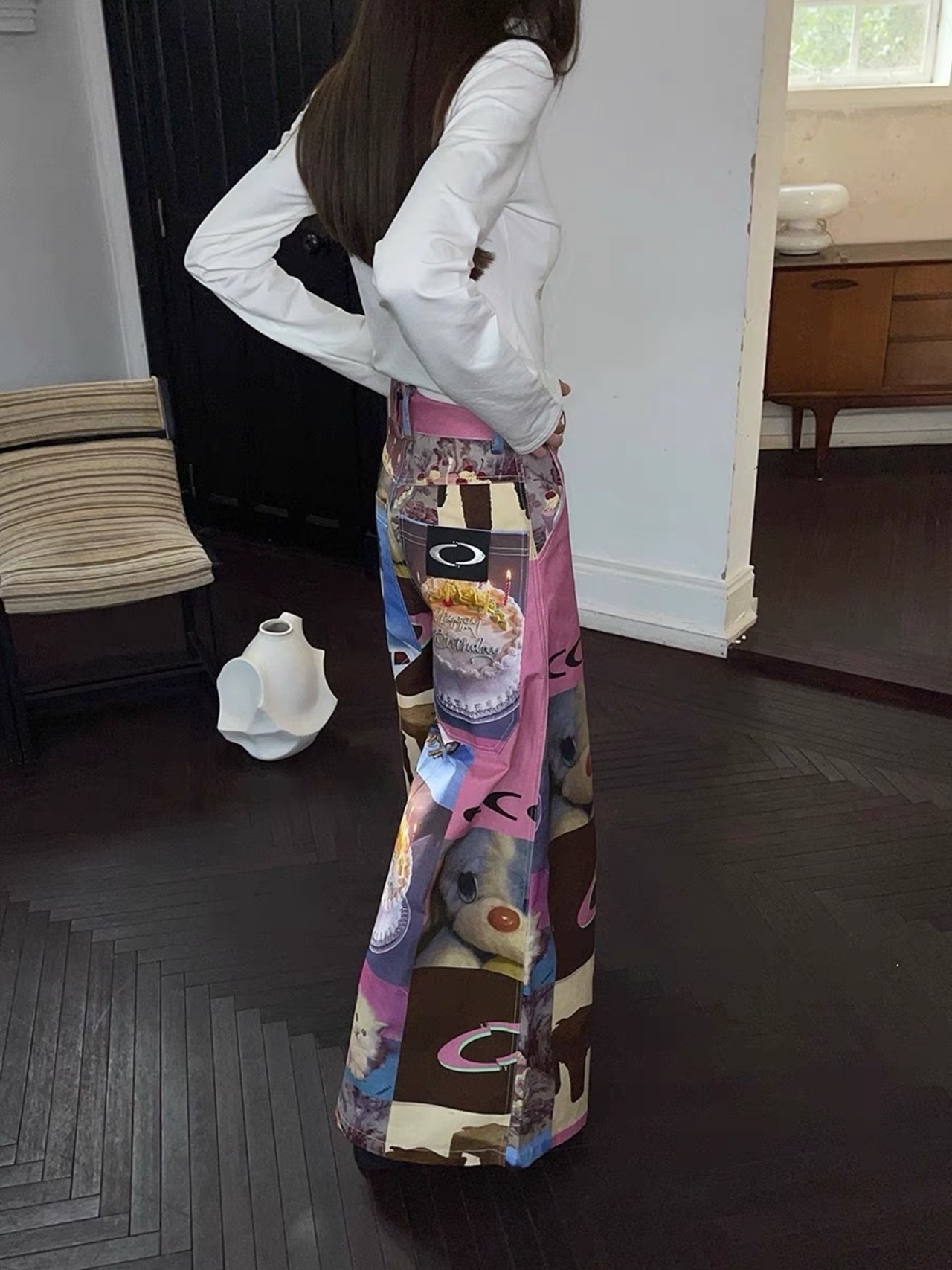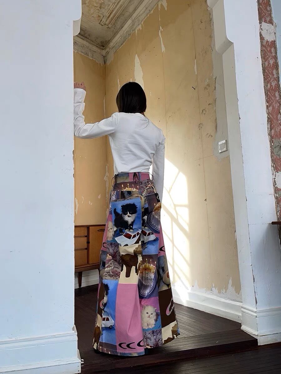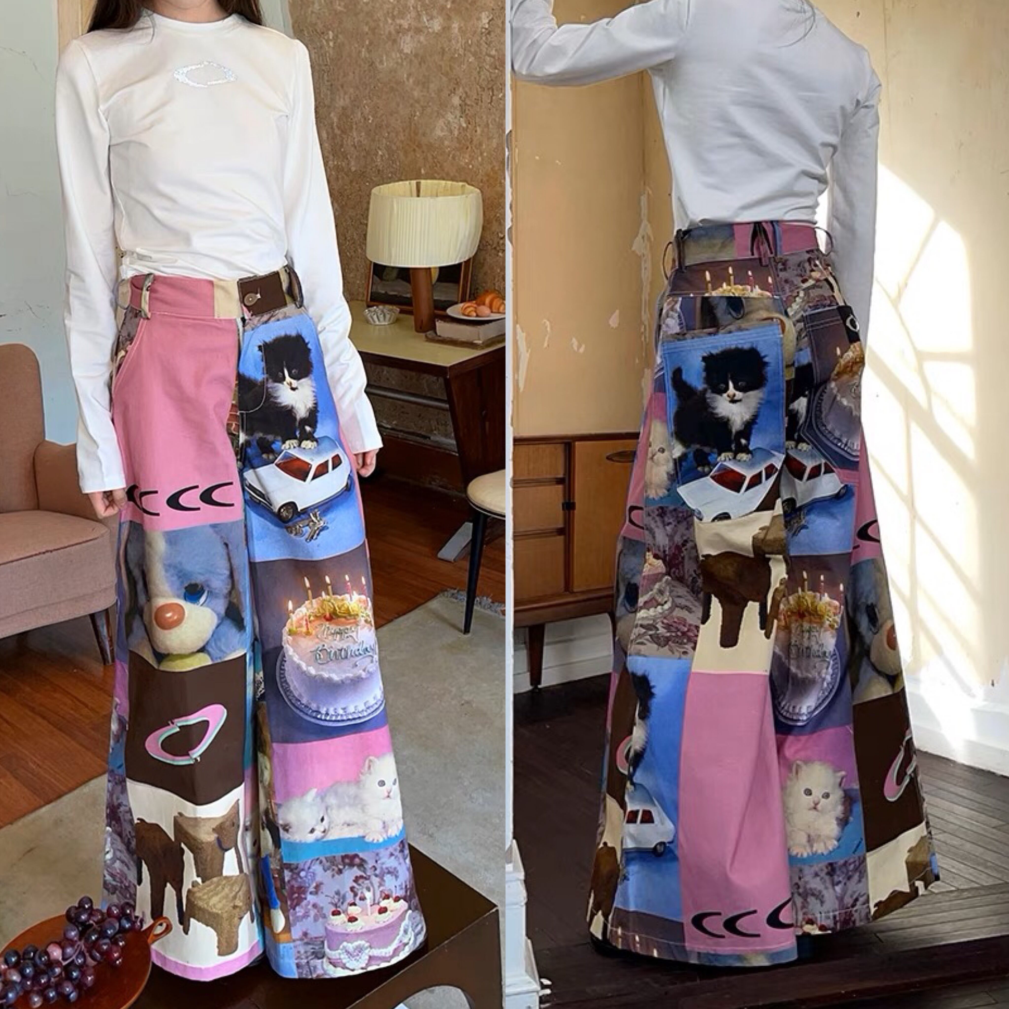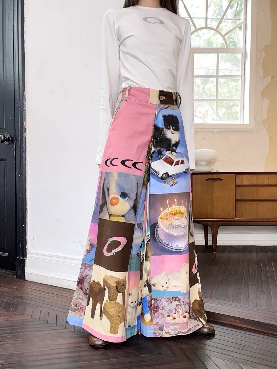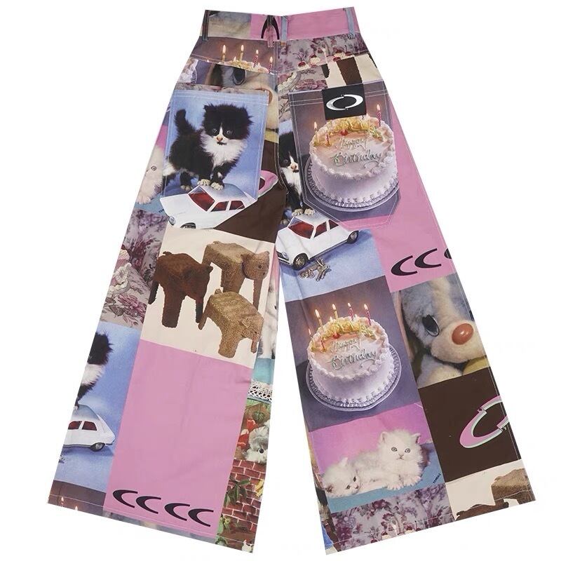 パンツ ズボン ボトムス カラフル ピンク ねこ 可愛い