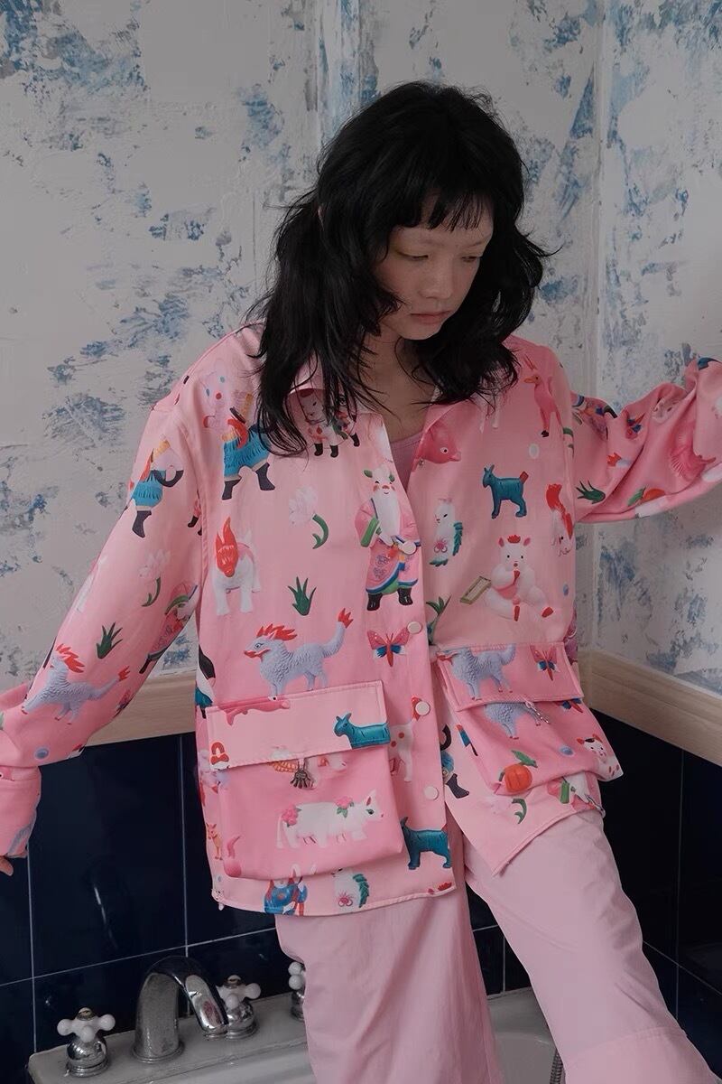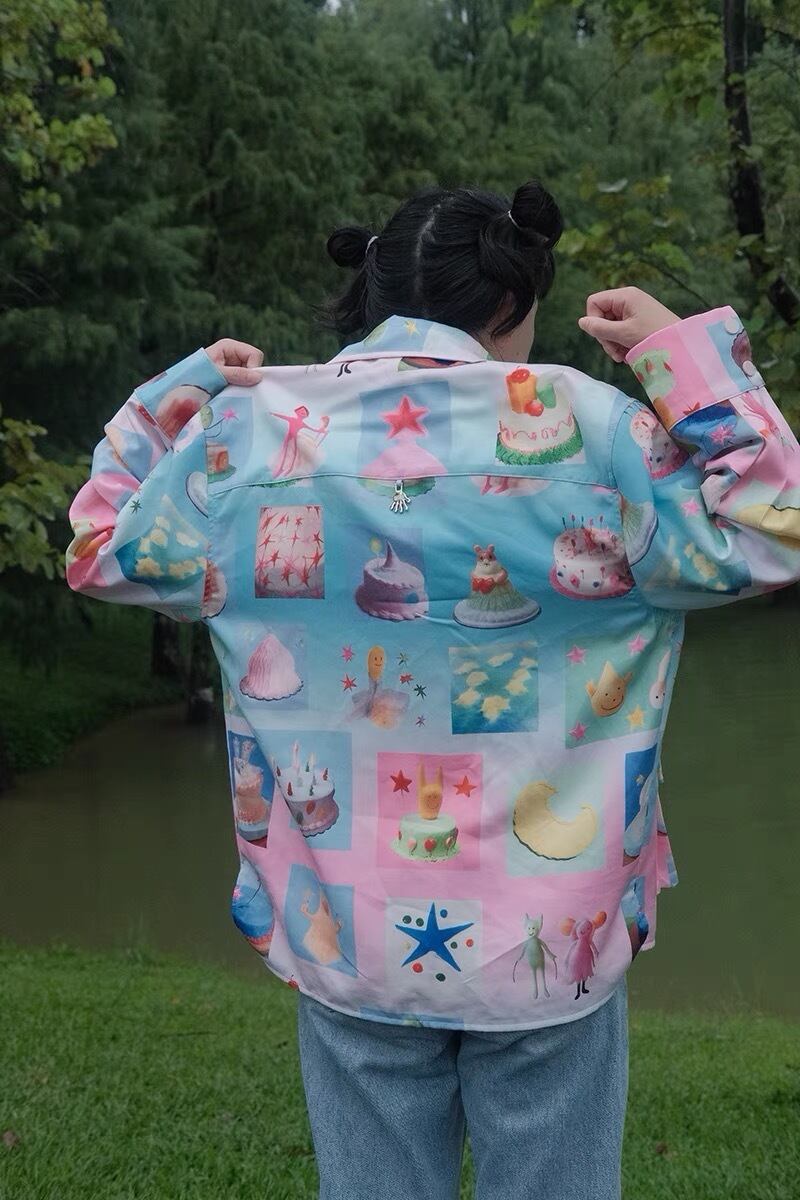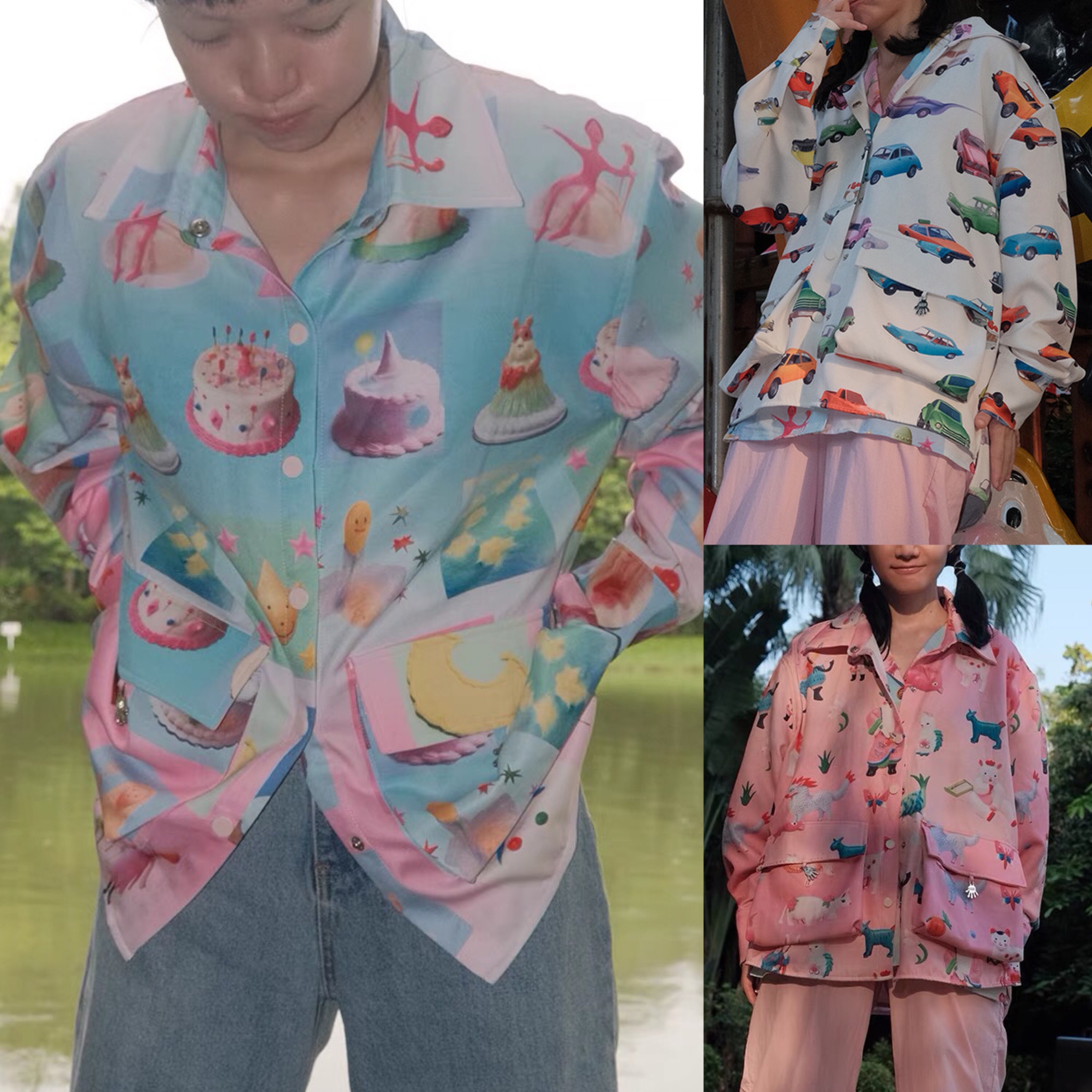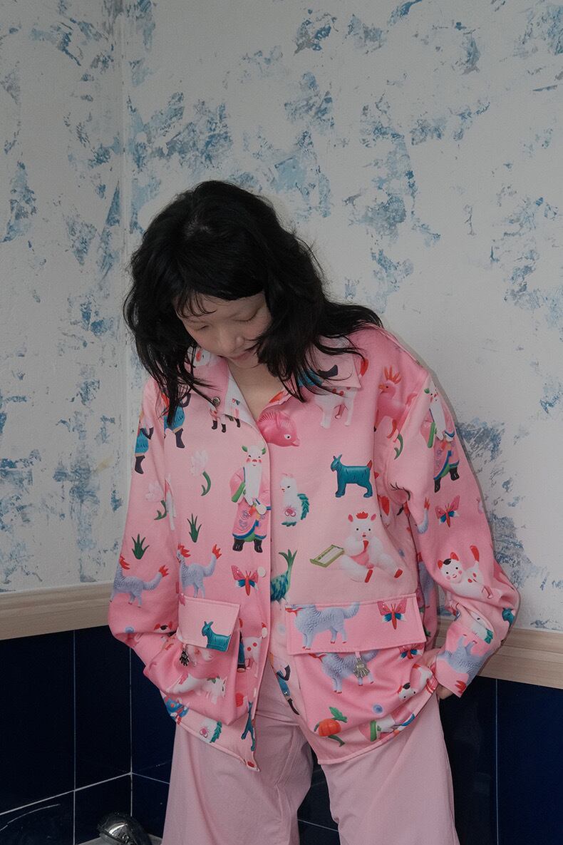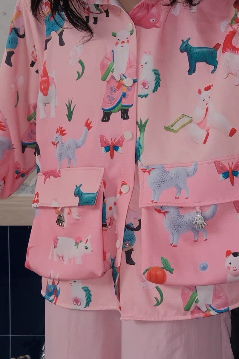 アウター ジャンパー ブラウス シャツ 水色 チェック ピンク