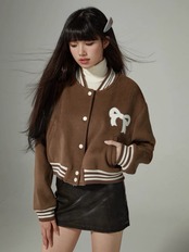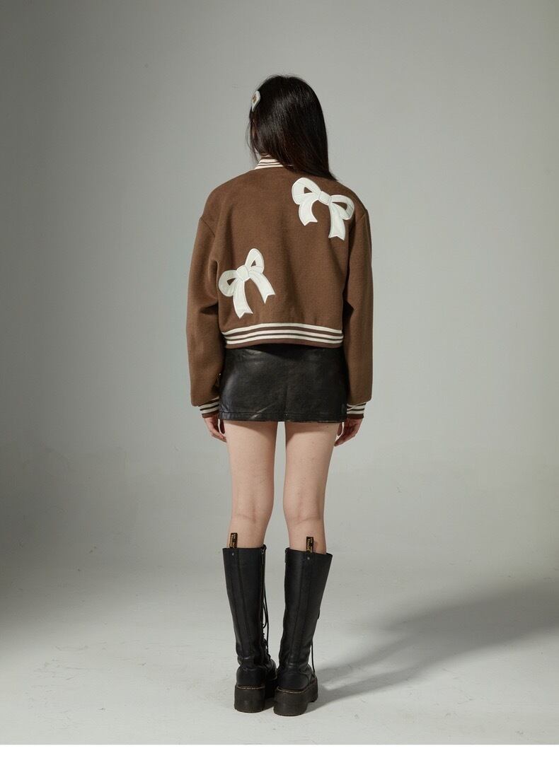 【茶色】アウター ジャンパー ジャケット リボン スタジャン