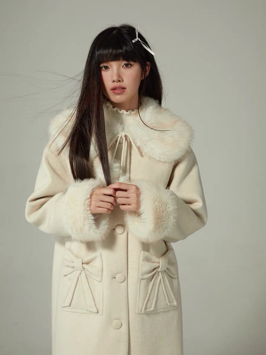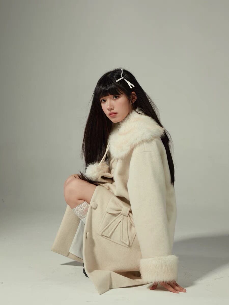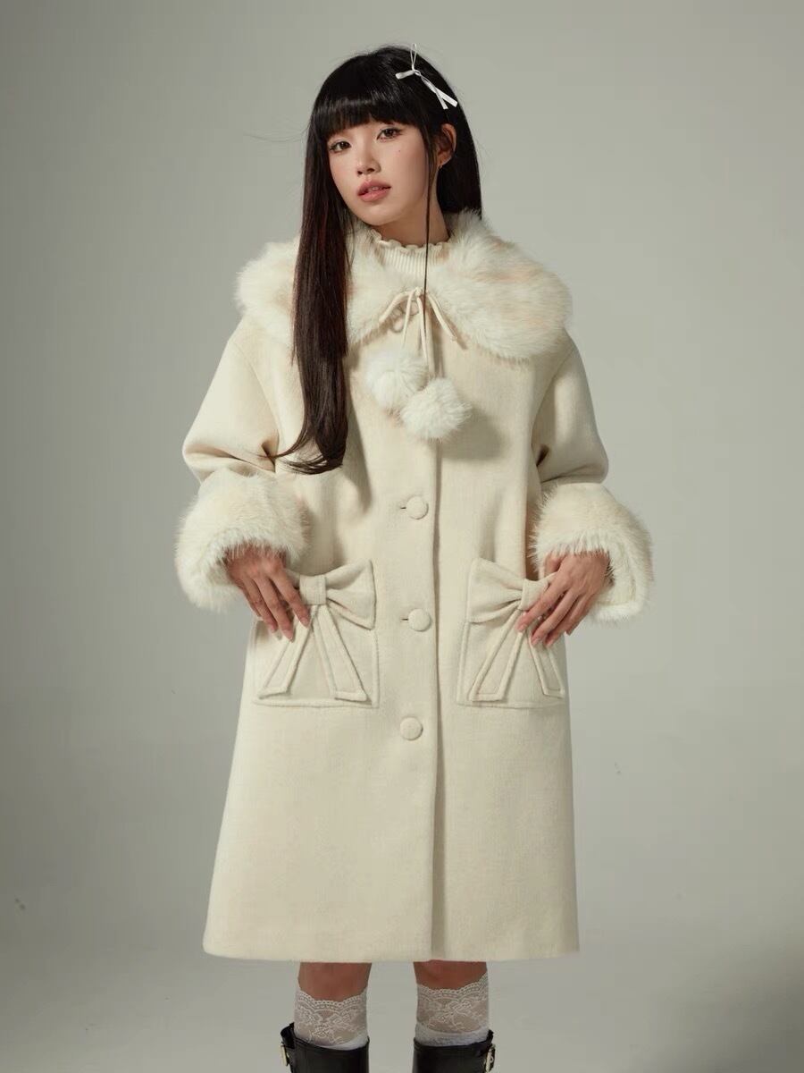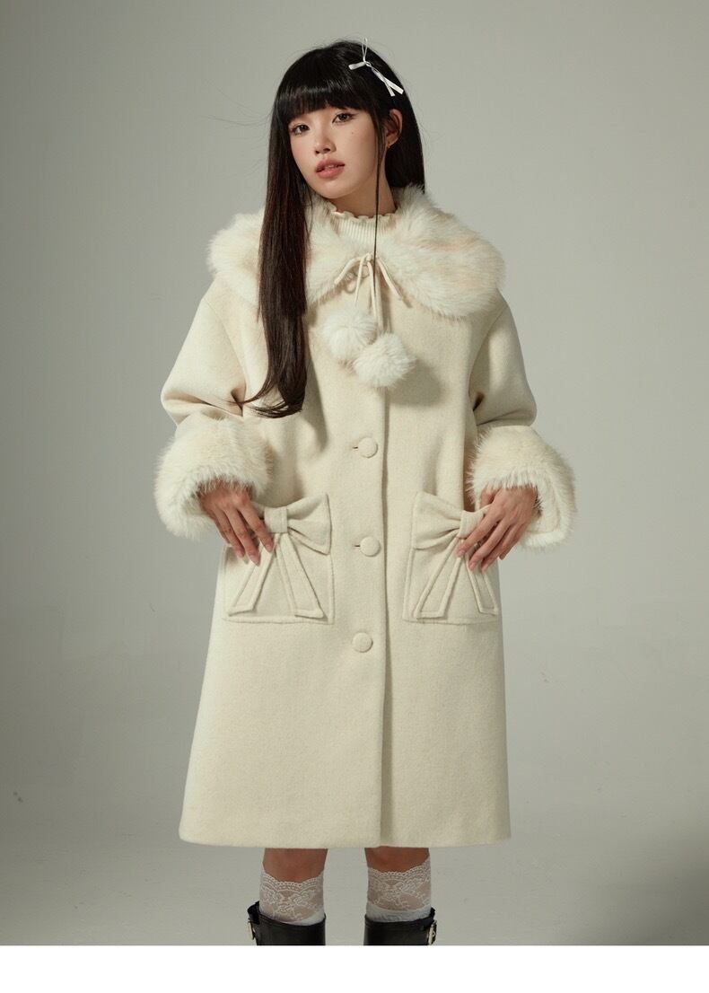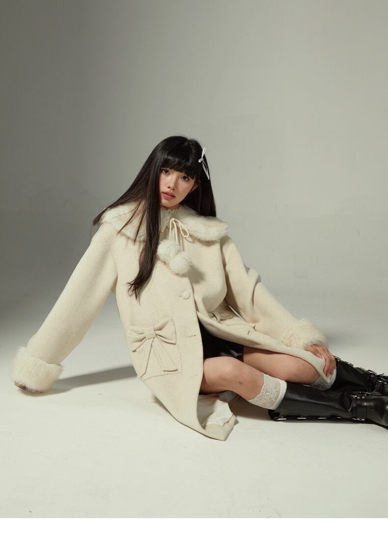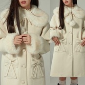 丸襟 可愛い 白 ホワイト ファー コート アウター