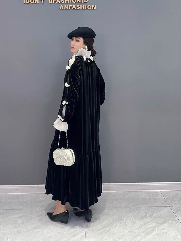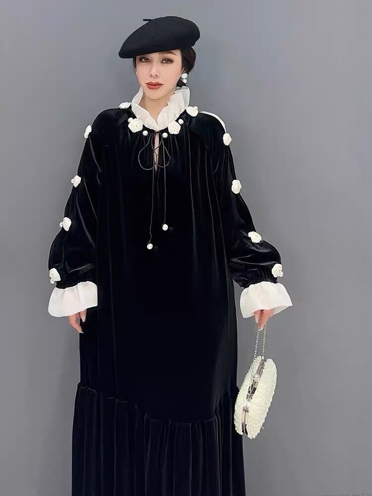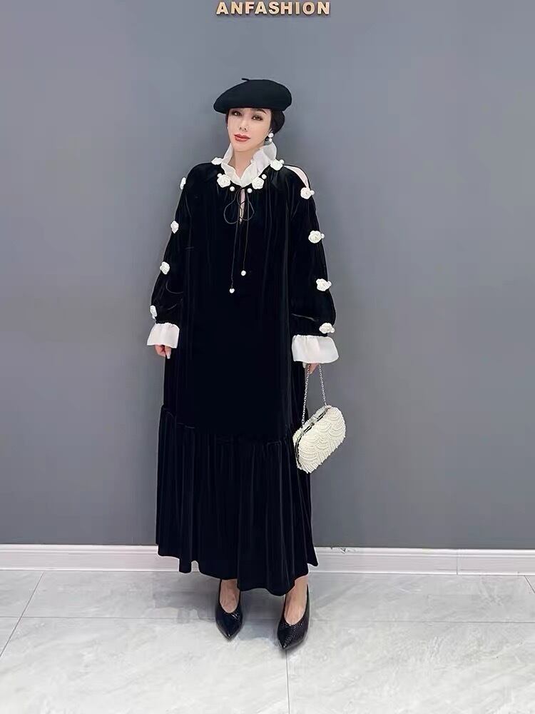 花柄 フラワー 黒 マキシ XL ゆったり ブラック