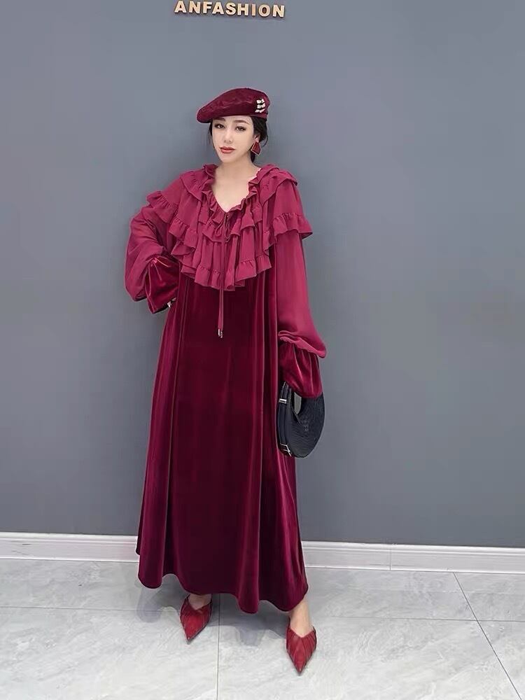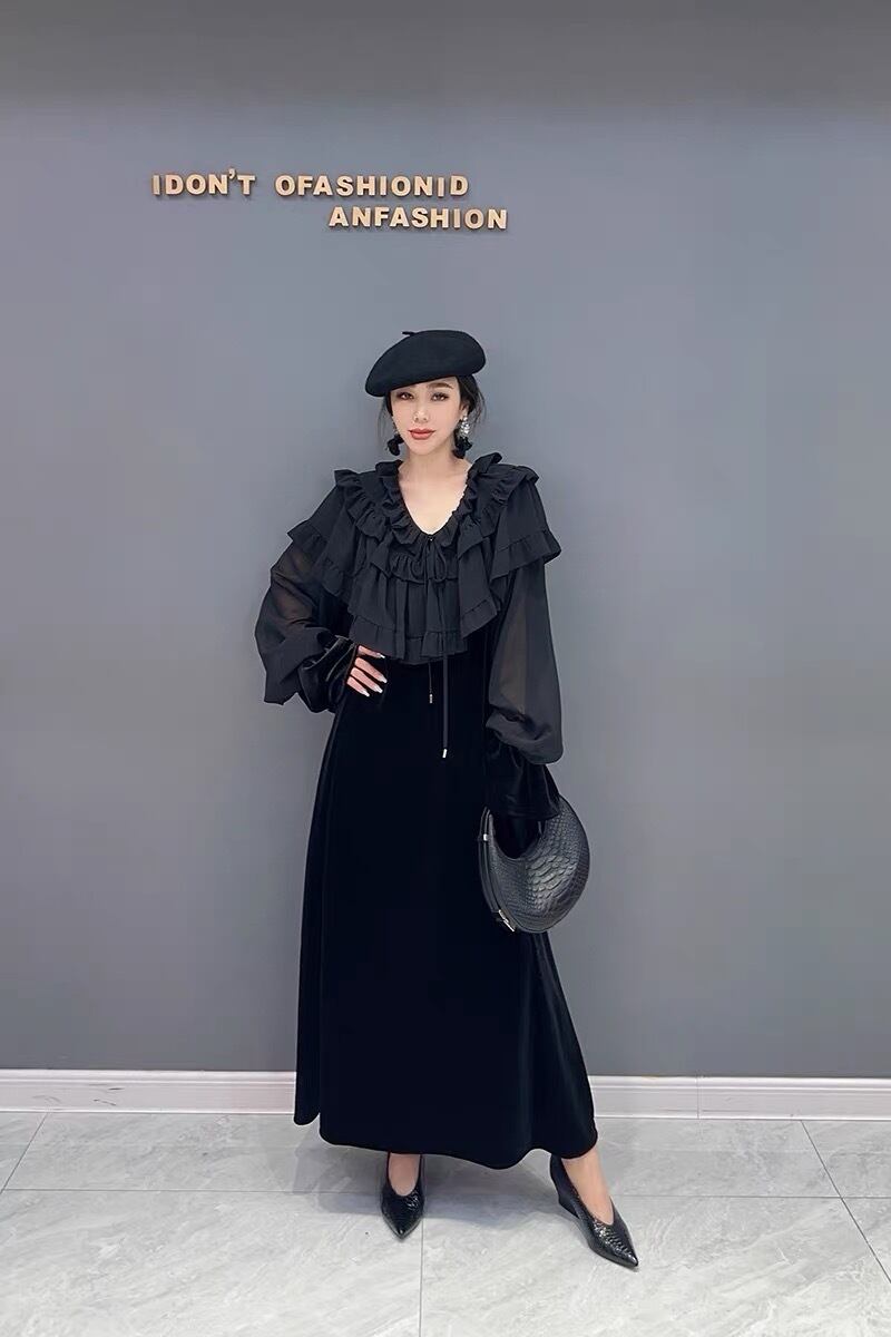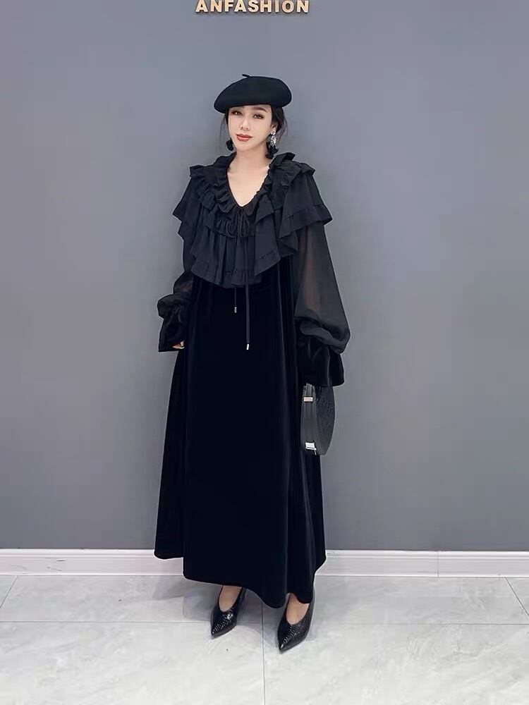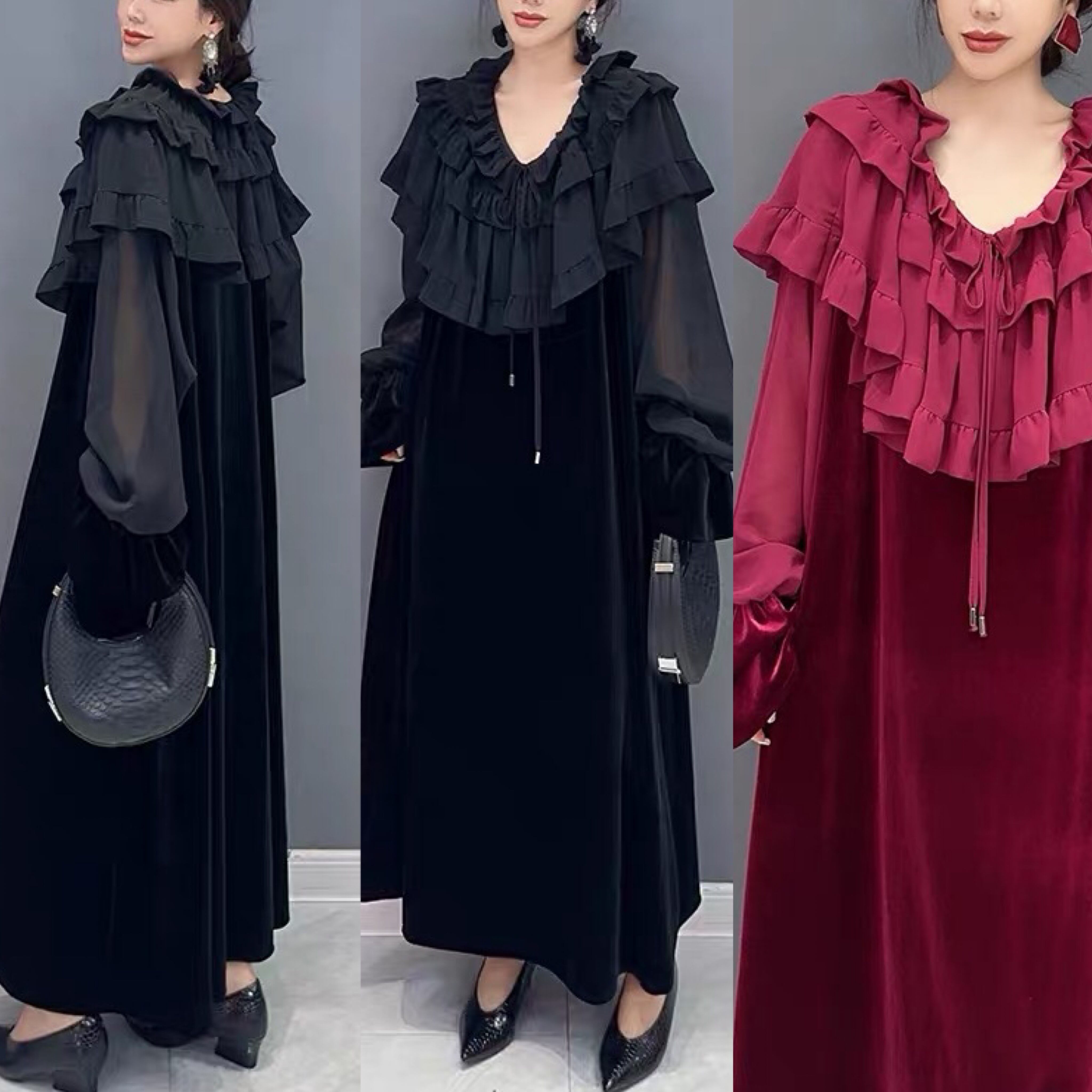 黒 赤 フラワー リボン ワンピース ゆったり XL