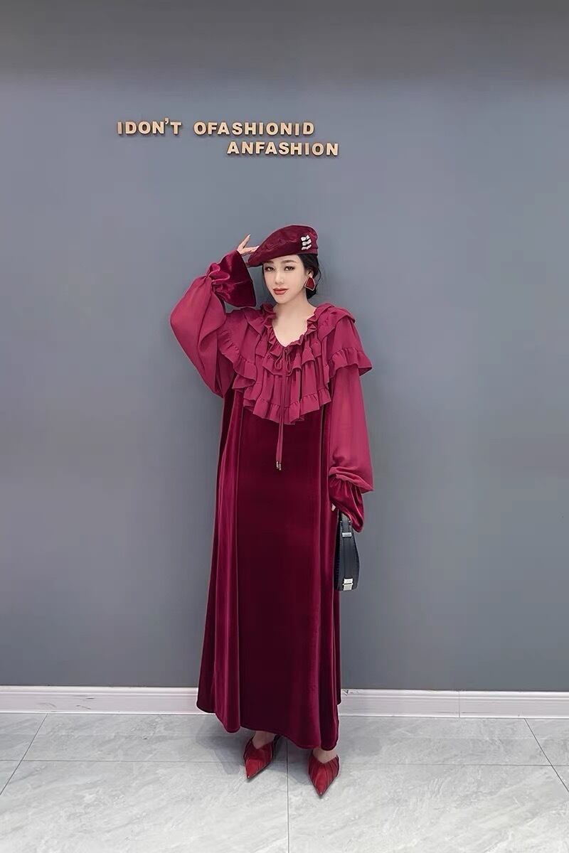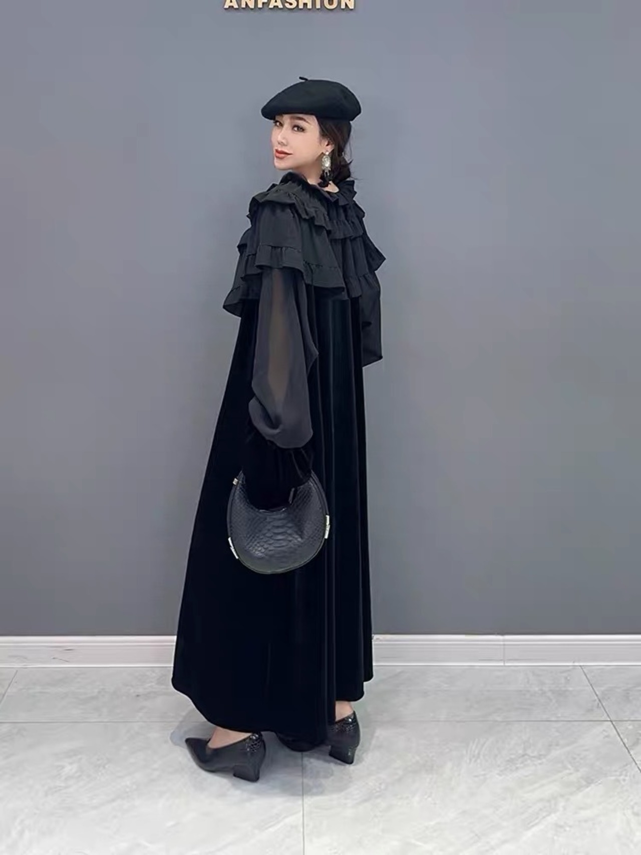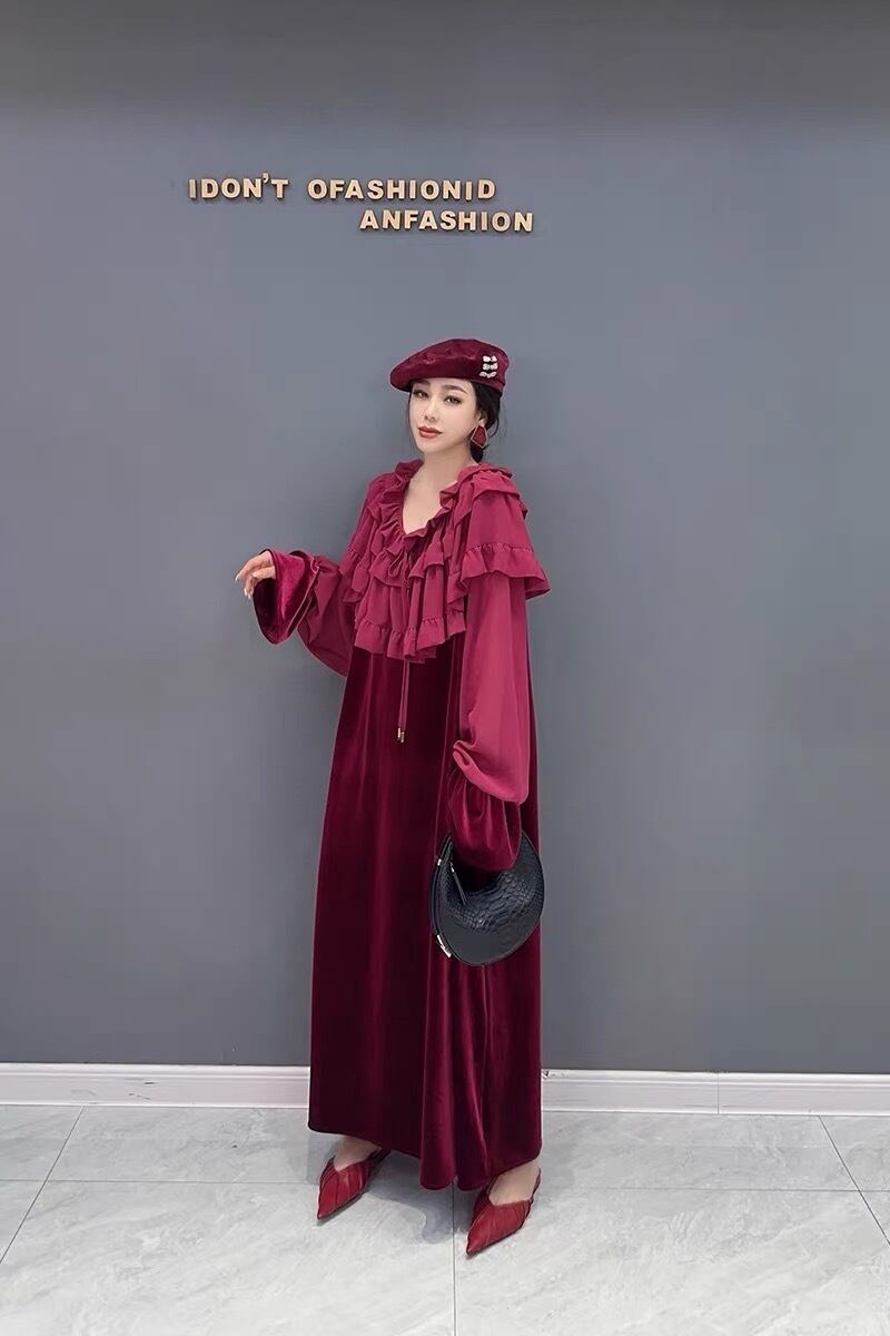 黒 赤 フラワー リボン ワンピース ゆったり XL