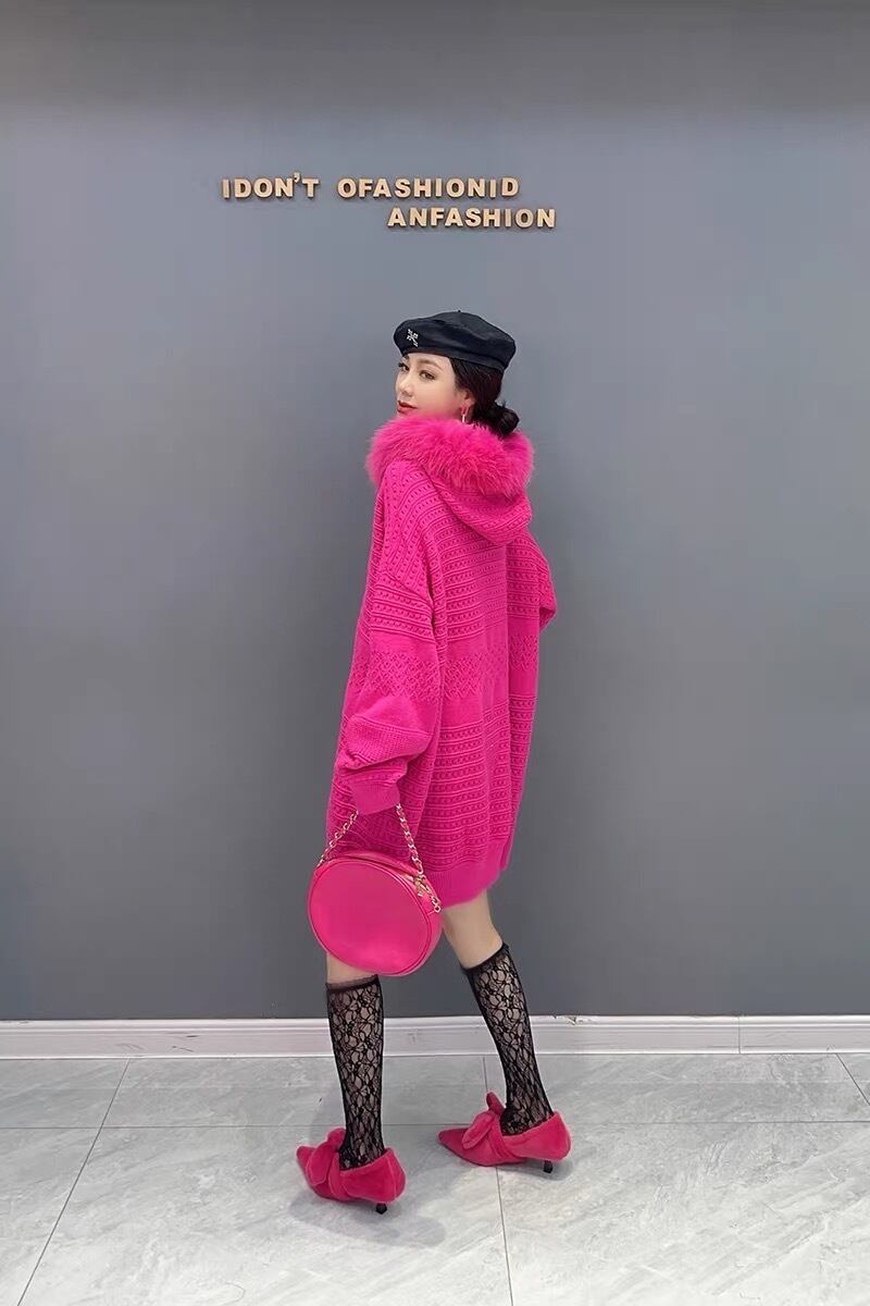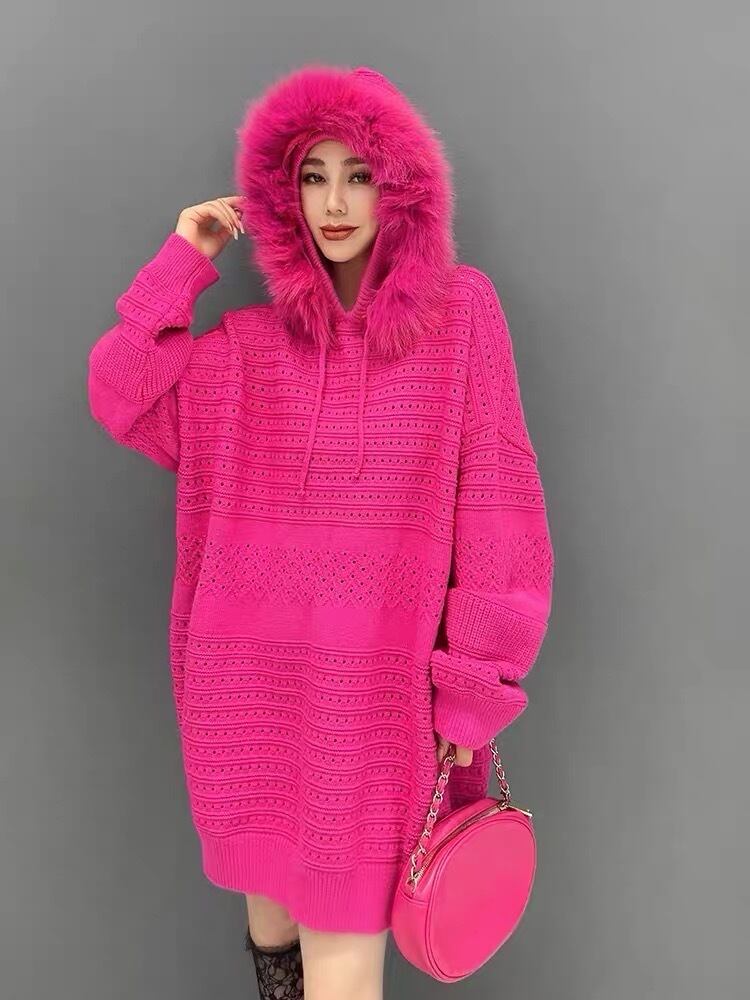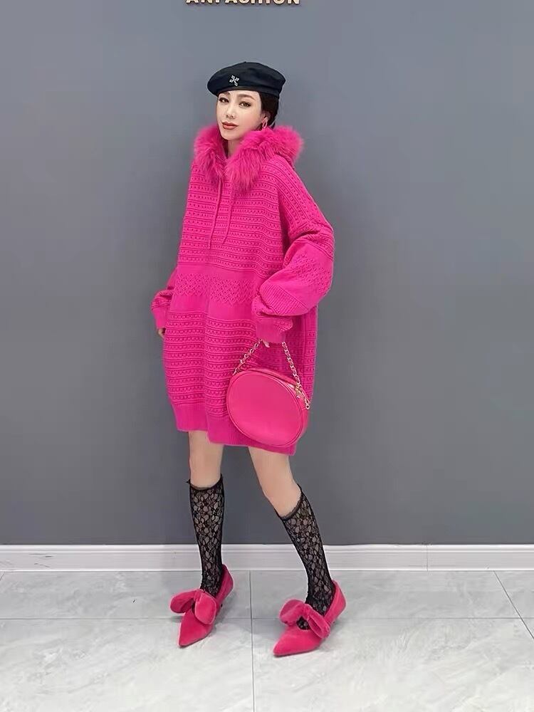 セーター ニット パーカー ゆったり ワンピース ピンク