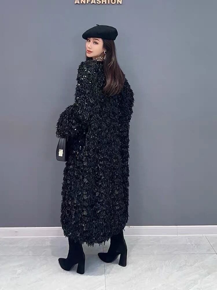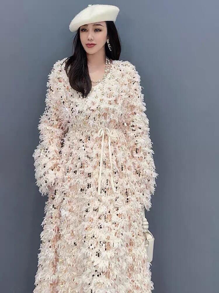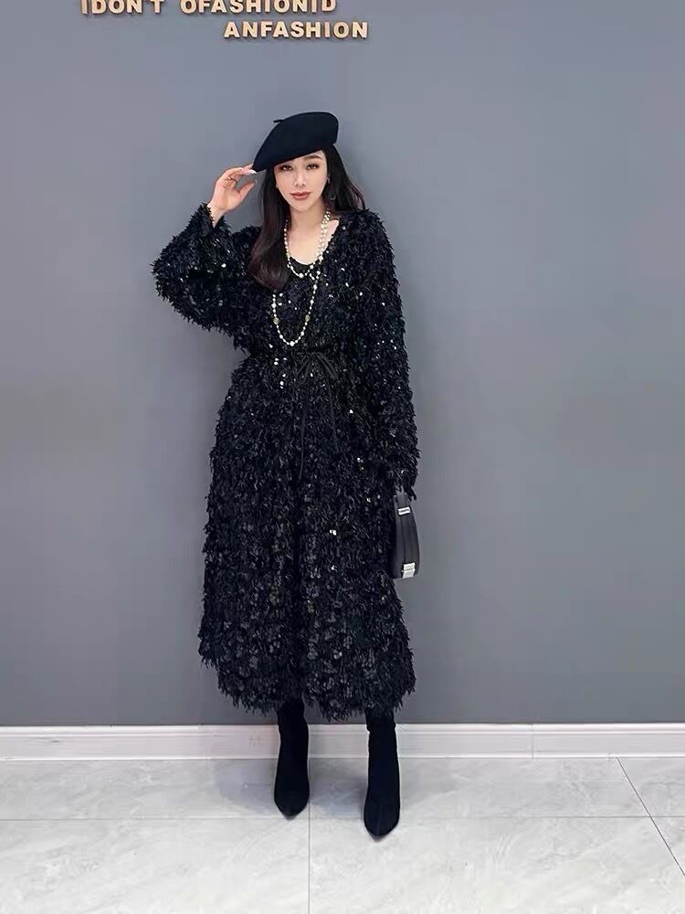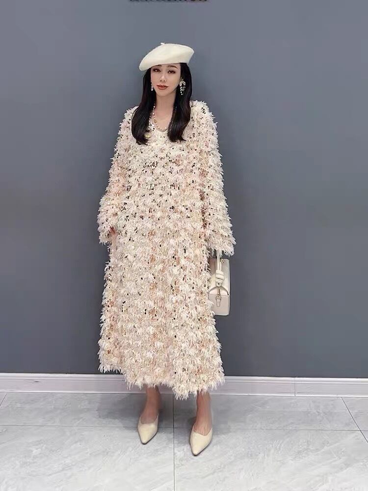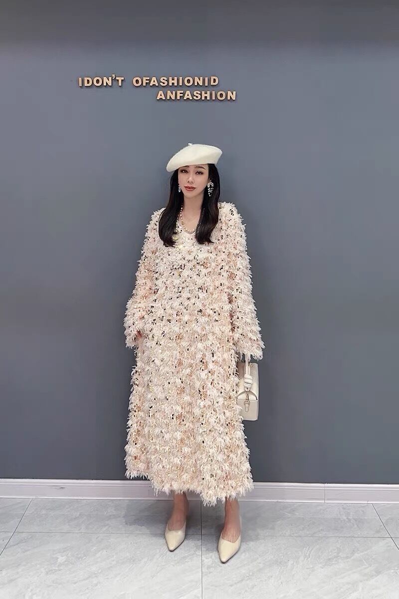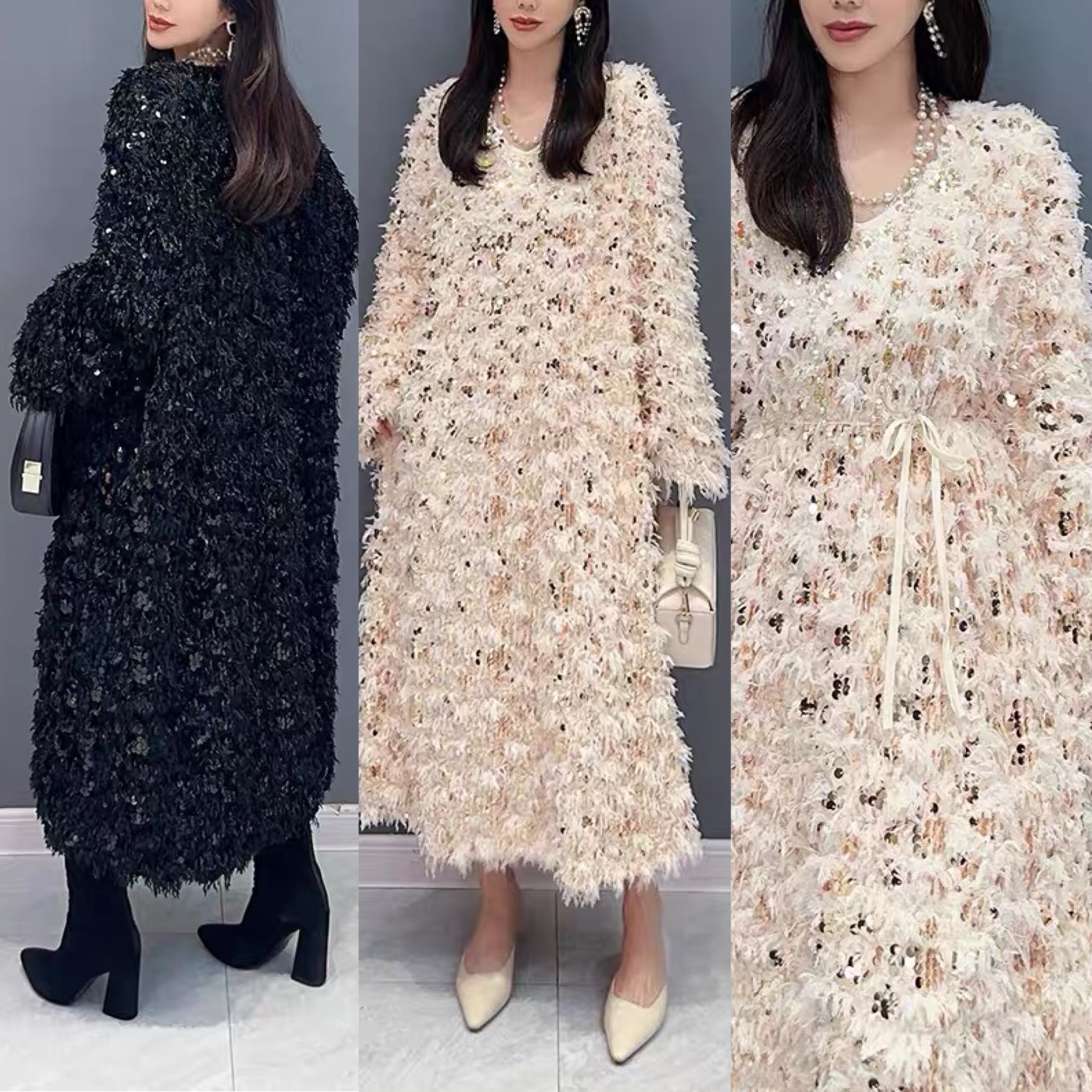 ゆったり ベージュ 黒 ワンピース ファー ニット