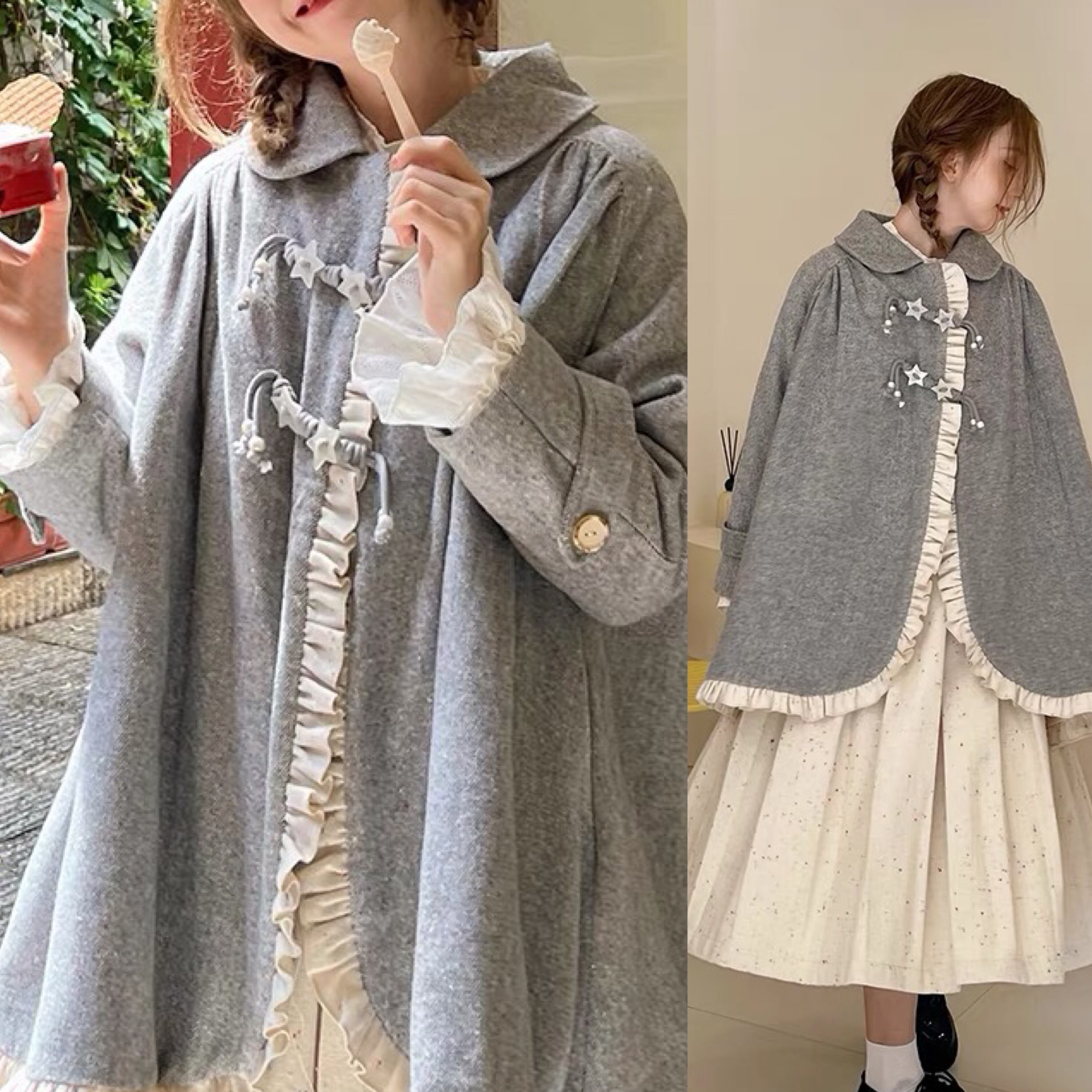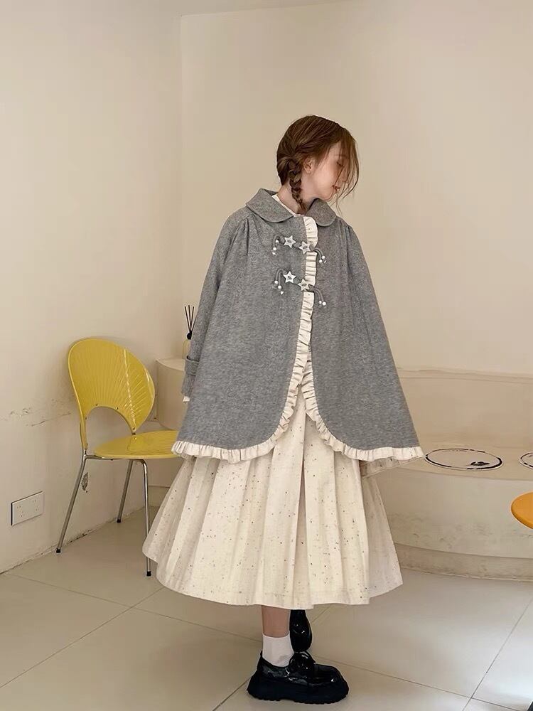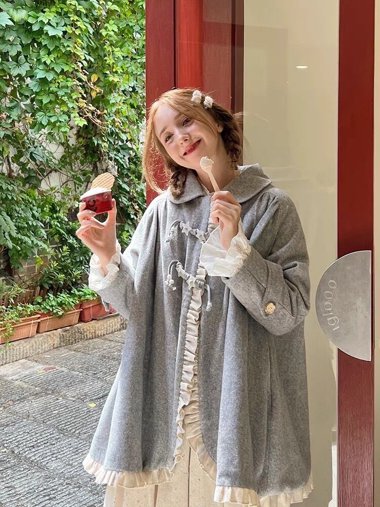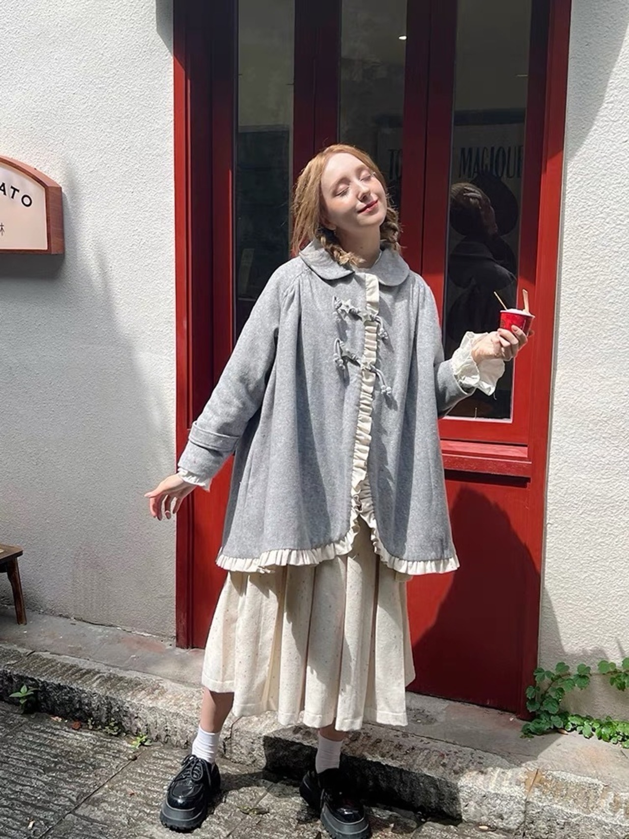 グレー ポンチョ コート アウター 丸襟 ガーリー