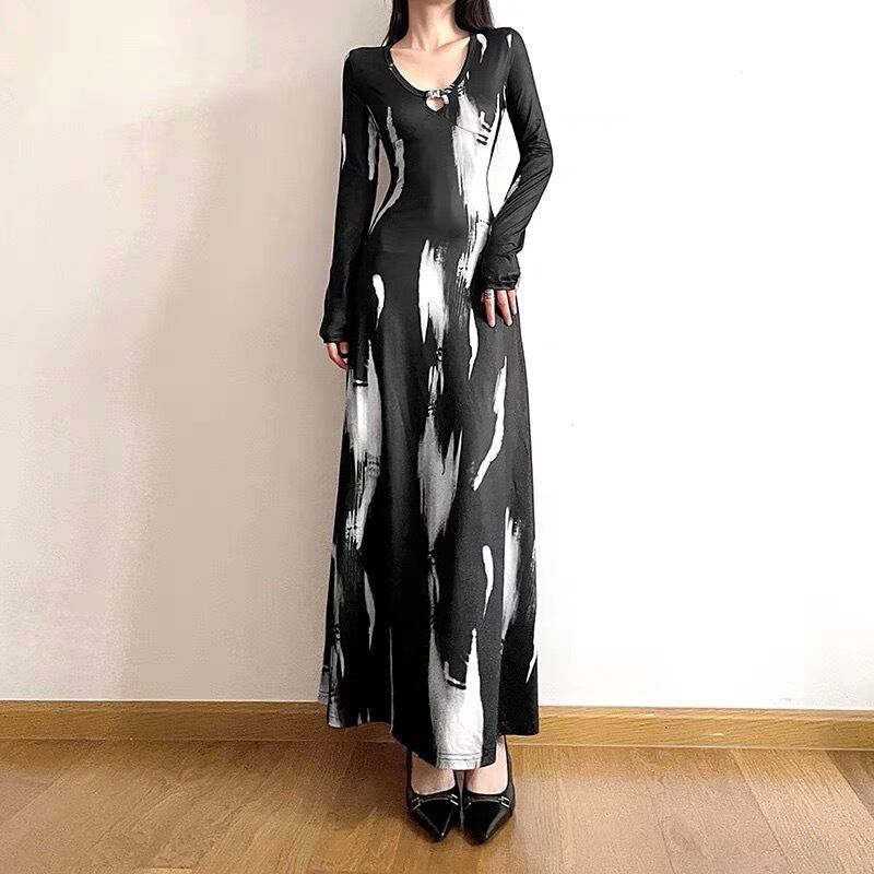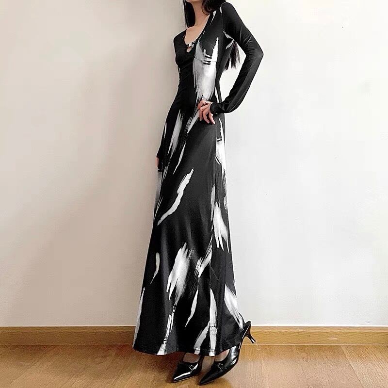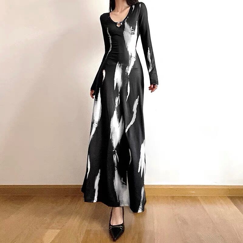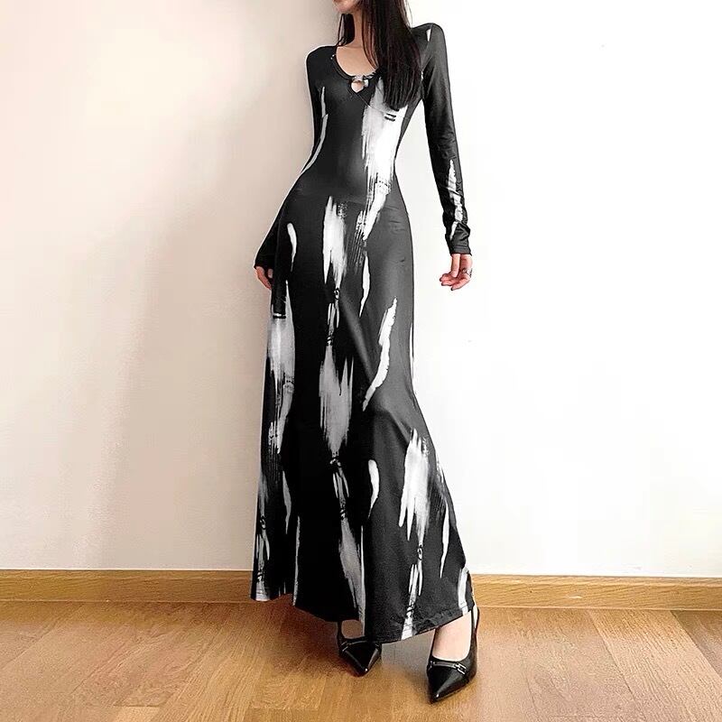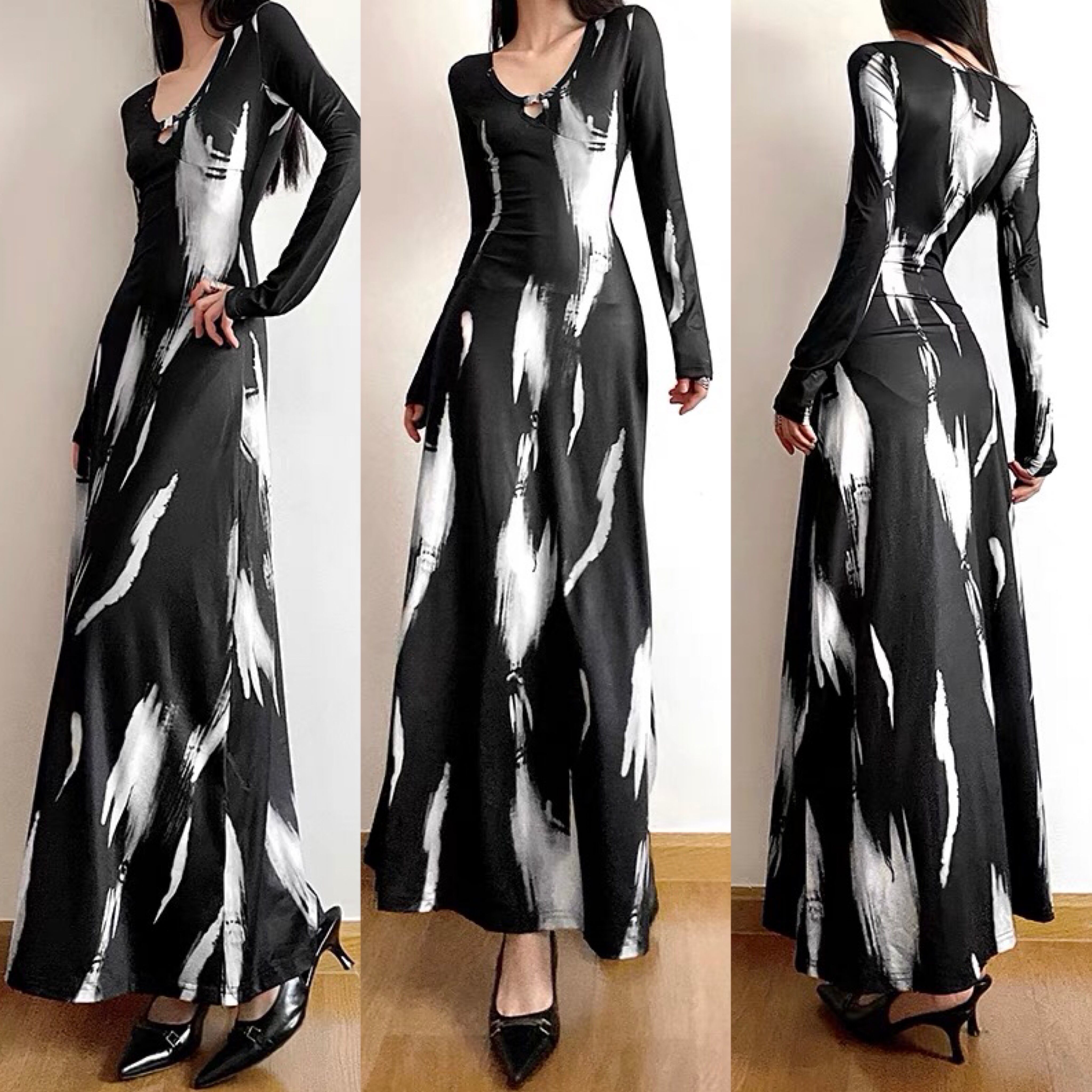 ワンピース マキシ ガーリー 黒 柄 セクシー ダンス