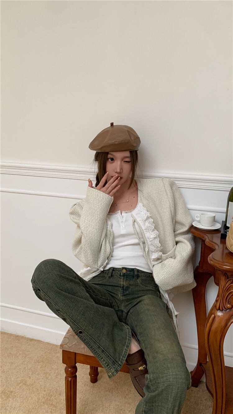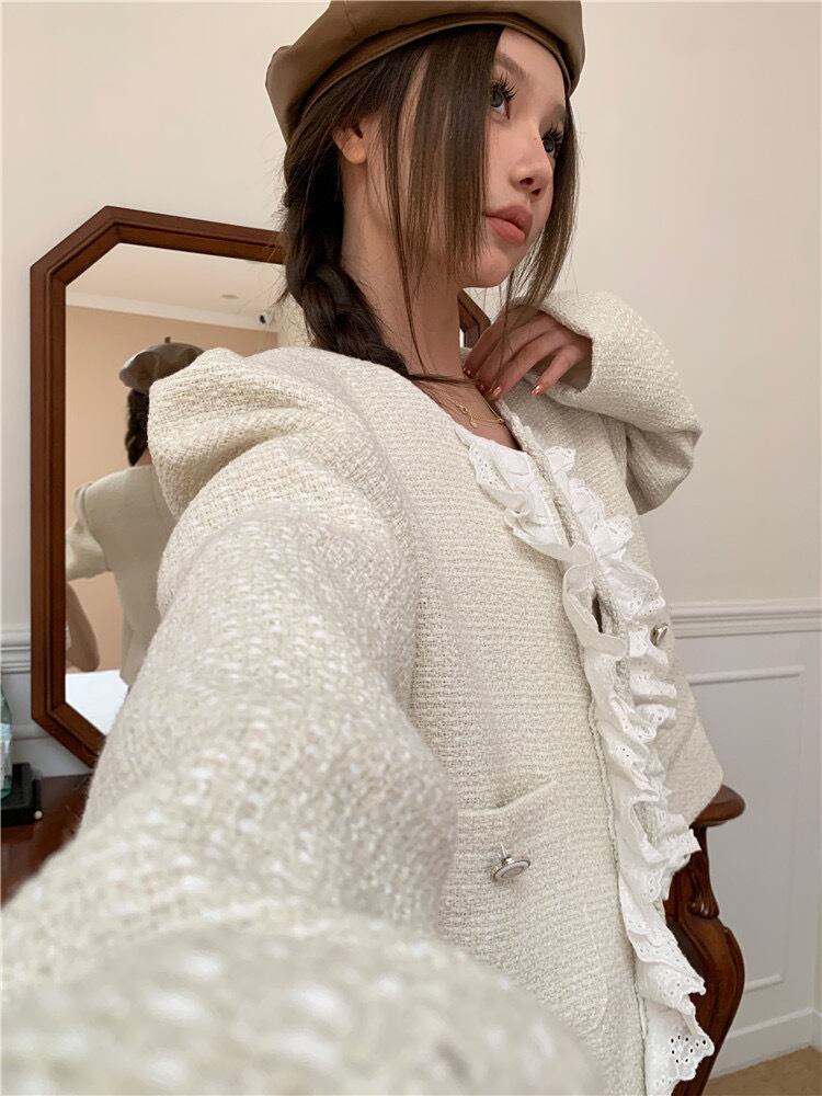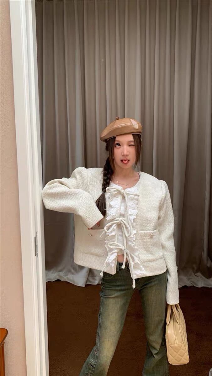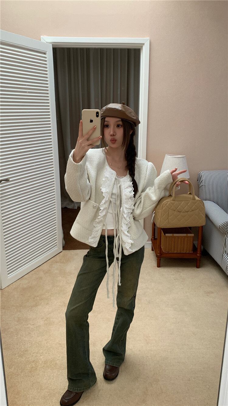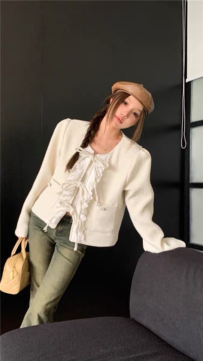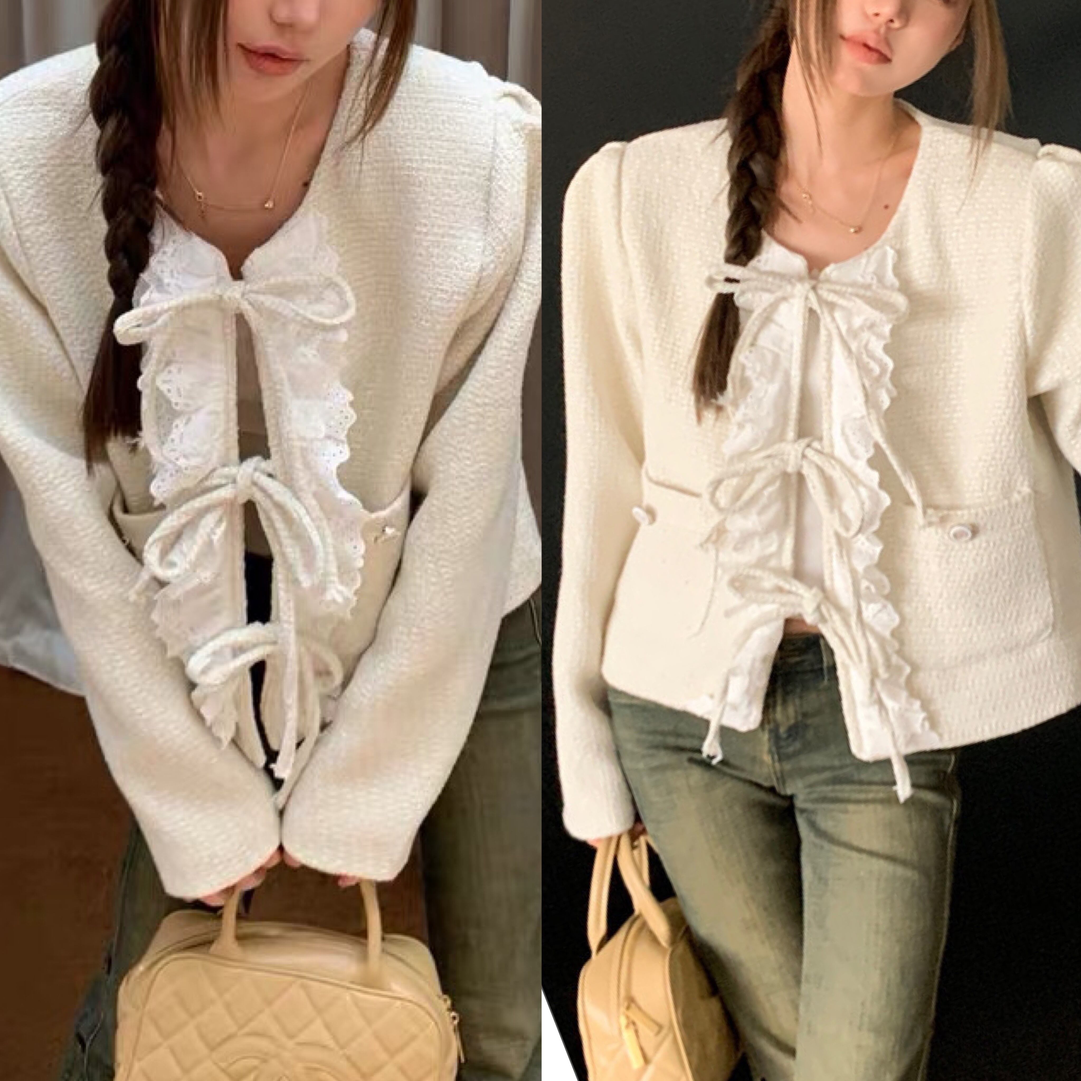ジャケット 白 ホワイト リボン フリル ガーリー