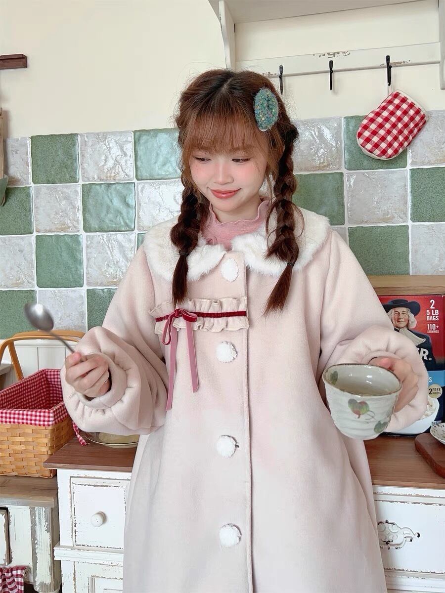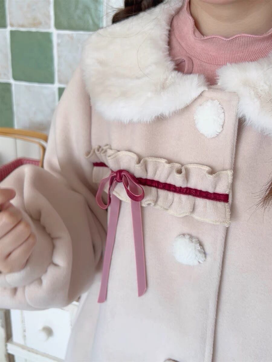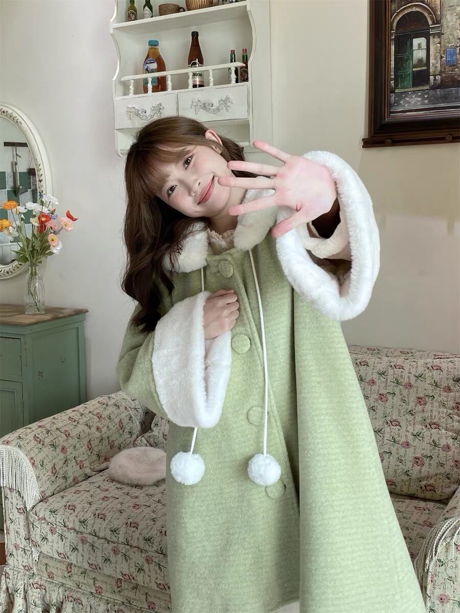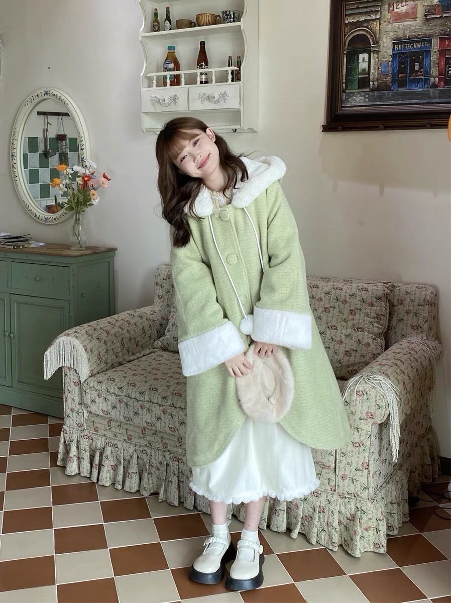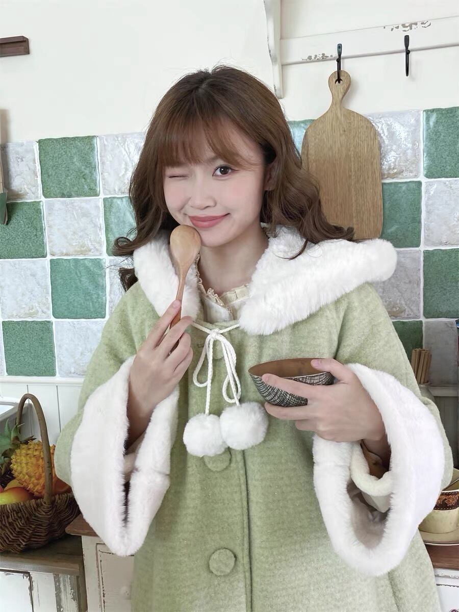 緑 ファー ピンク リボン アウター ジャケット