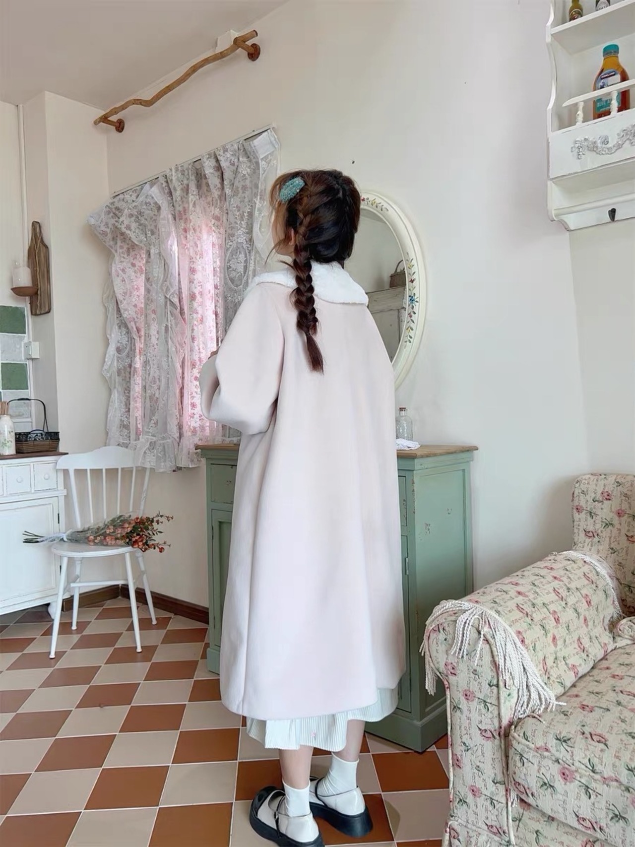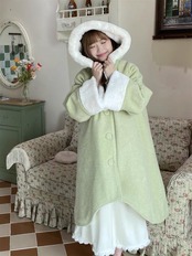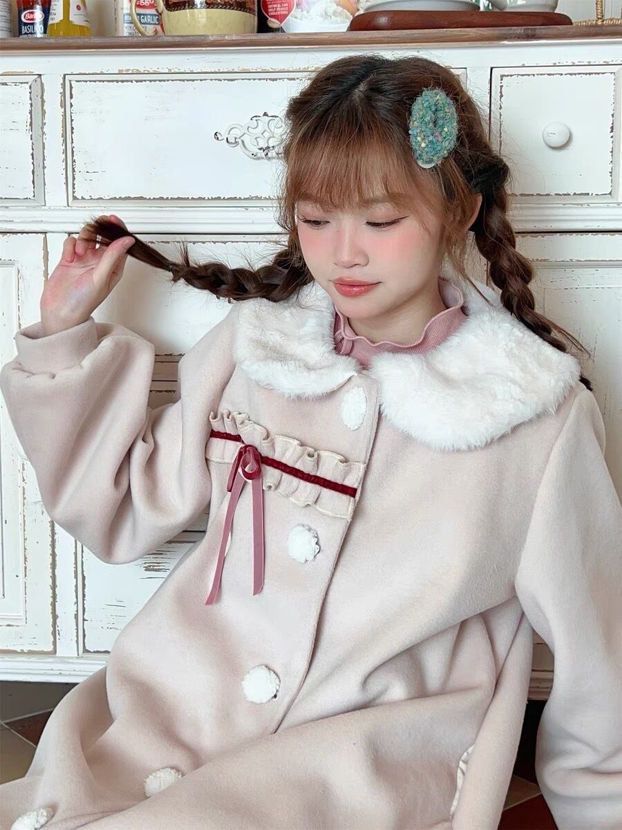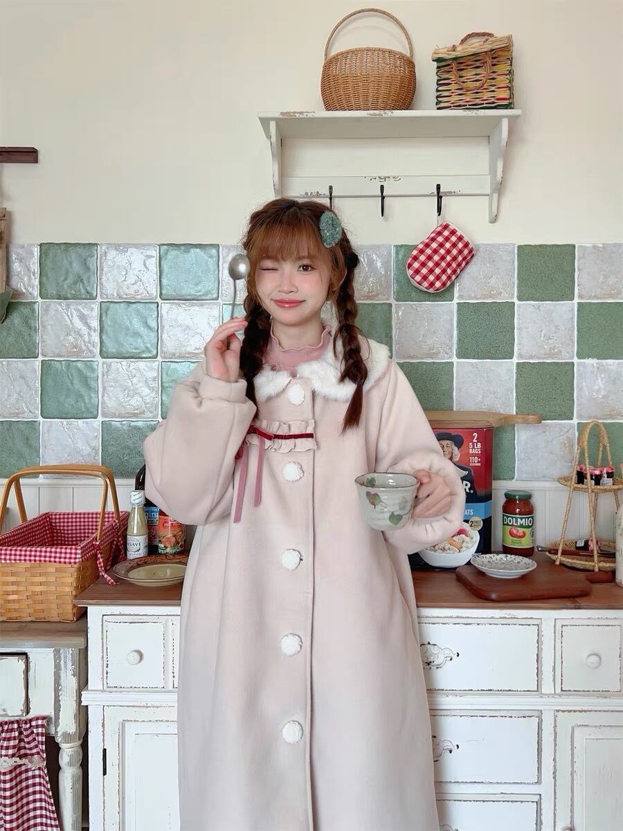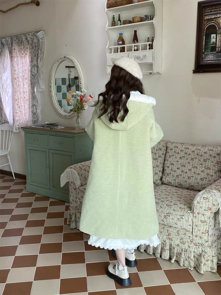 緑 ファー ピンク リボン アウター ジャケット