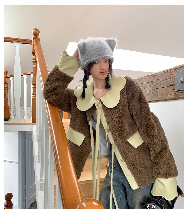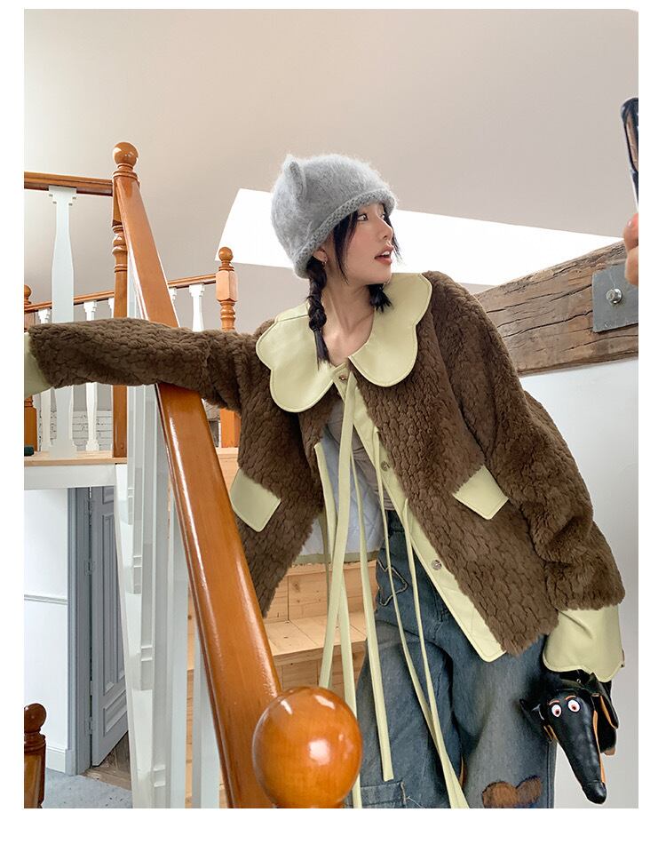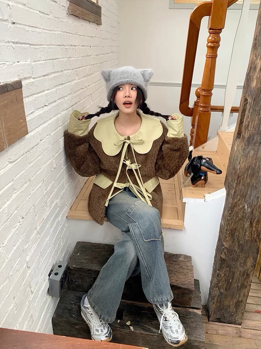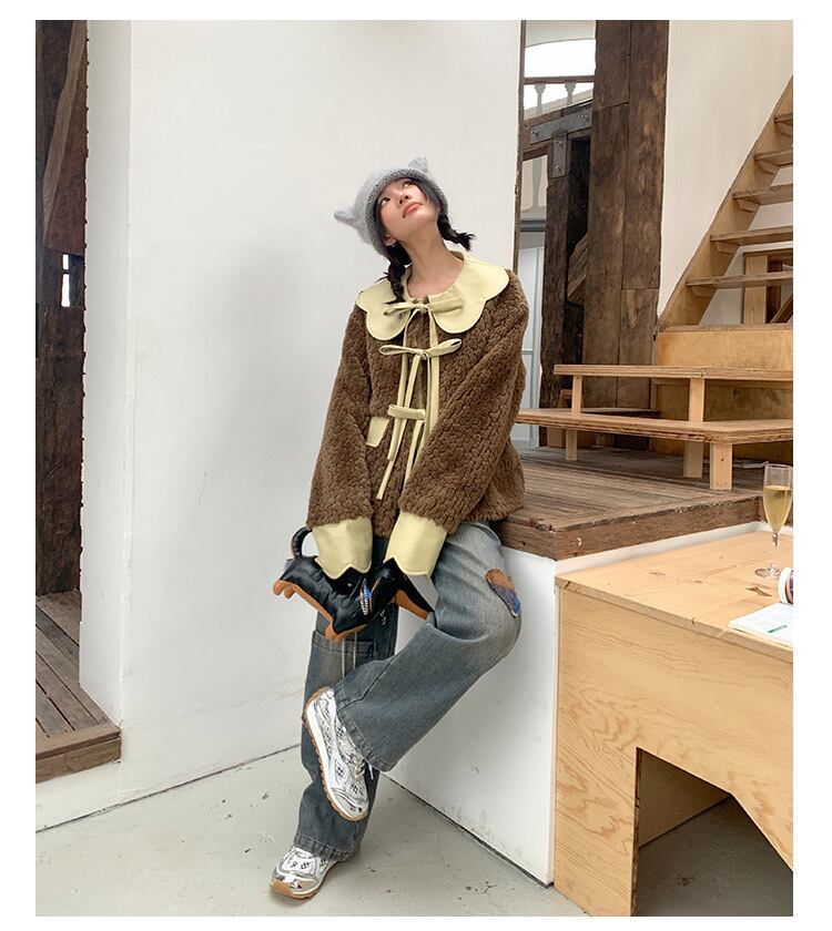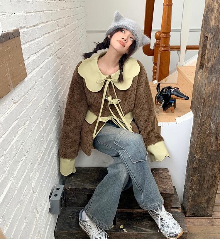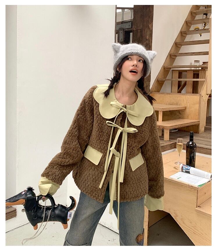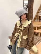 ジャケット アウター 緑 コート 丸襟 リボン