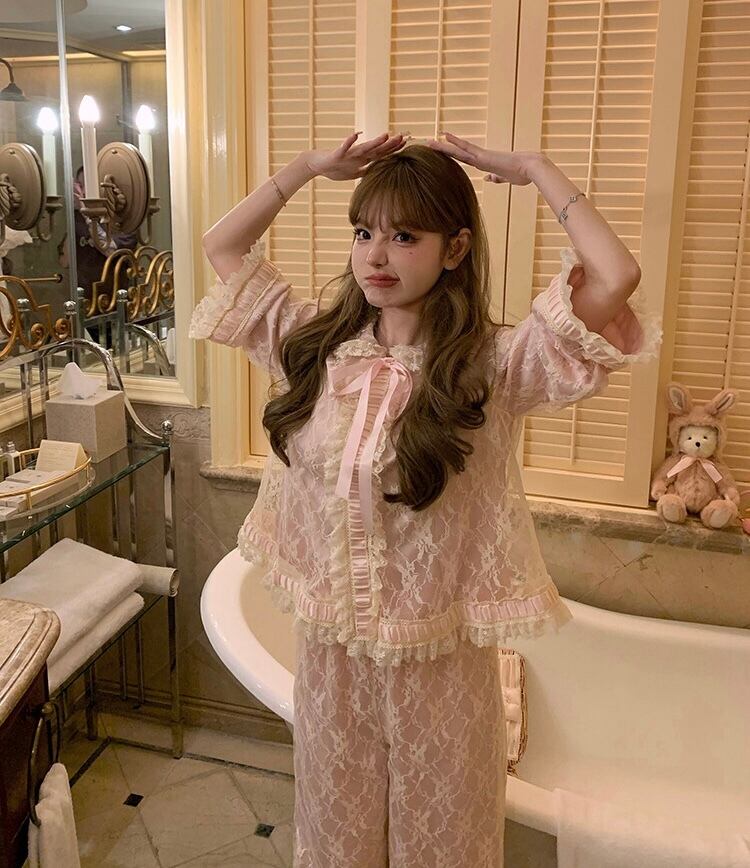 【ボトムス】パンツ レース ピンク ガーリー 可愛い