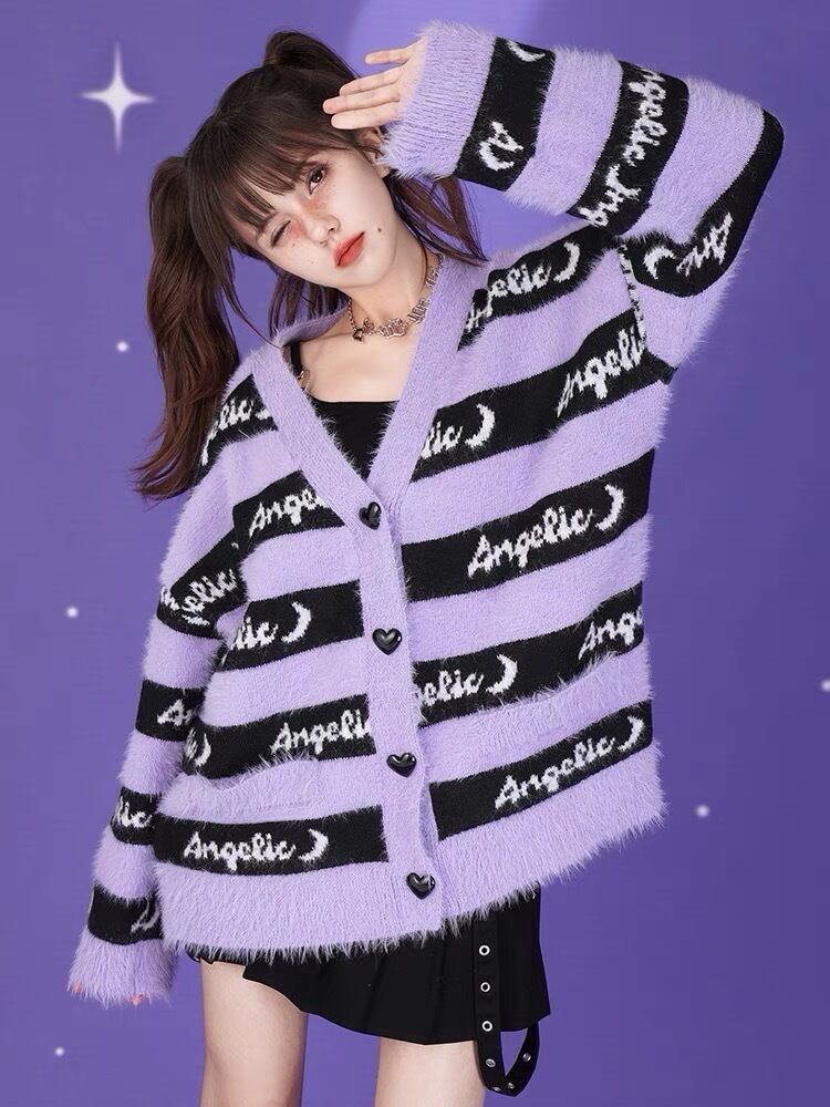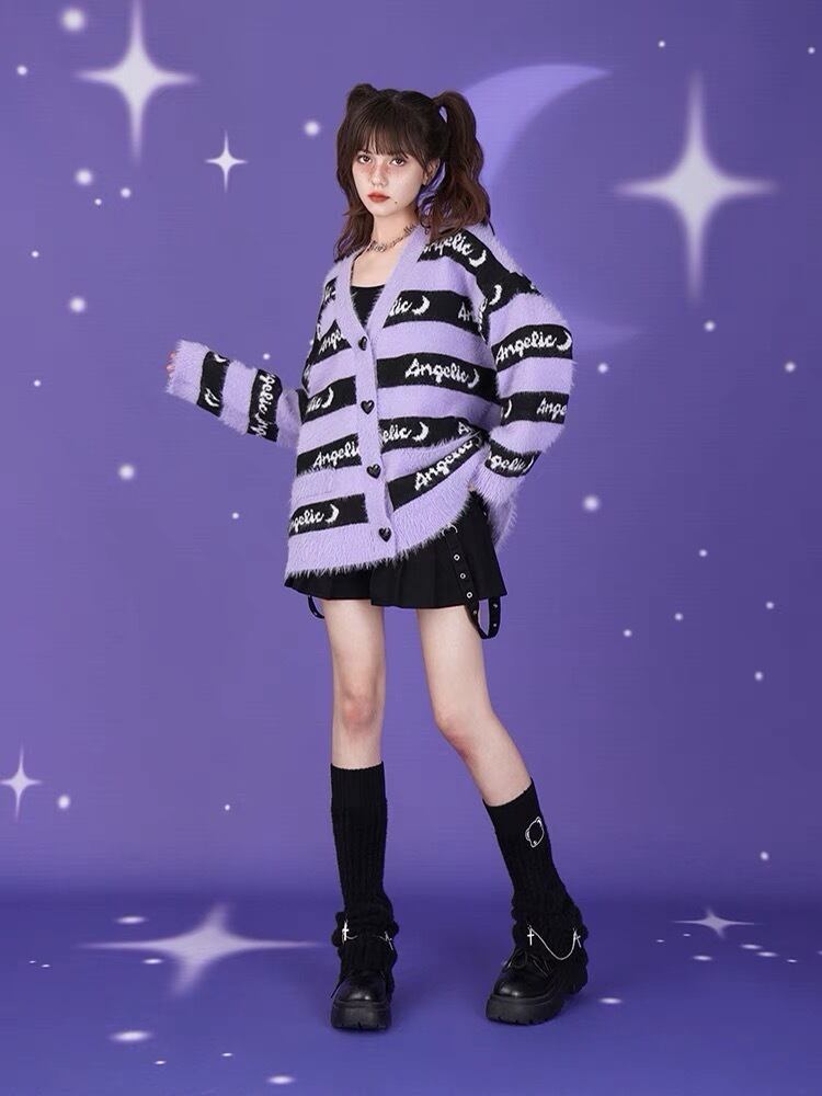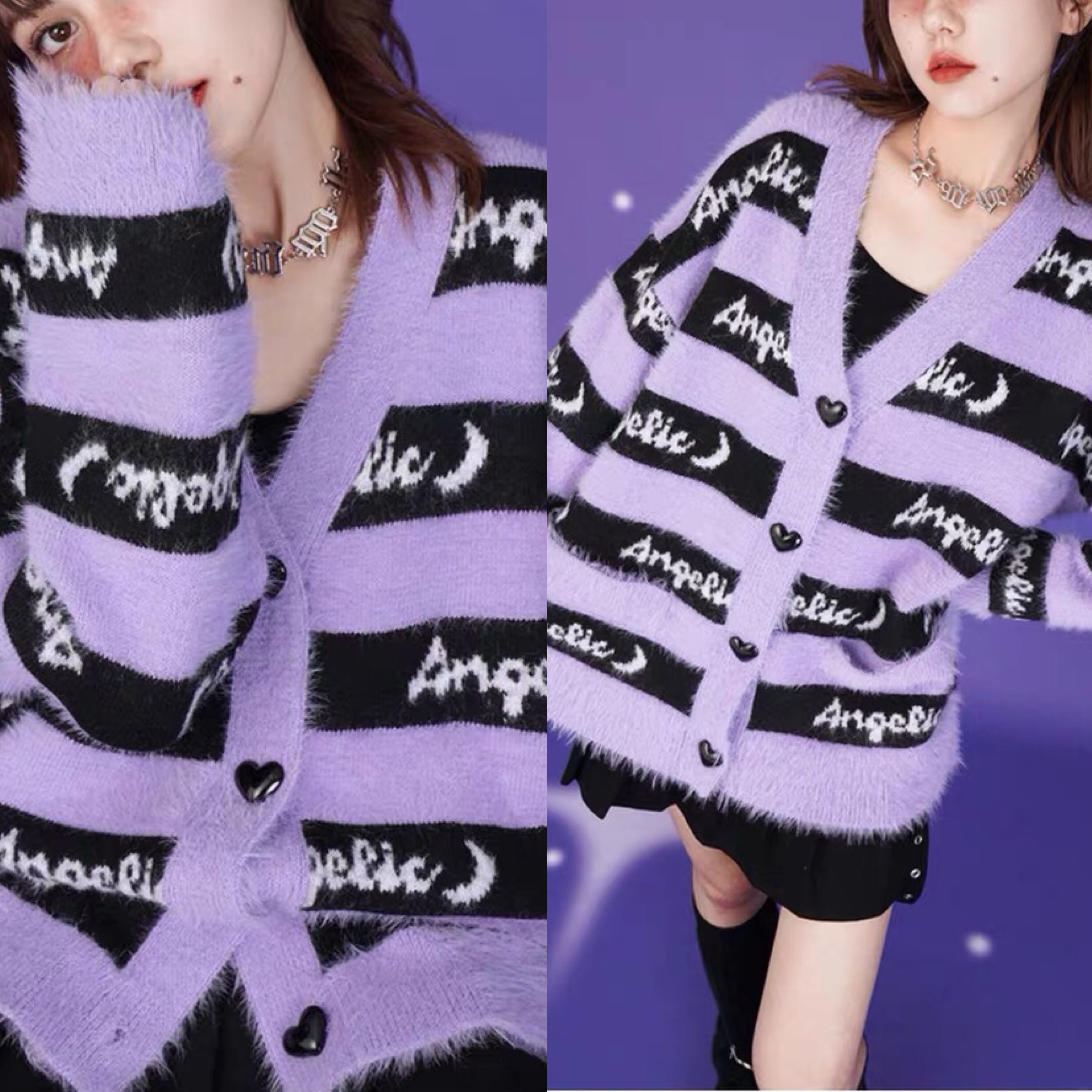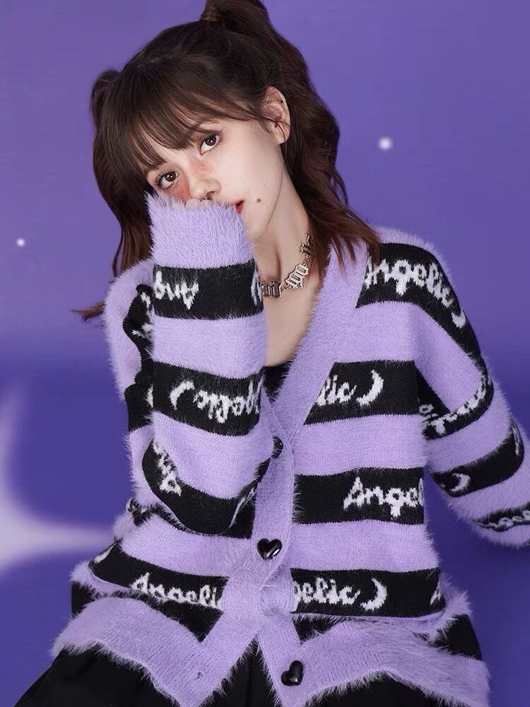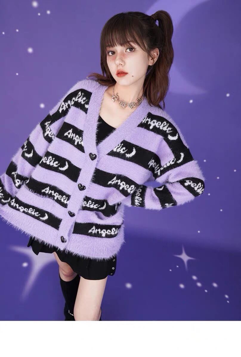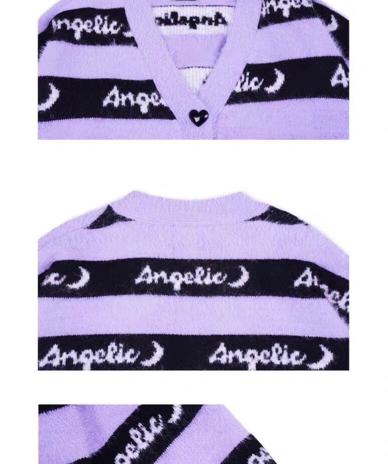 カーディガン セーター ボーダー パープル 紫