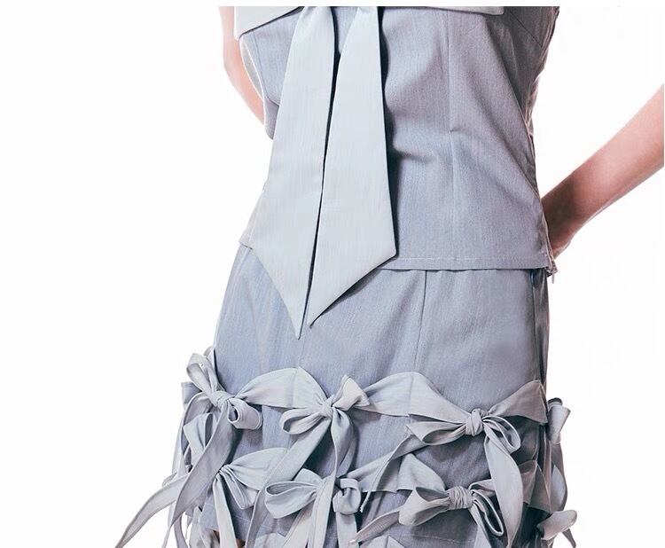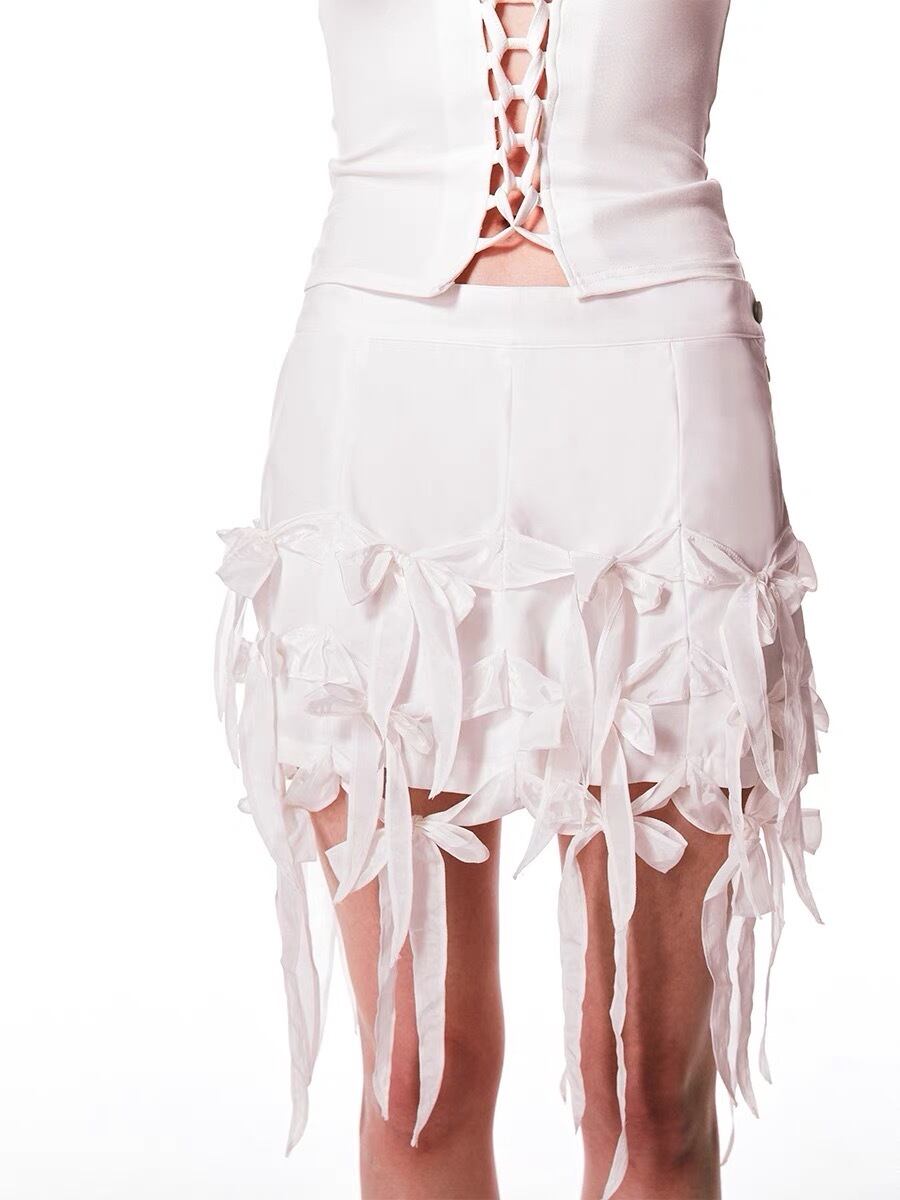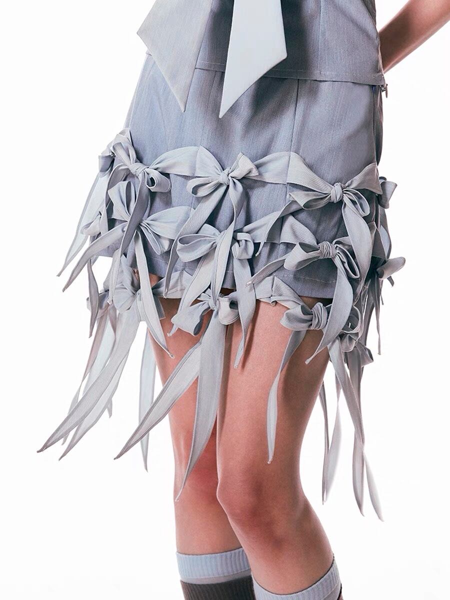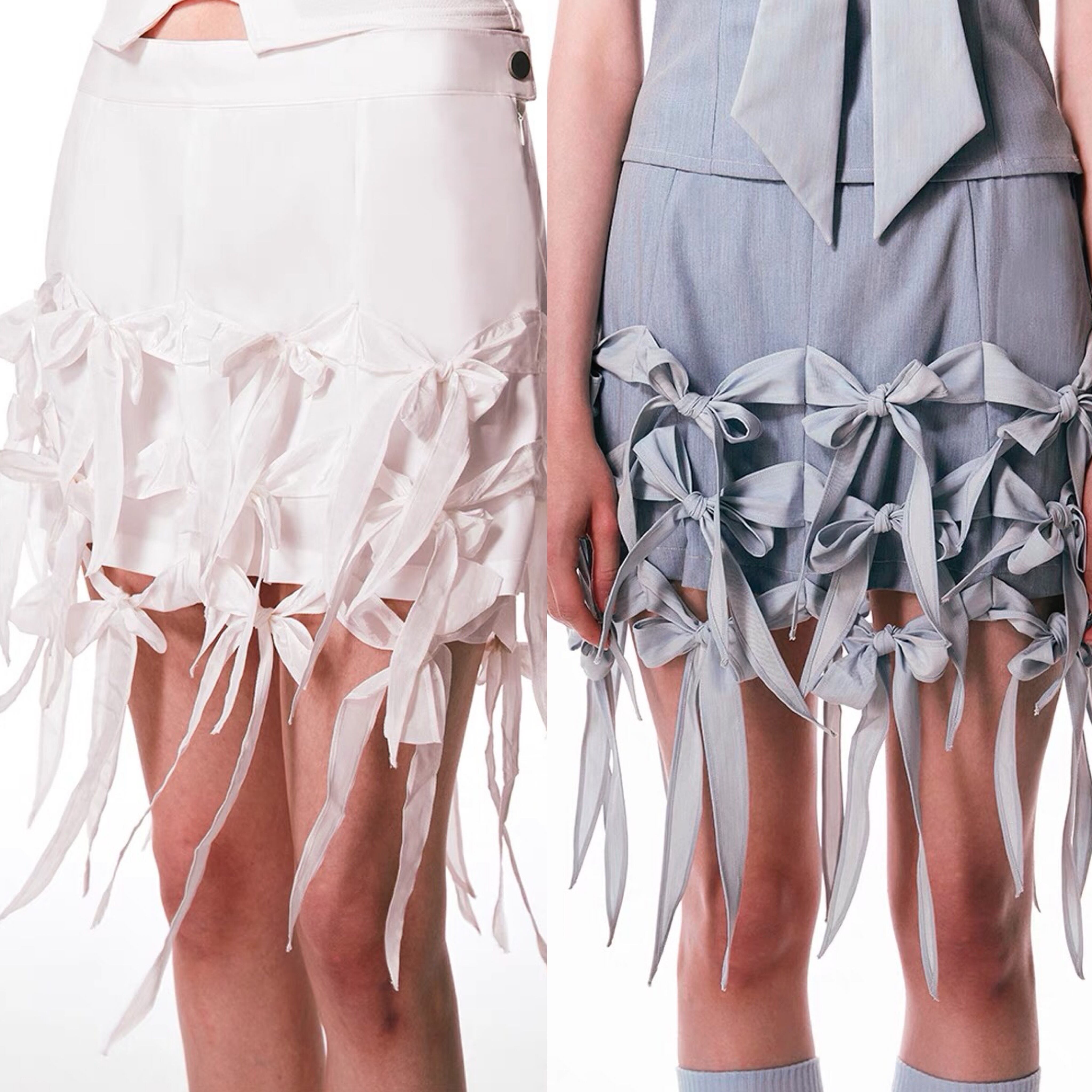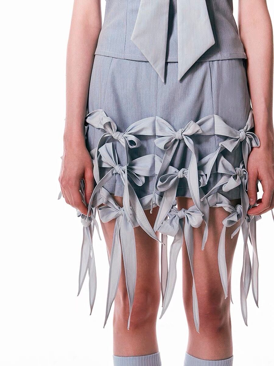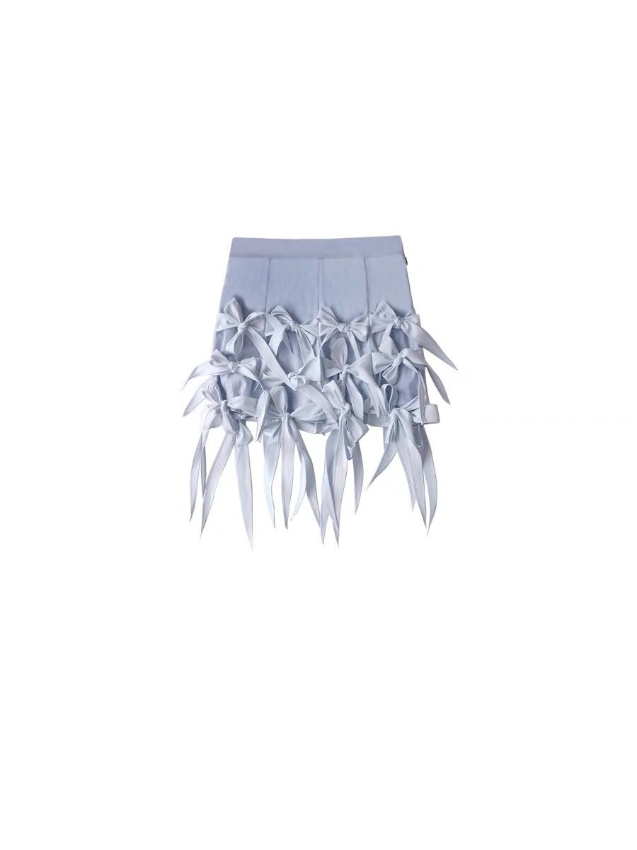 スカート グレー 白 リボン ボトムス ガーリー 可愛い