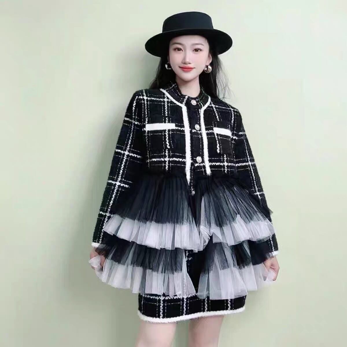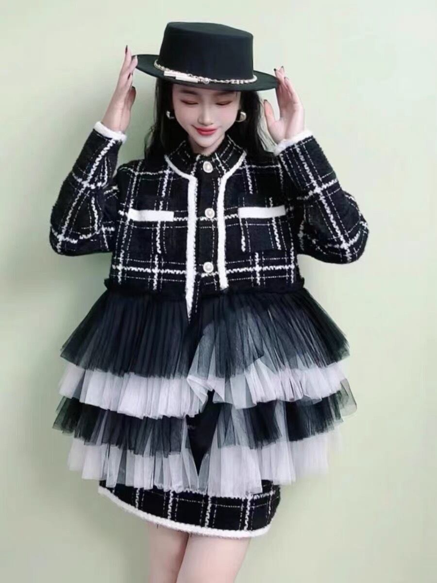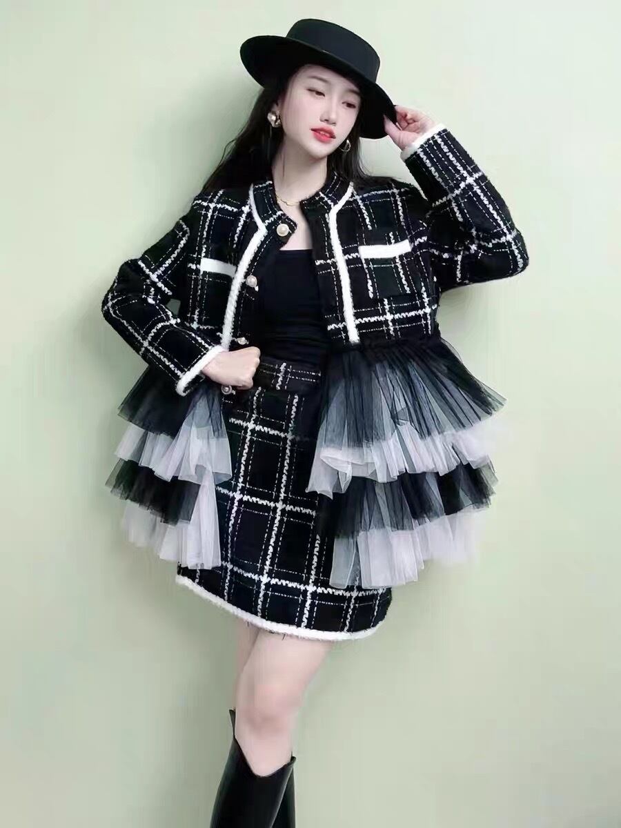 【セットアップ】黒 チェック アウター セット セーター カーディガン