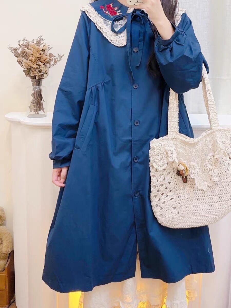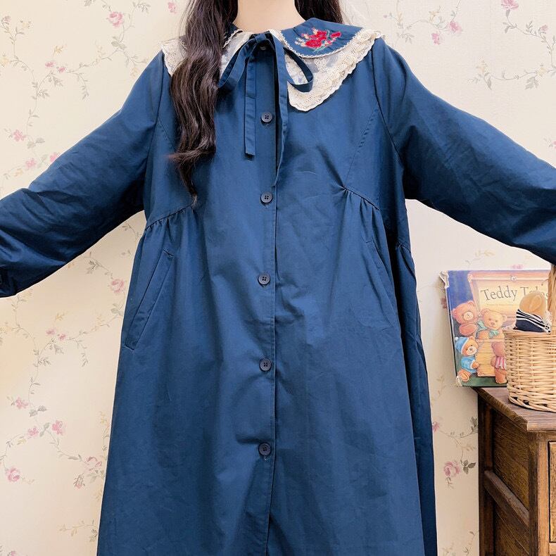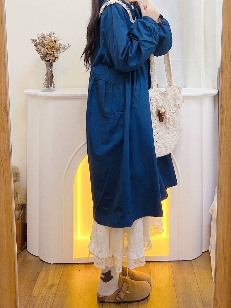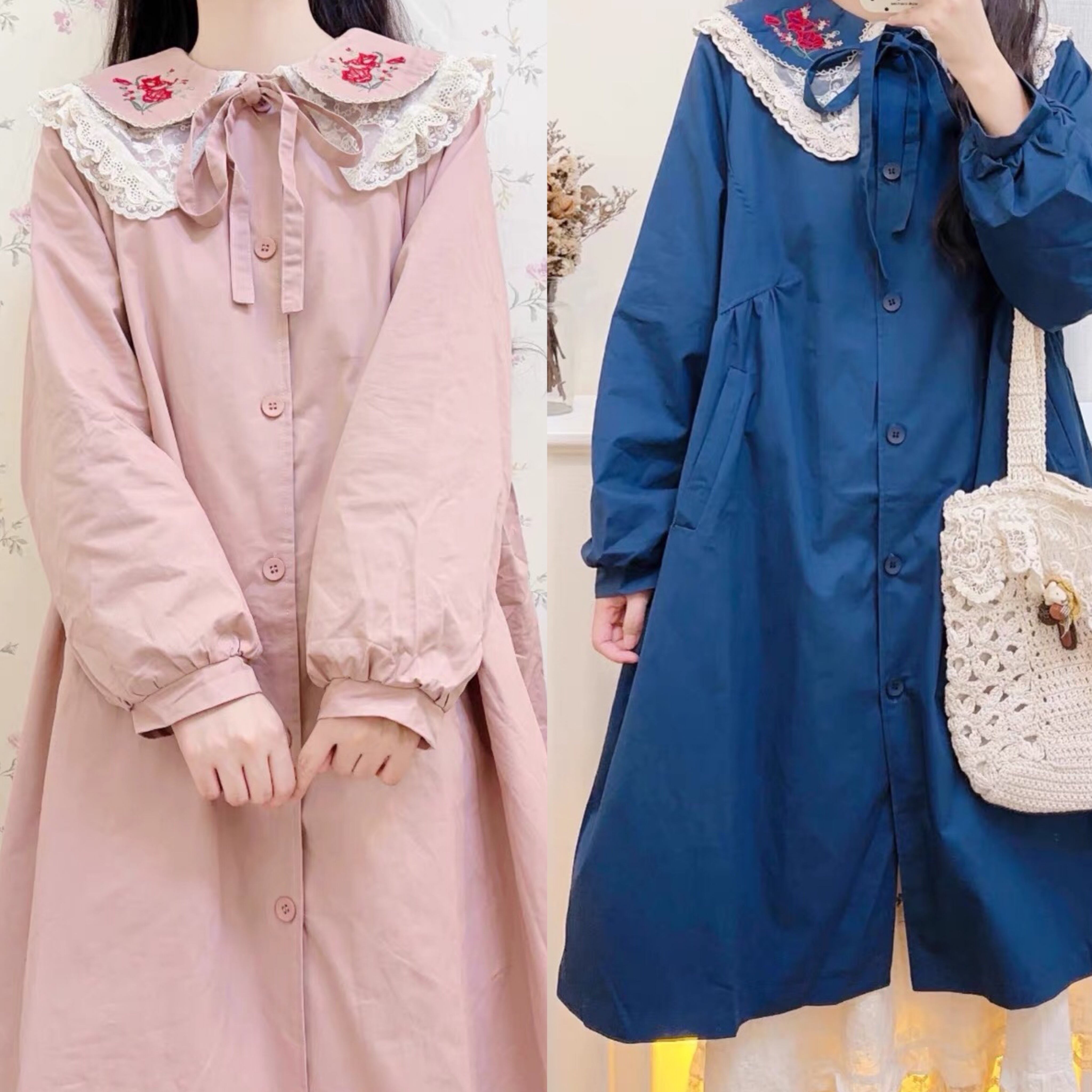 アウター コート 丸襟 ピンク ネイビー ワンピース