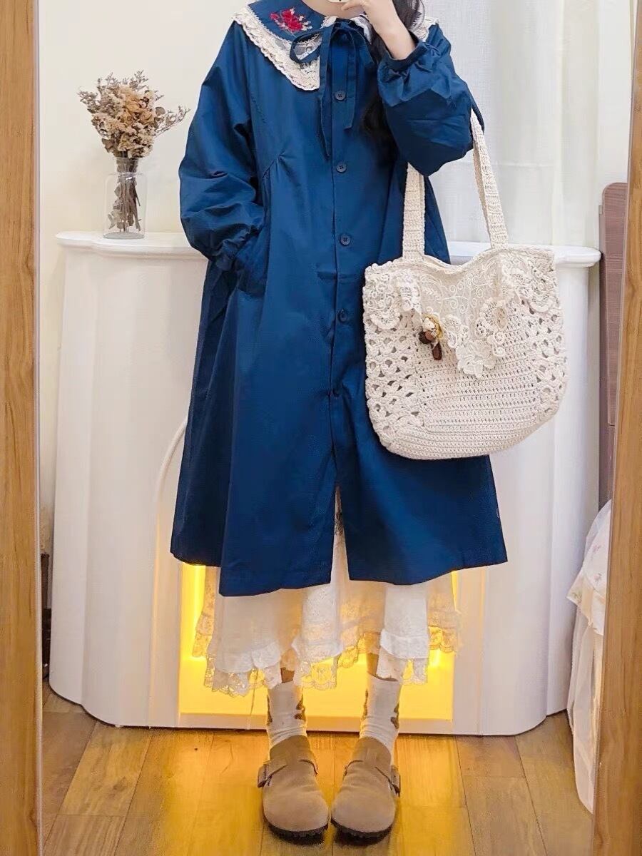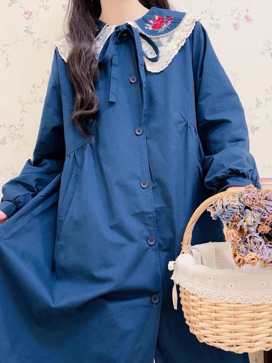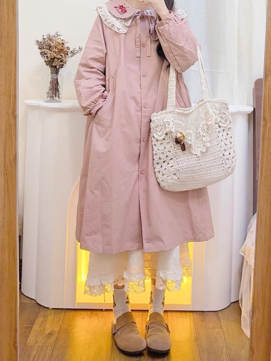 アウター コート 丸襟 ピンク ネイビー ワンピース