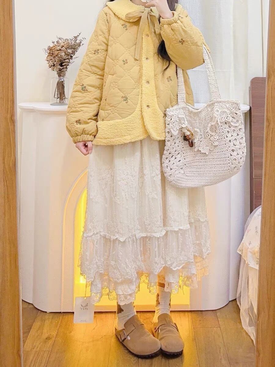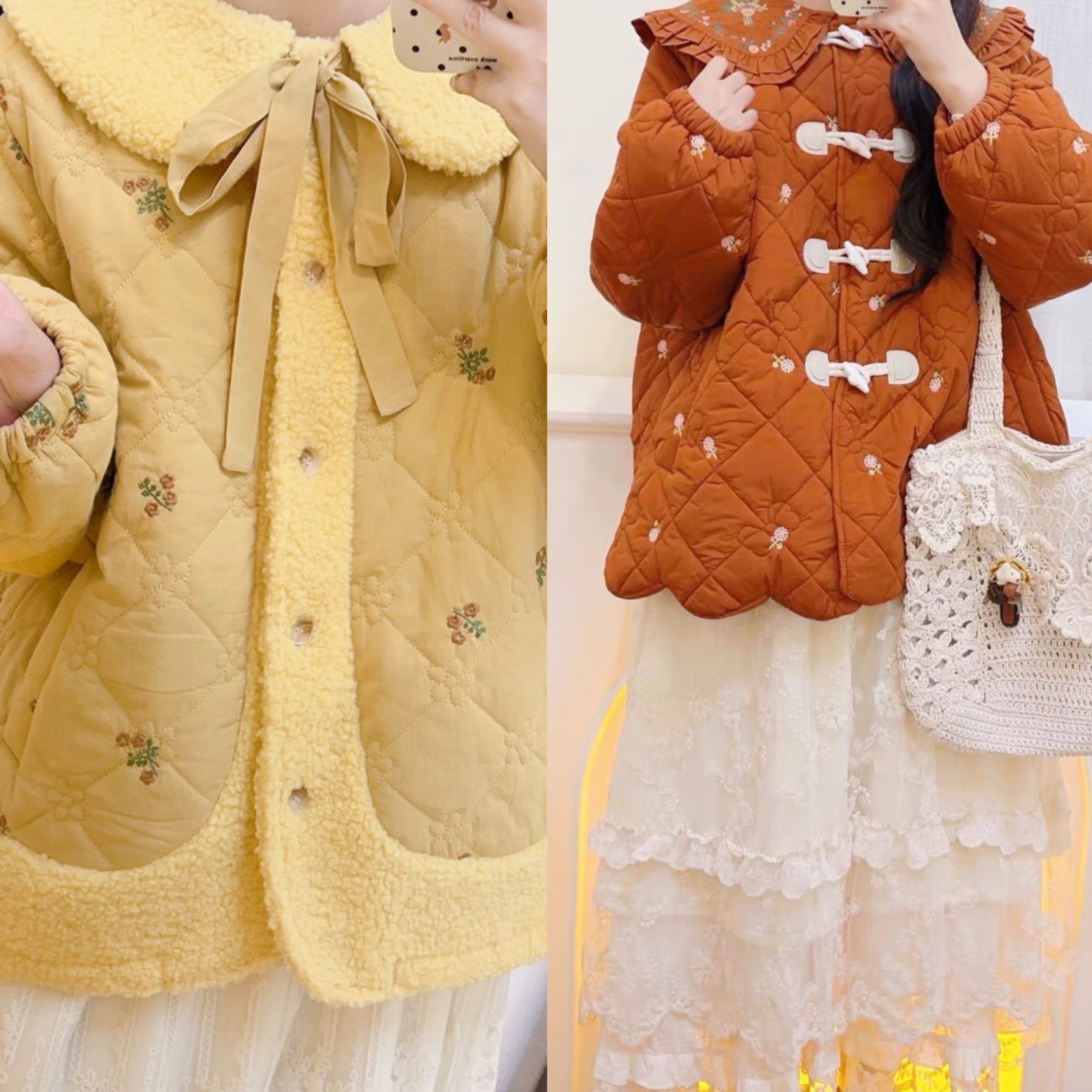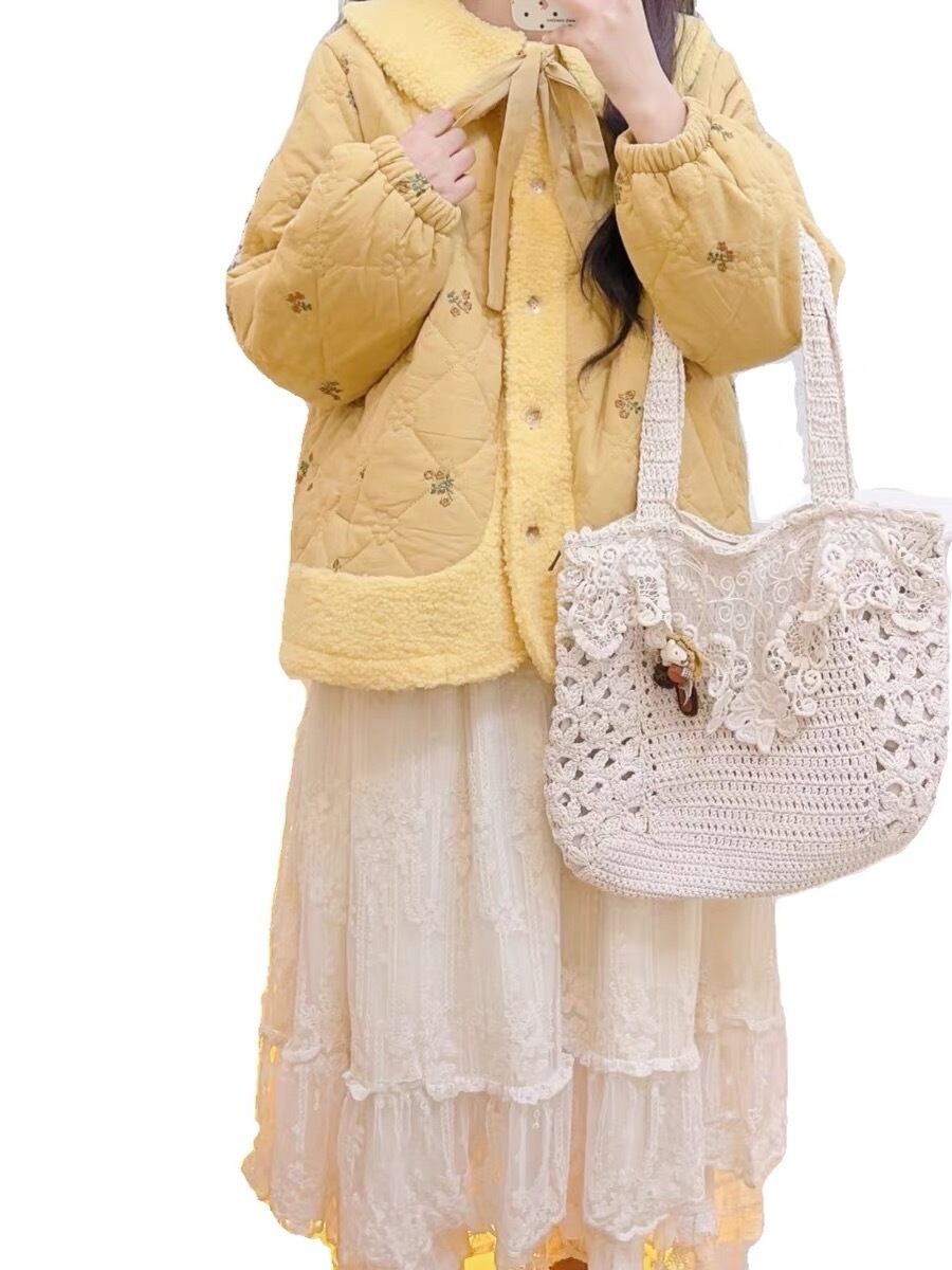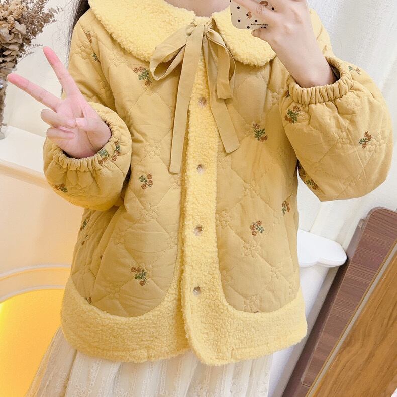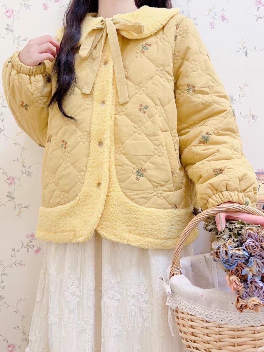 アウター ジャケット コート 茶色 黄色 リボン
