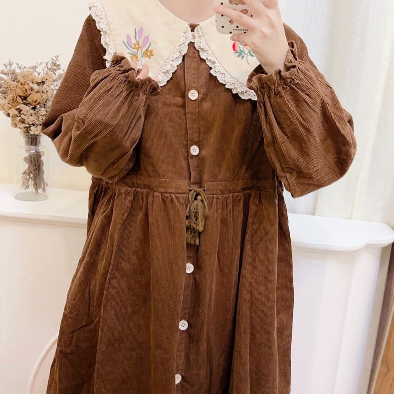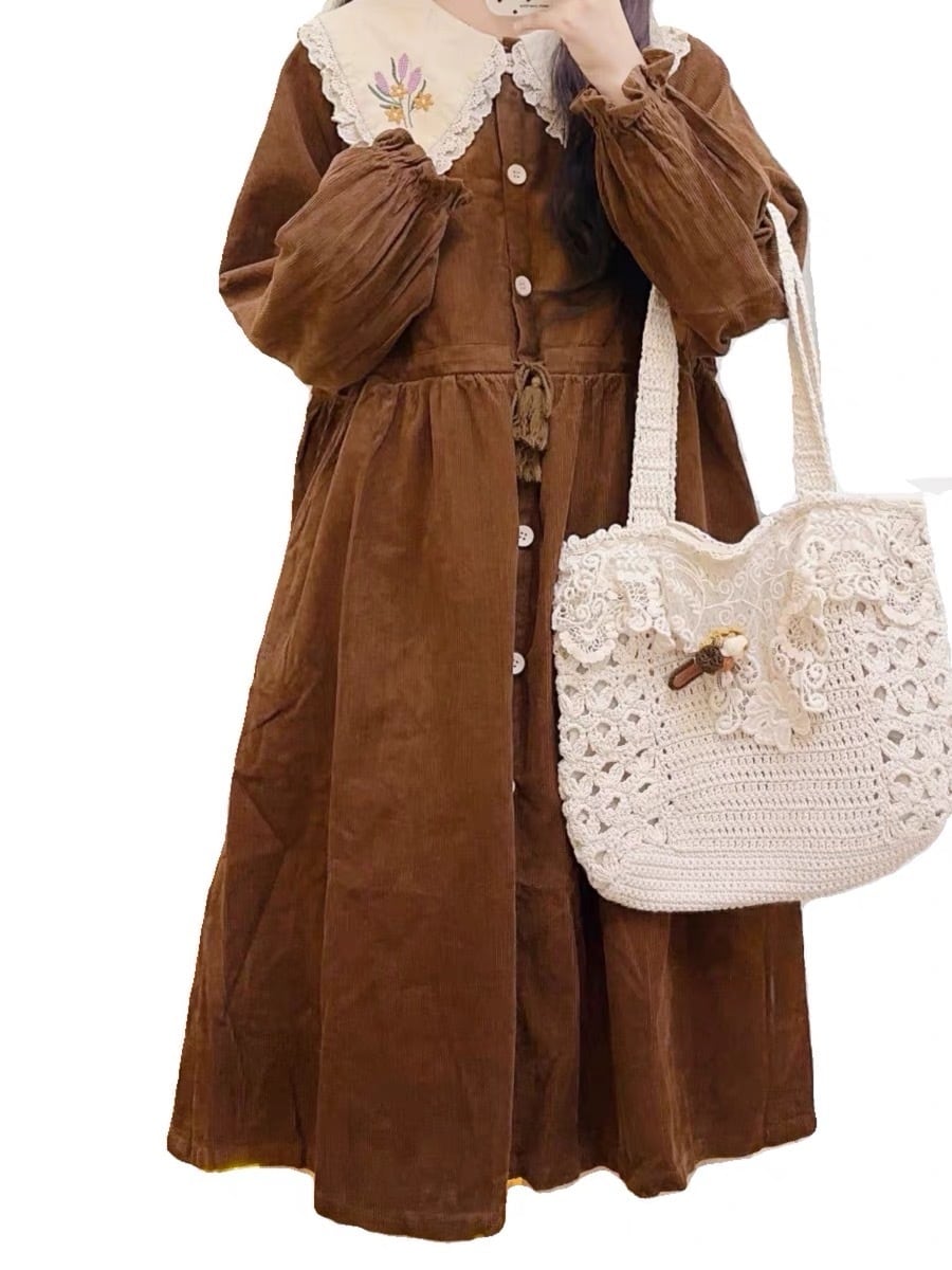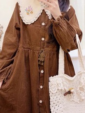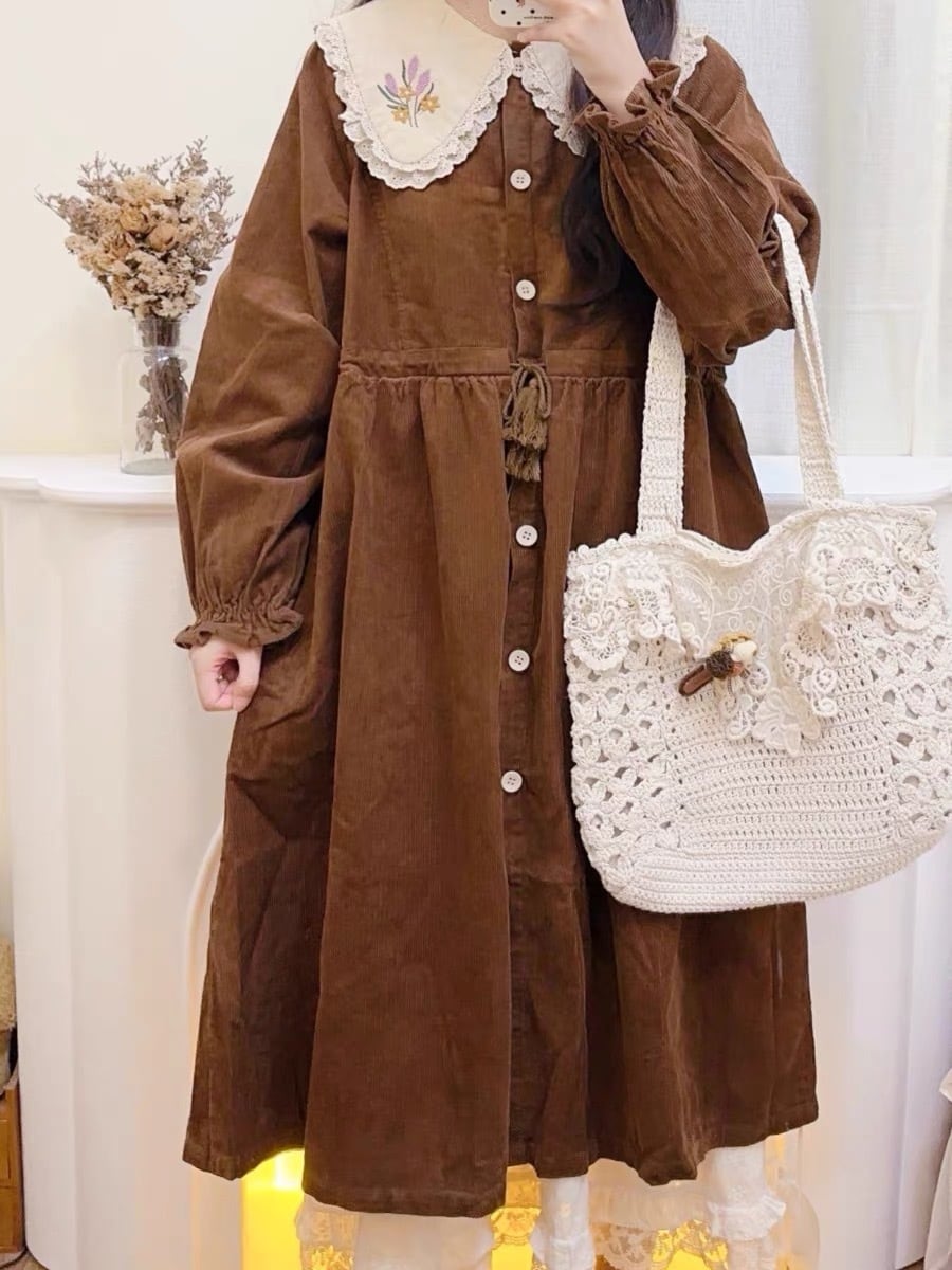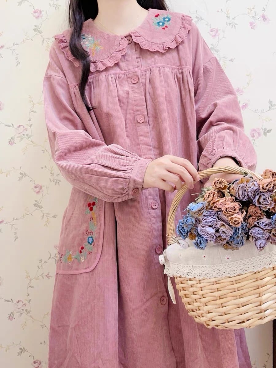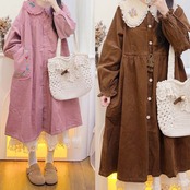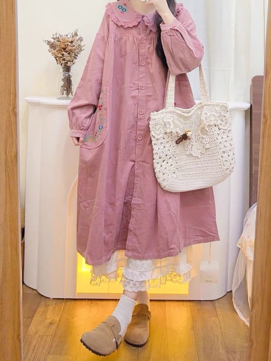 アウター ワンピース コート 丸襟 ピンク 茶色