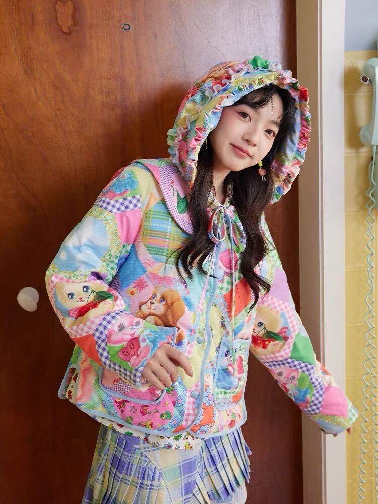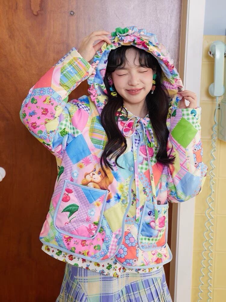 【2way】アウター ジャンパー ジャケット 可愛い チェック 水色 フード