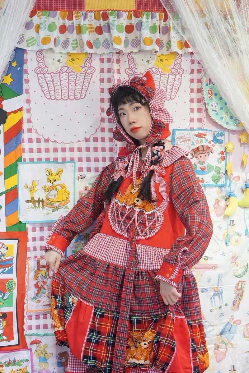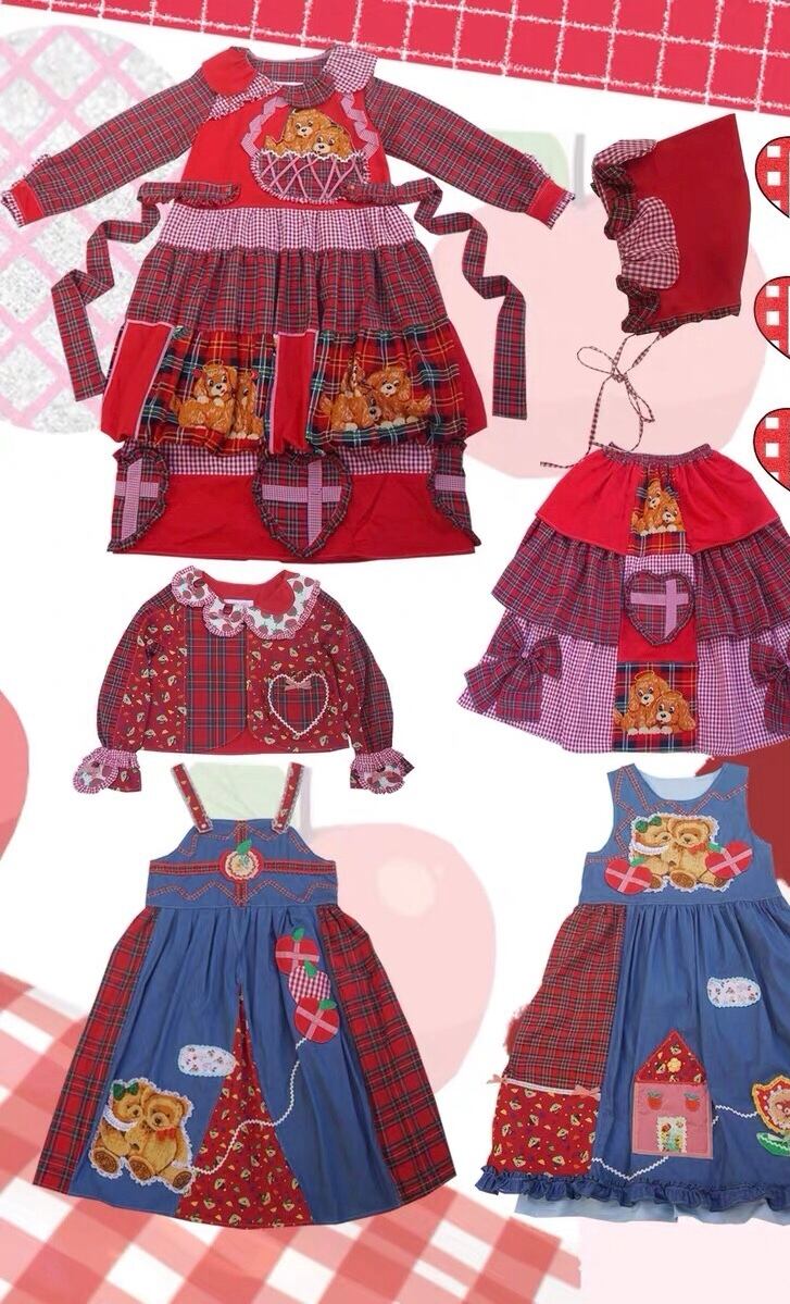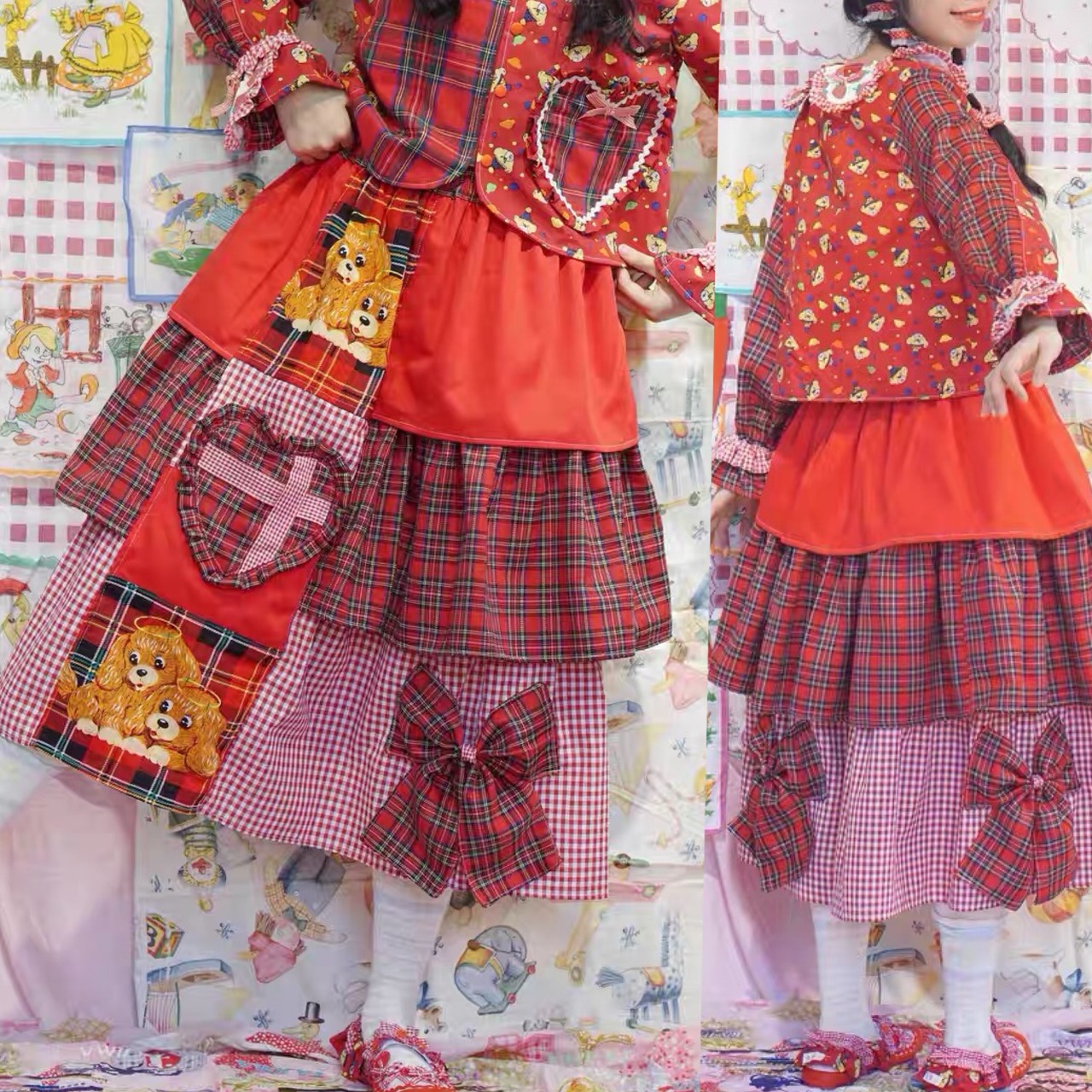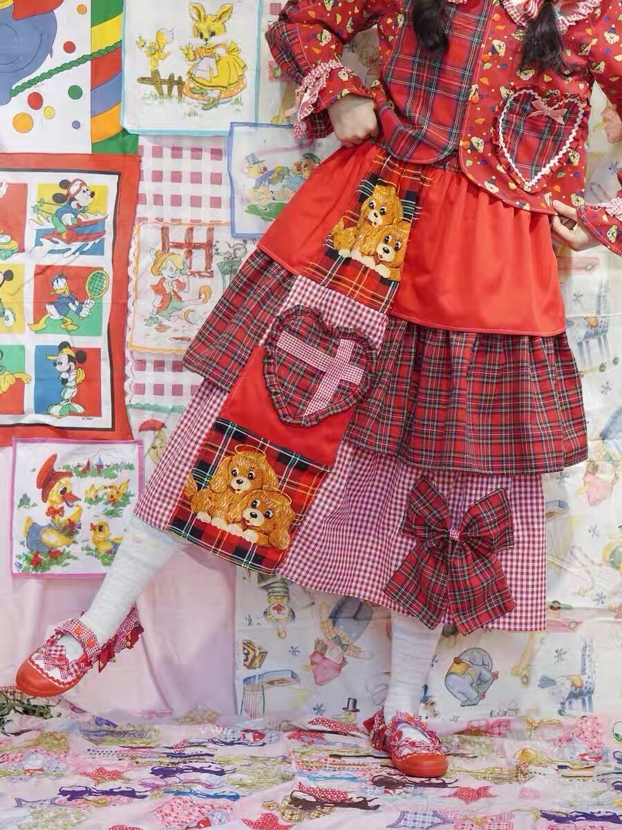 【スカート】赤 チェック ハート くま クロス ガーリー ボトムス