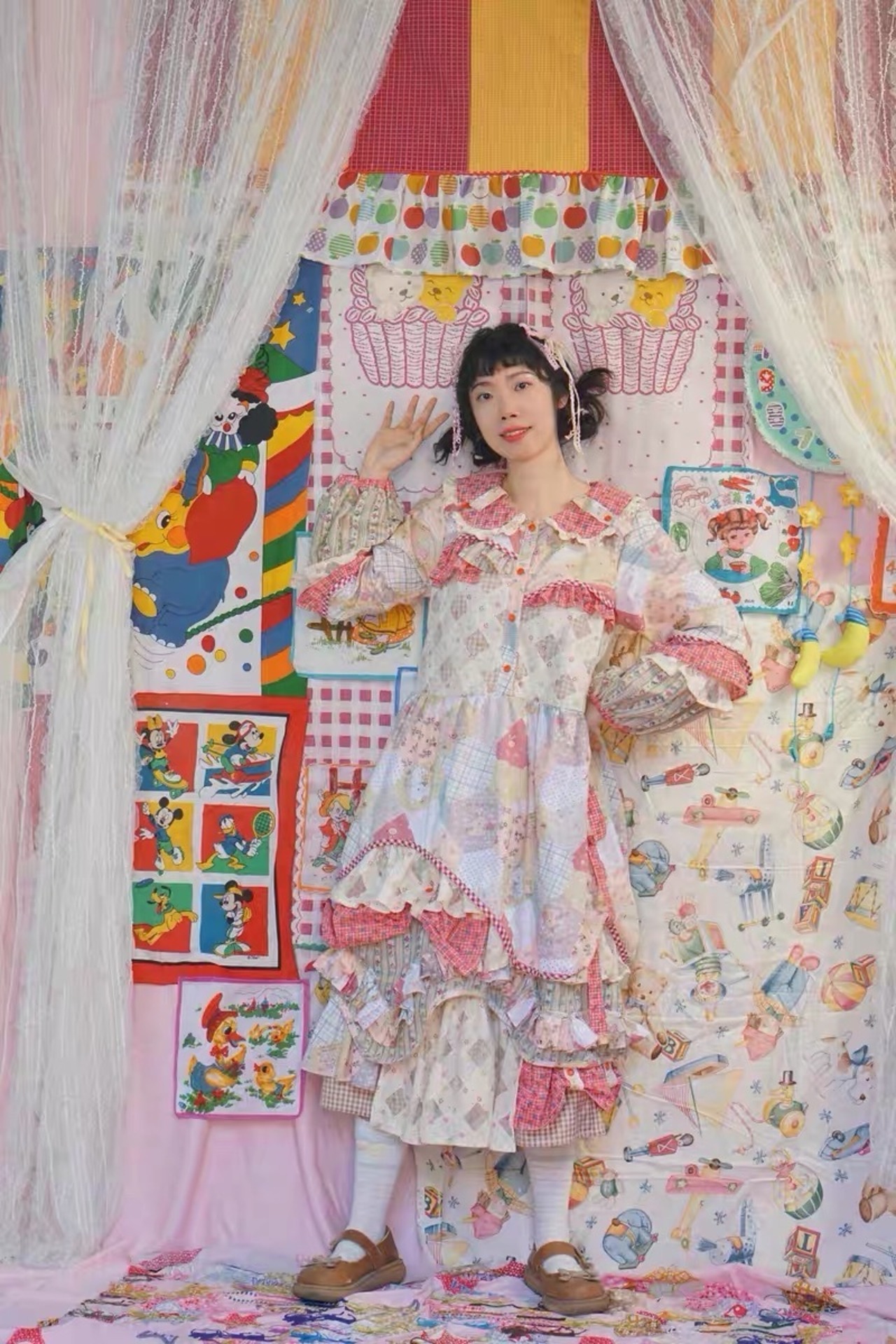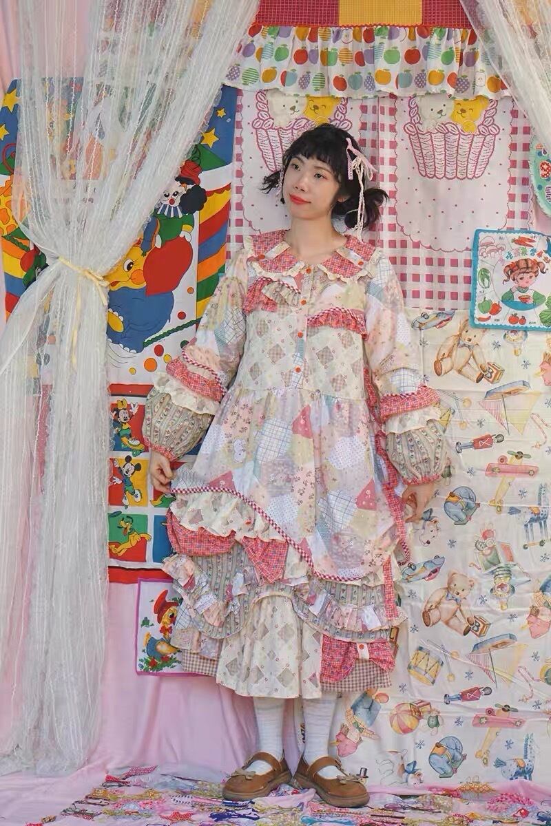 ワンピース ピンク ガーリー ゆったり ブラウス チェック