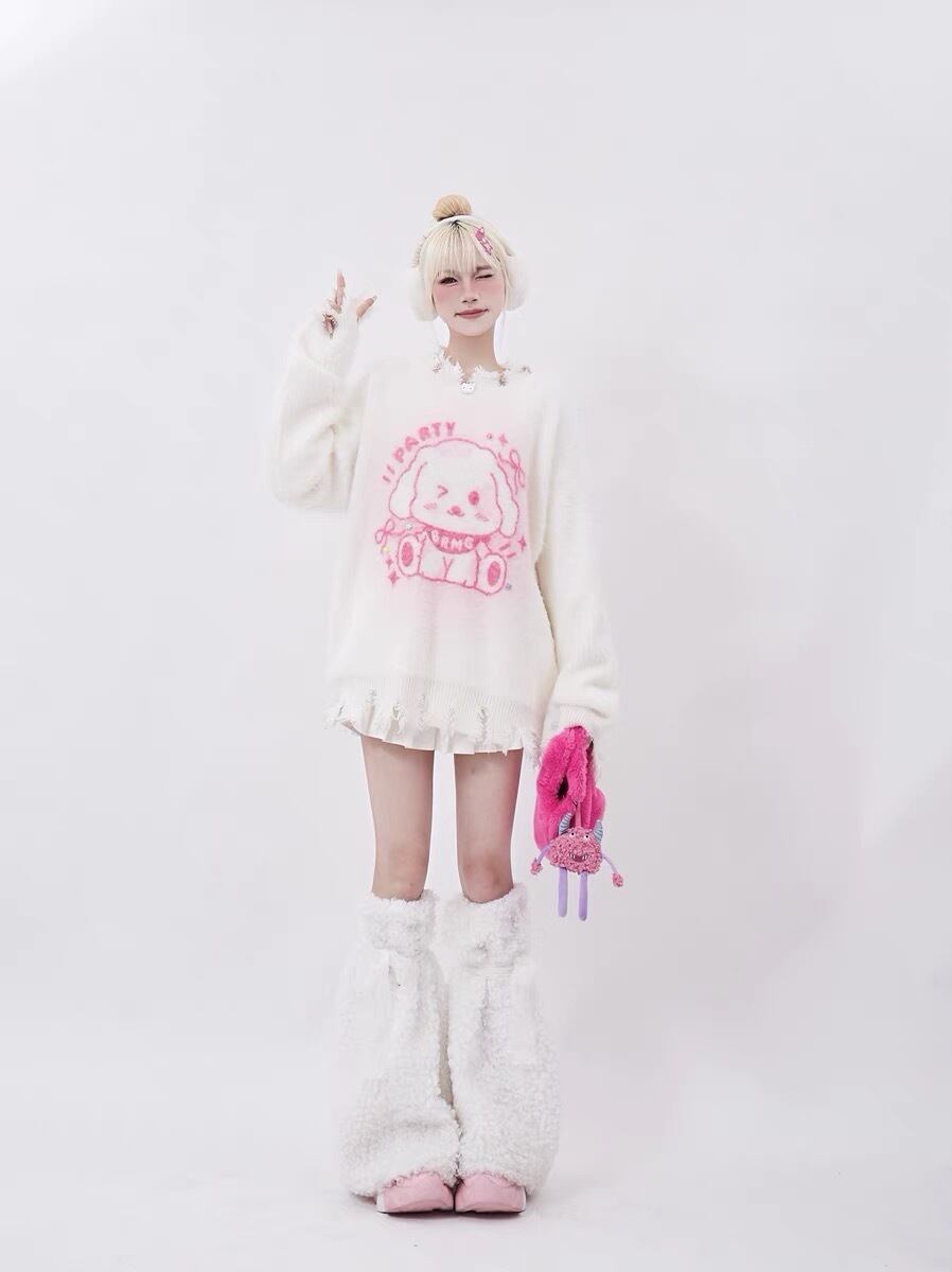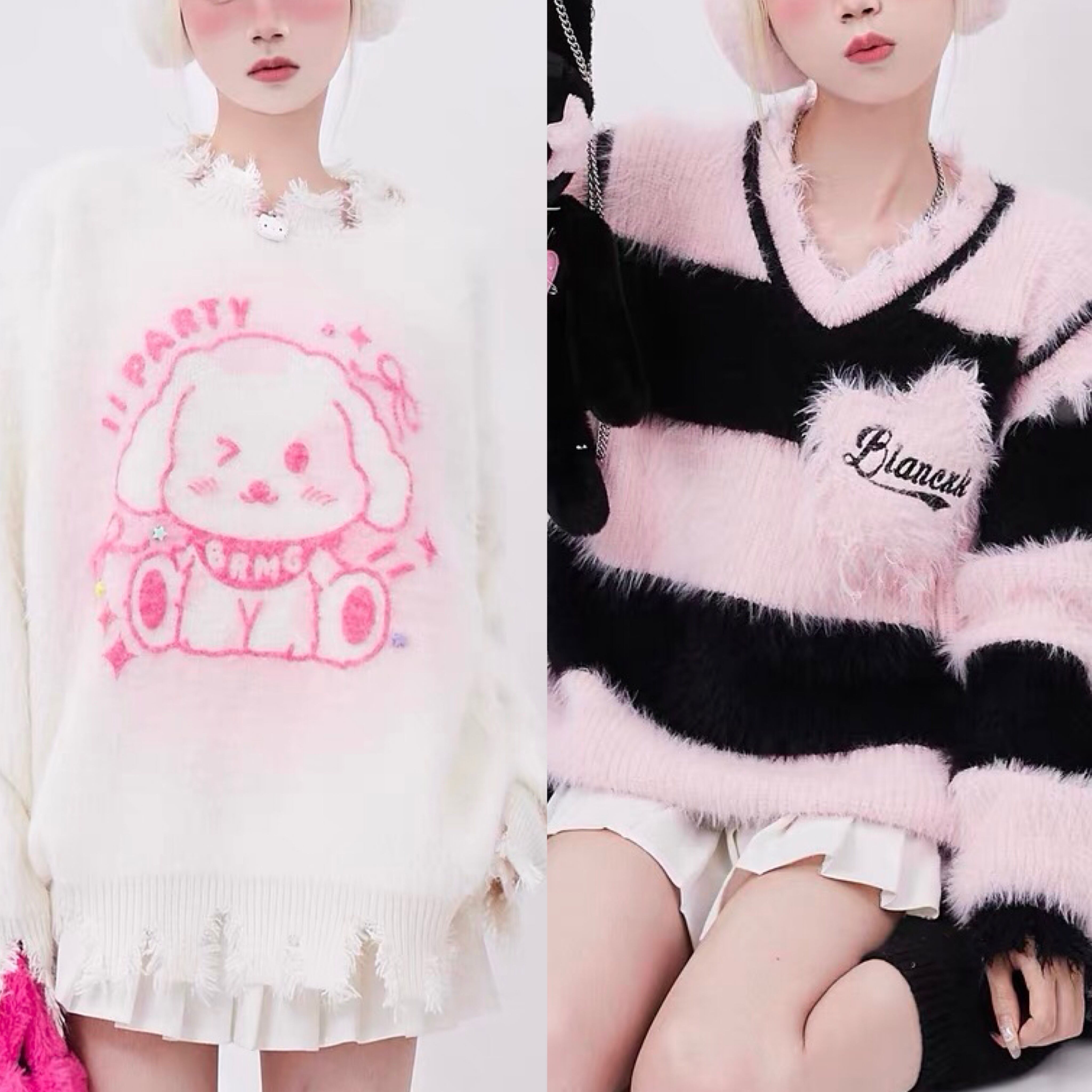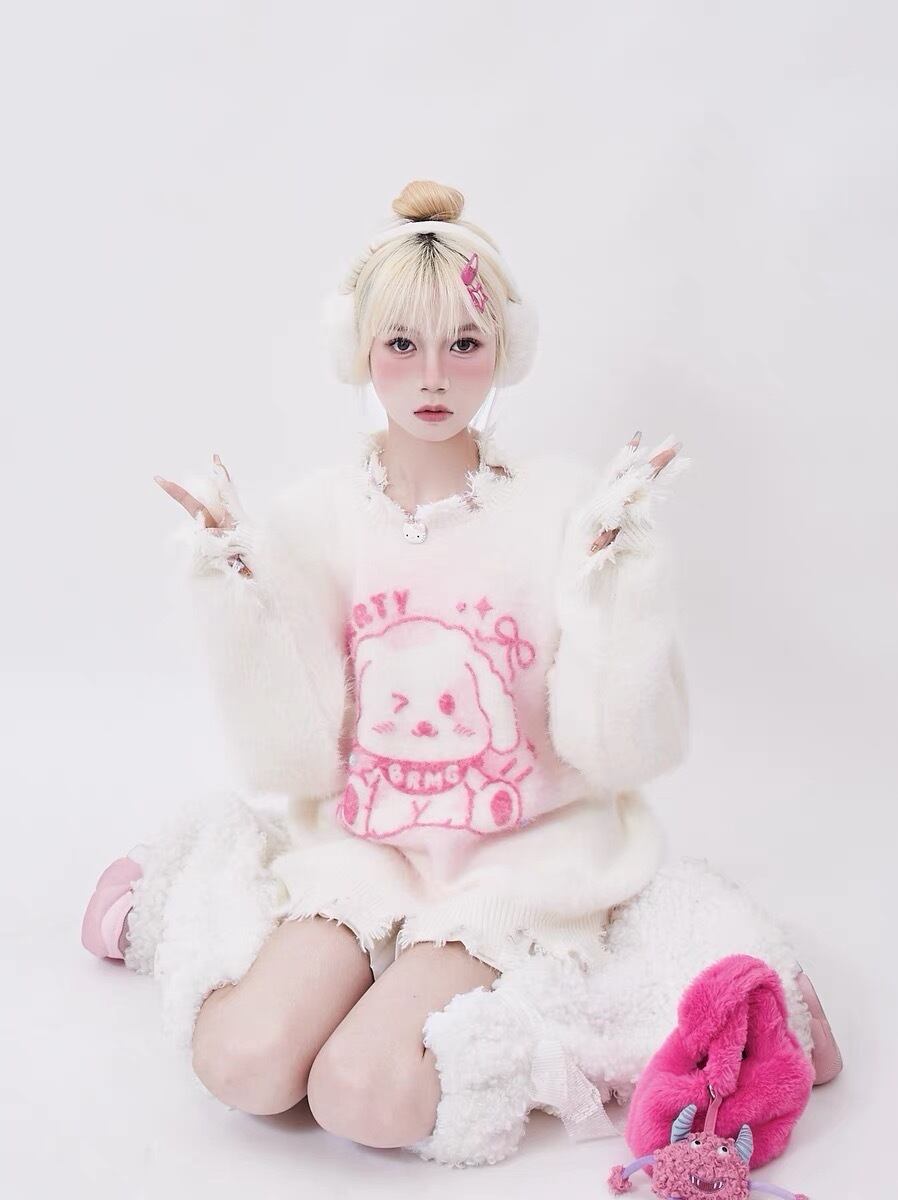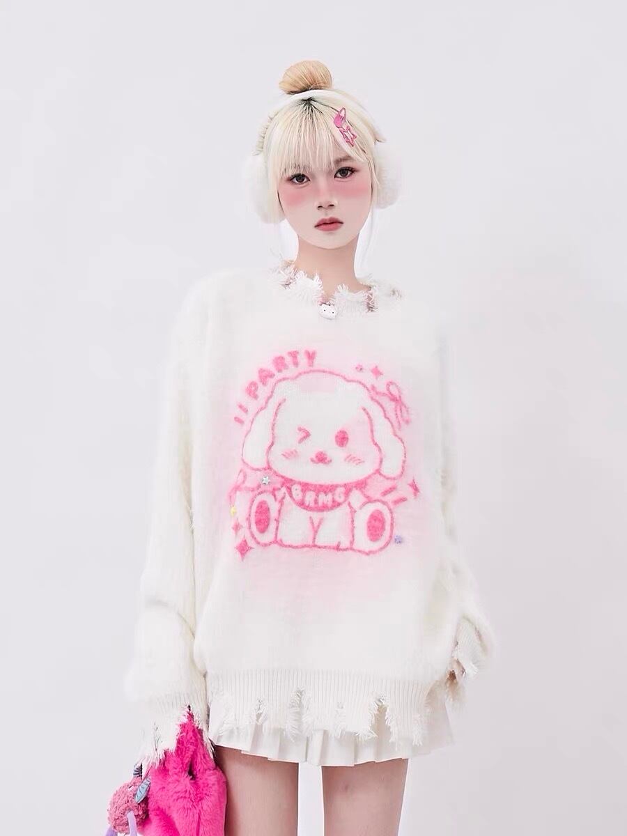 セーター ニット ボーダー ピンク うさぎ カーディガン