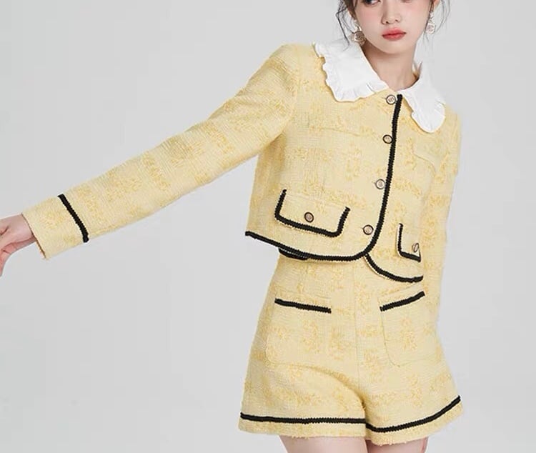 【セットアップ】黄色 ジャケット パンツ スーツ ガーリー