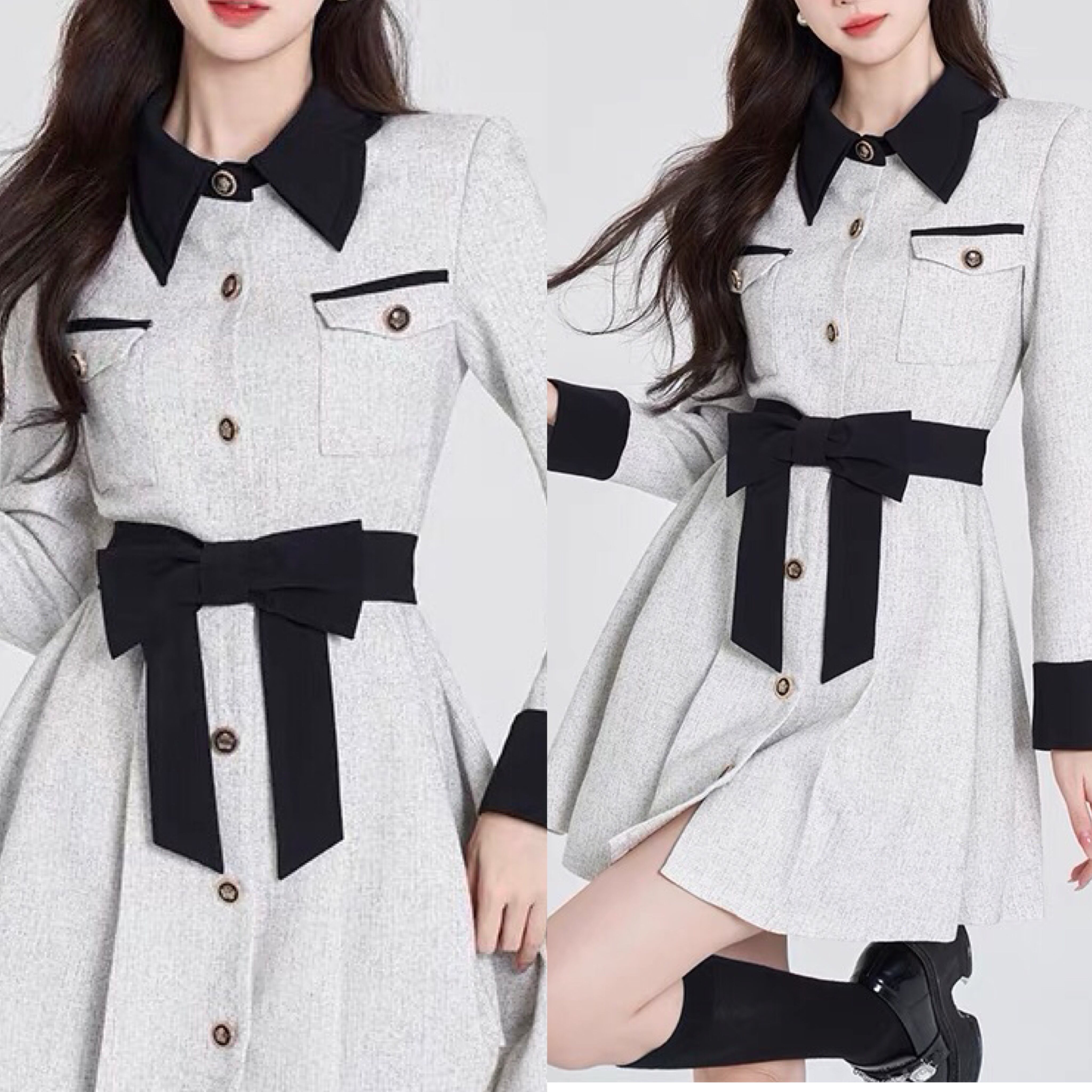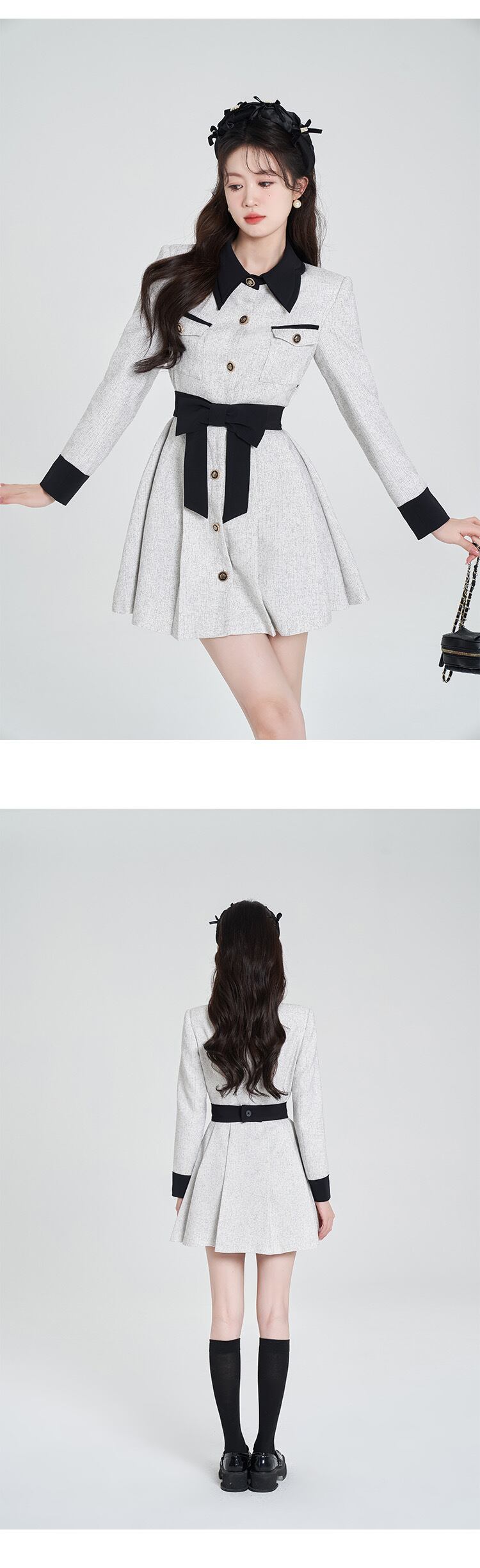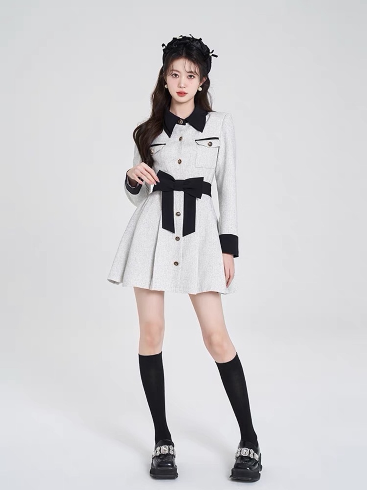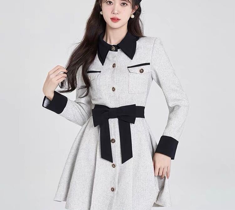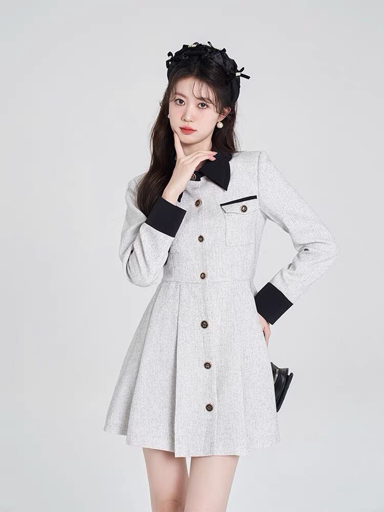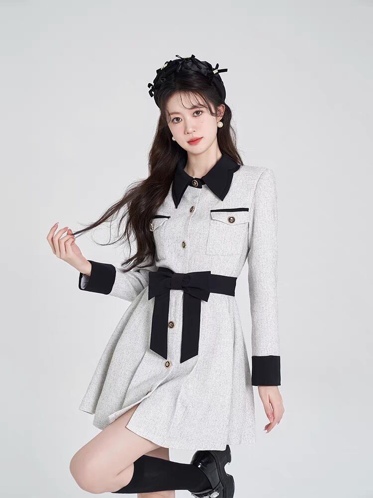 グレー ワンピース ガーリー リボン お嬢様