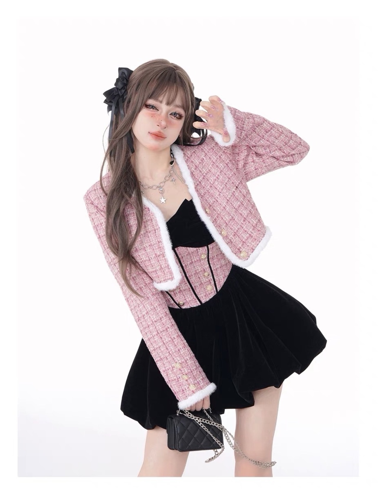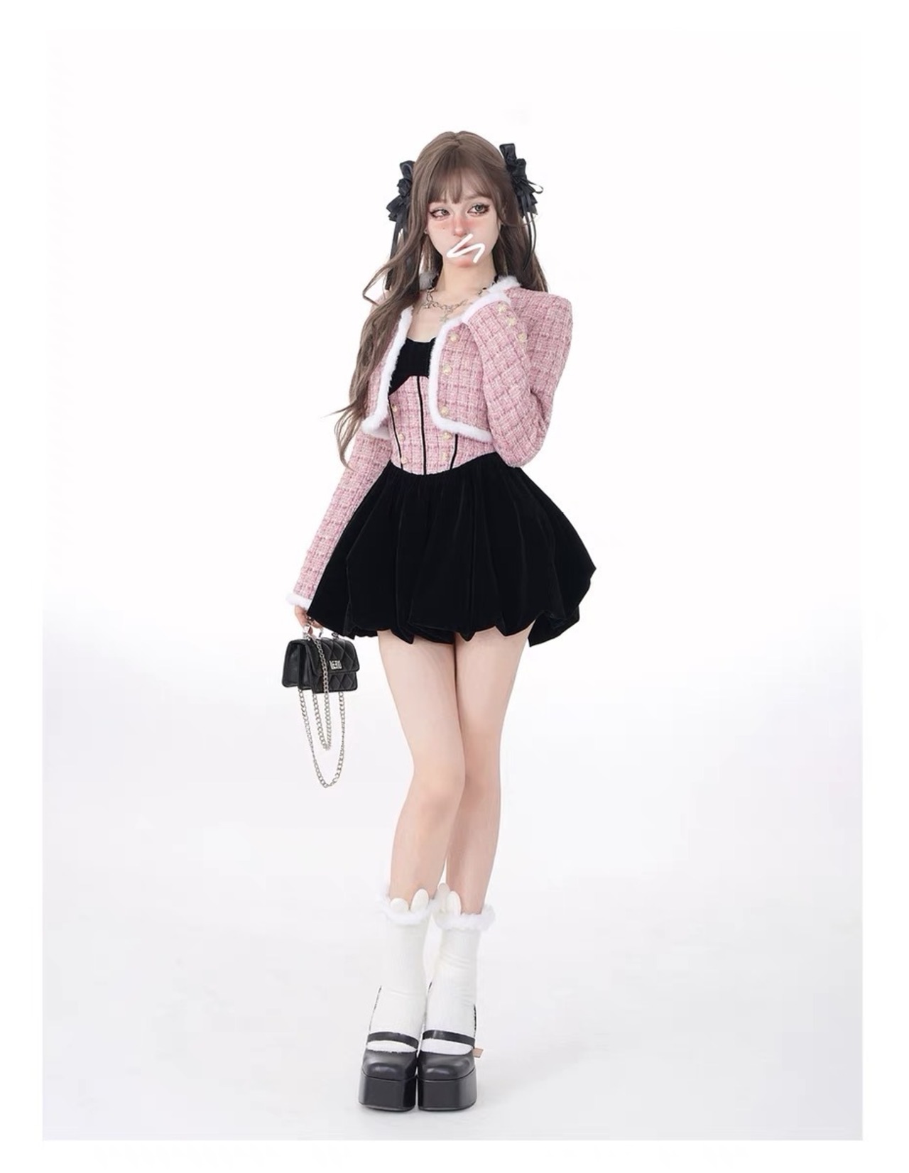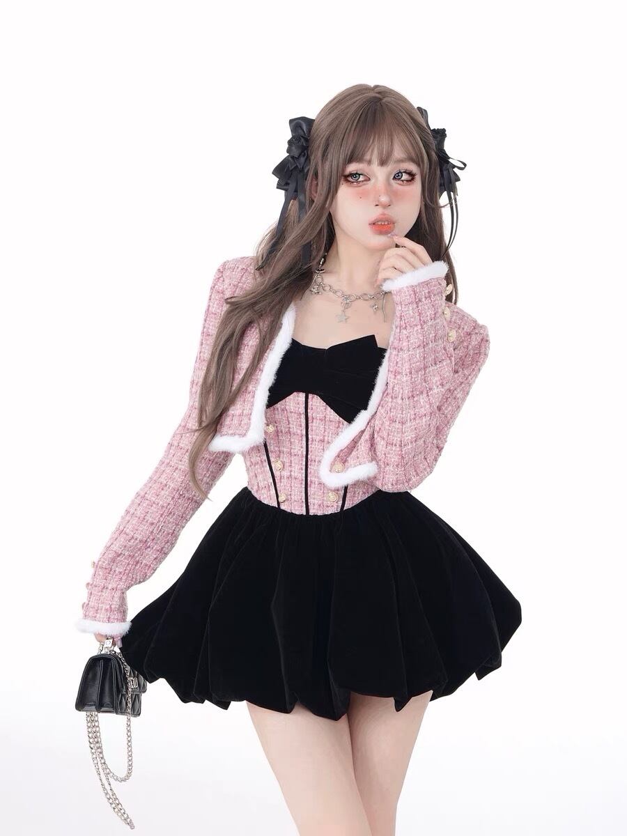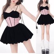 【ワンピース】ピンク リボン ベロア ワンピース キャミソール