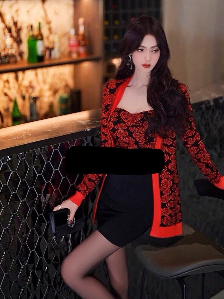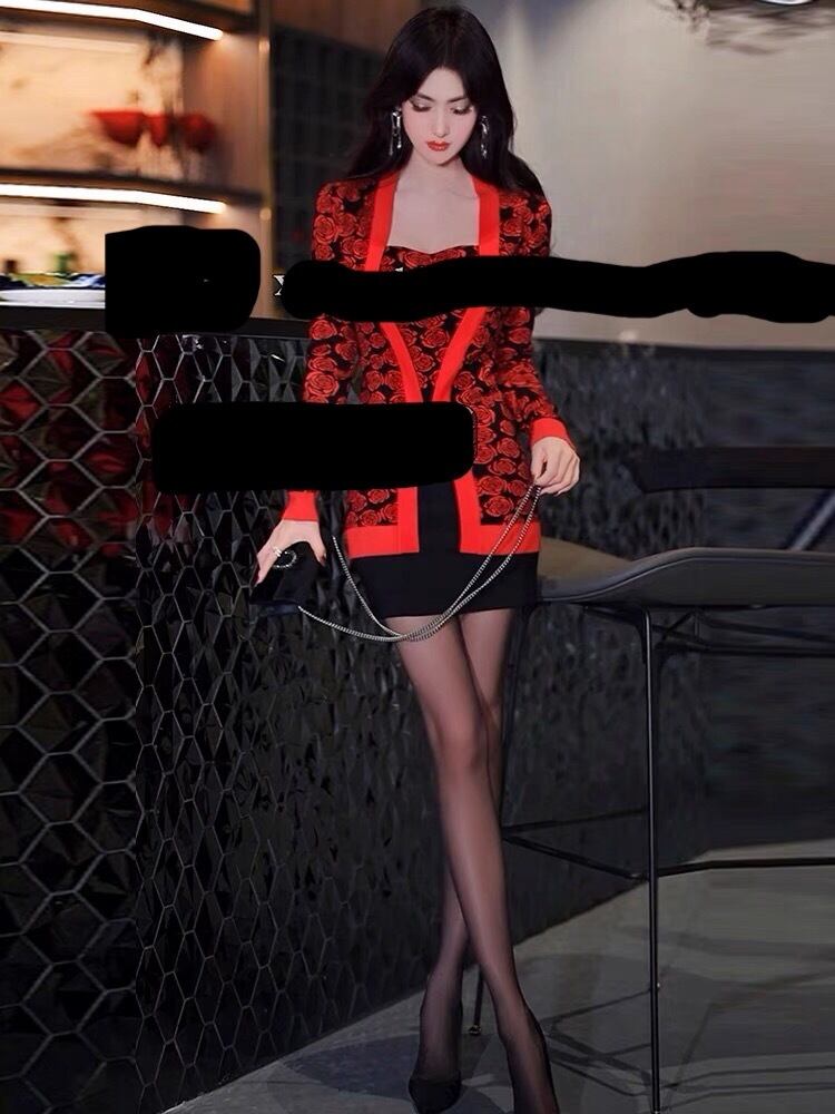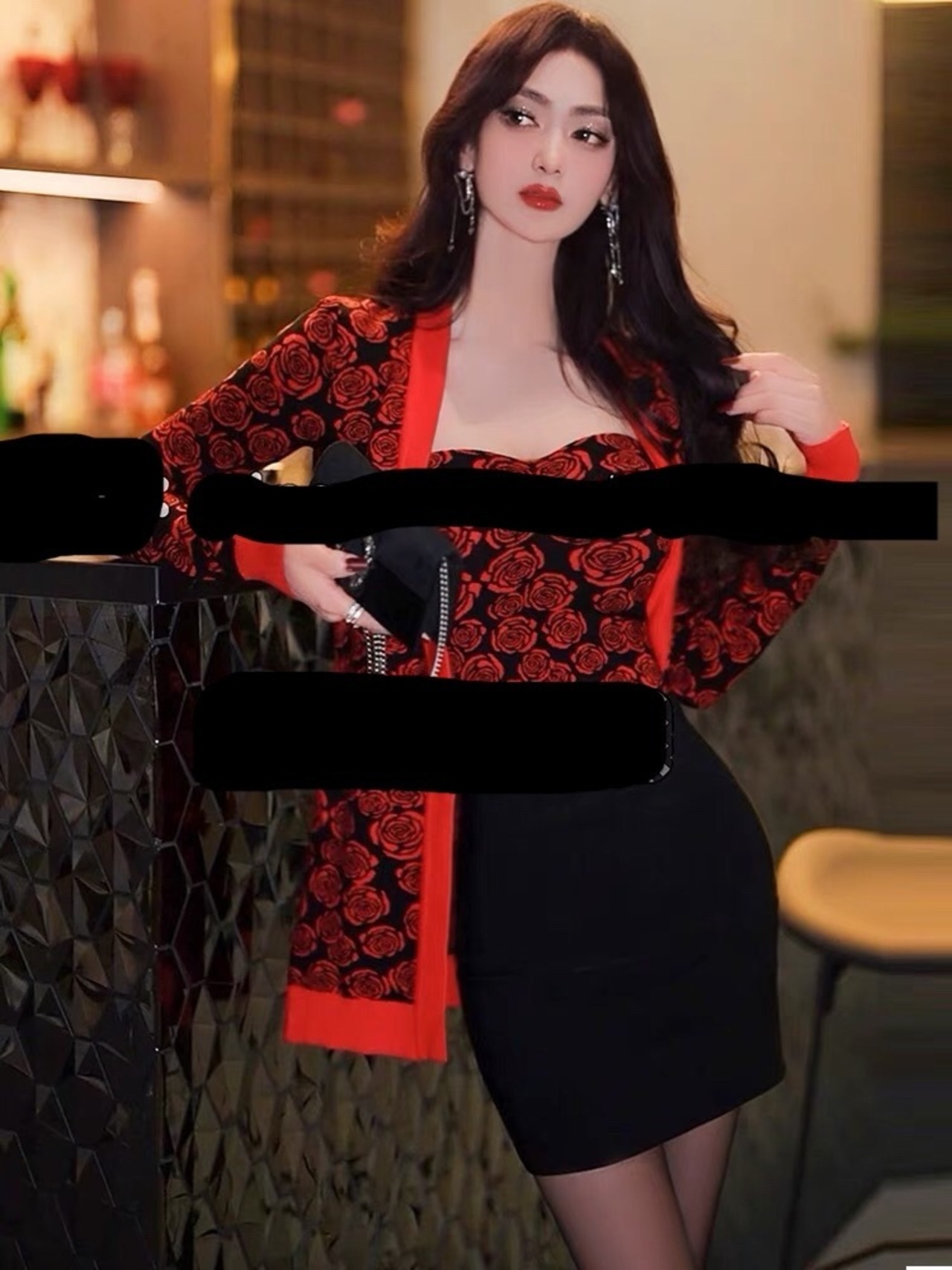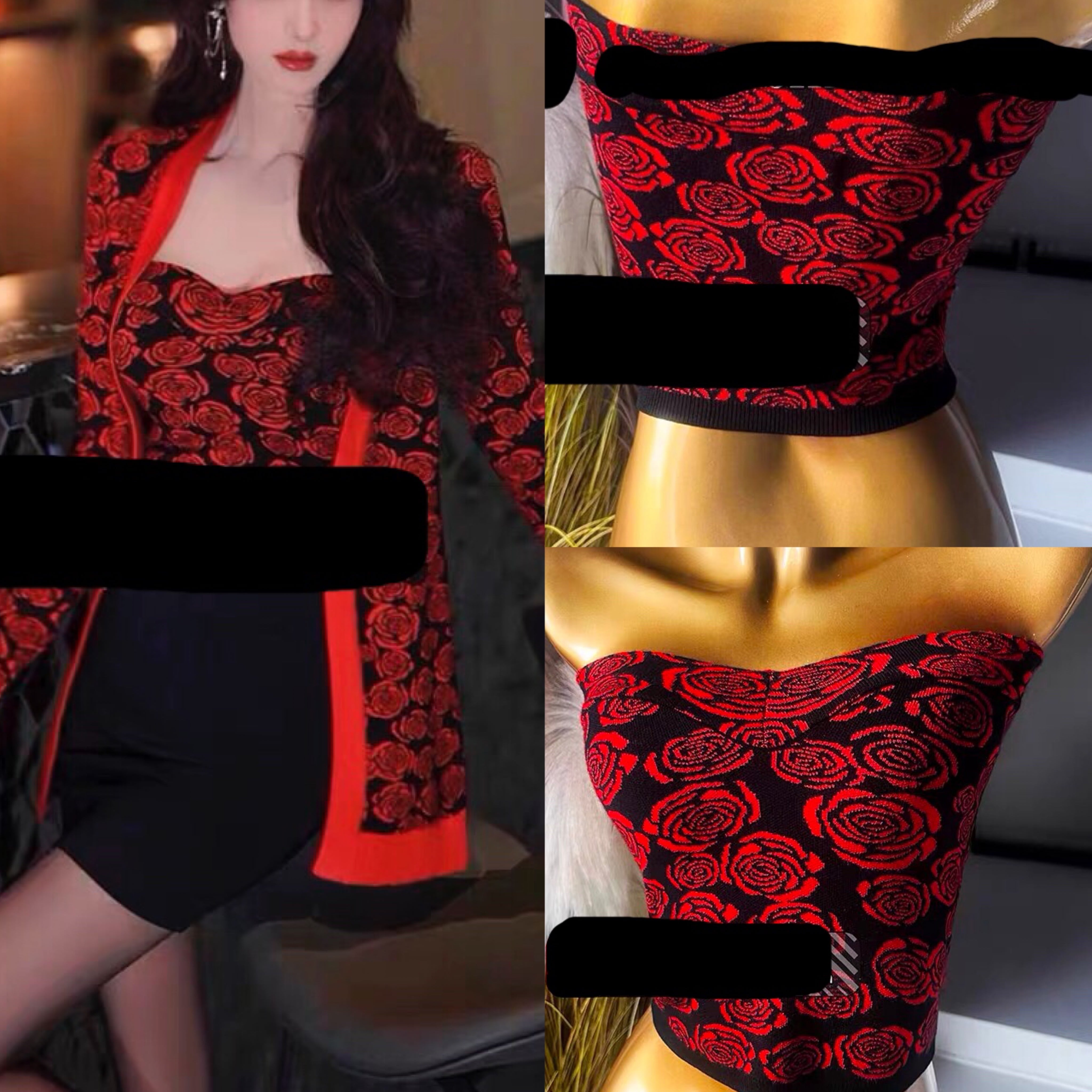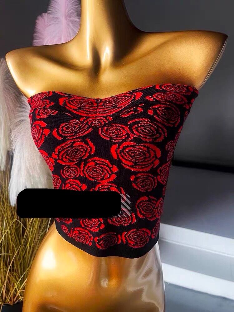【ベアトップ】花柄 薔薇 フラワー 赤 黒 ニット