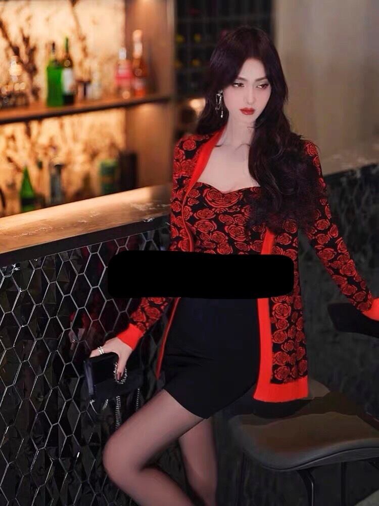 【カーディガン】赤 薔薇 フラワー セーター ニット 黒