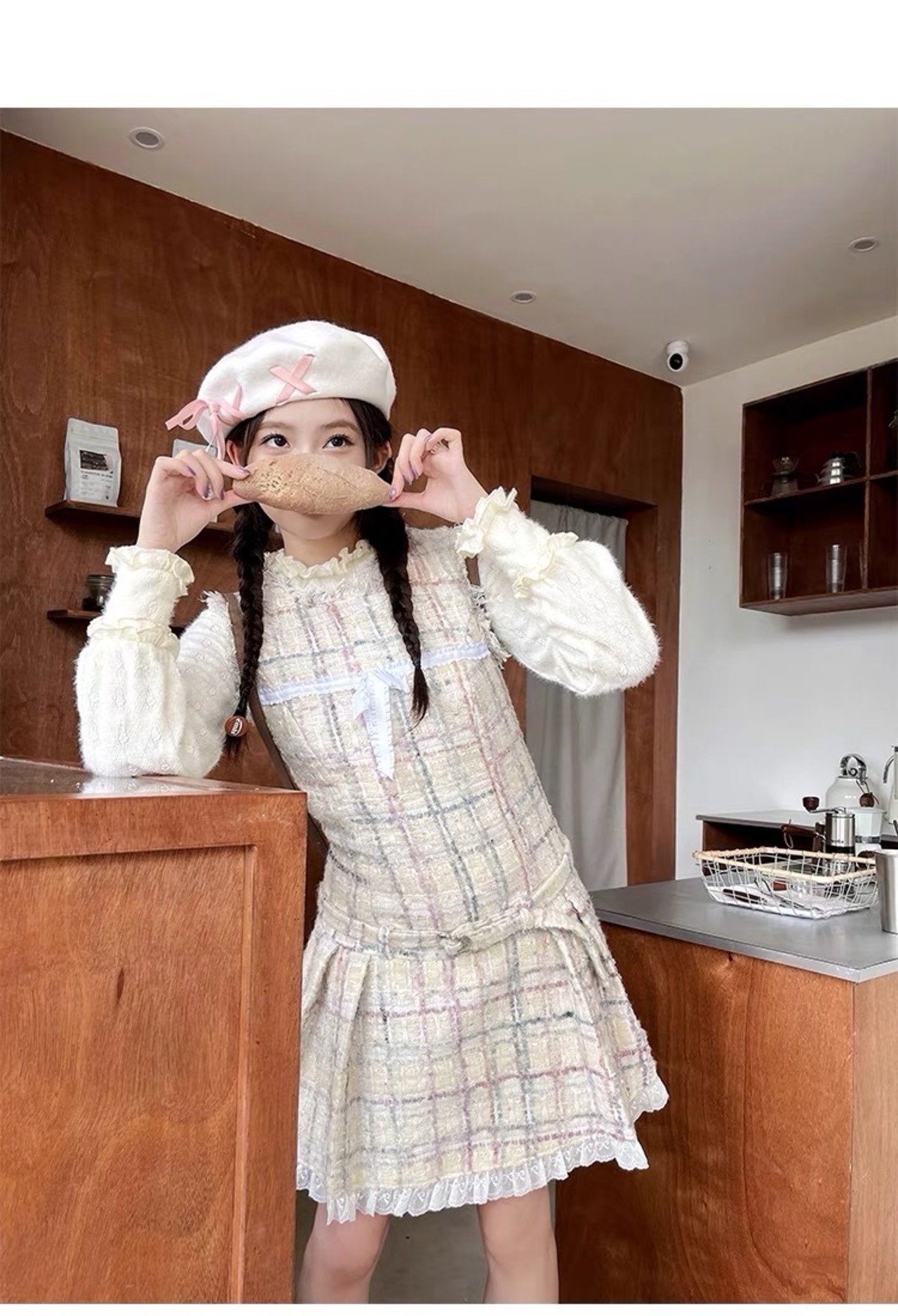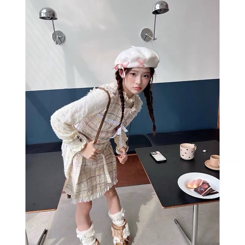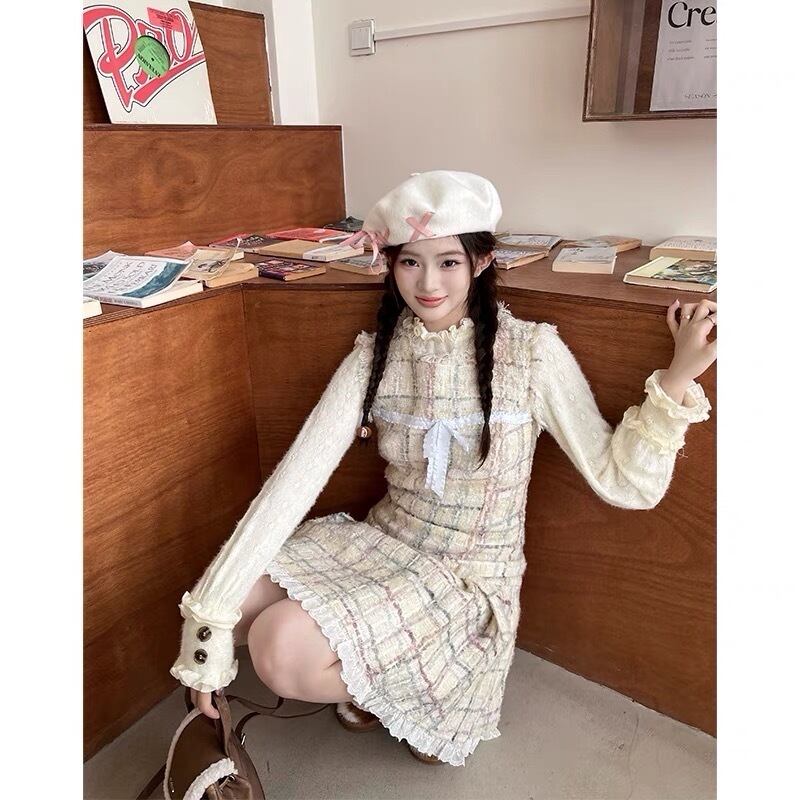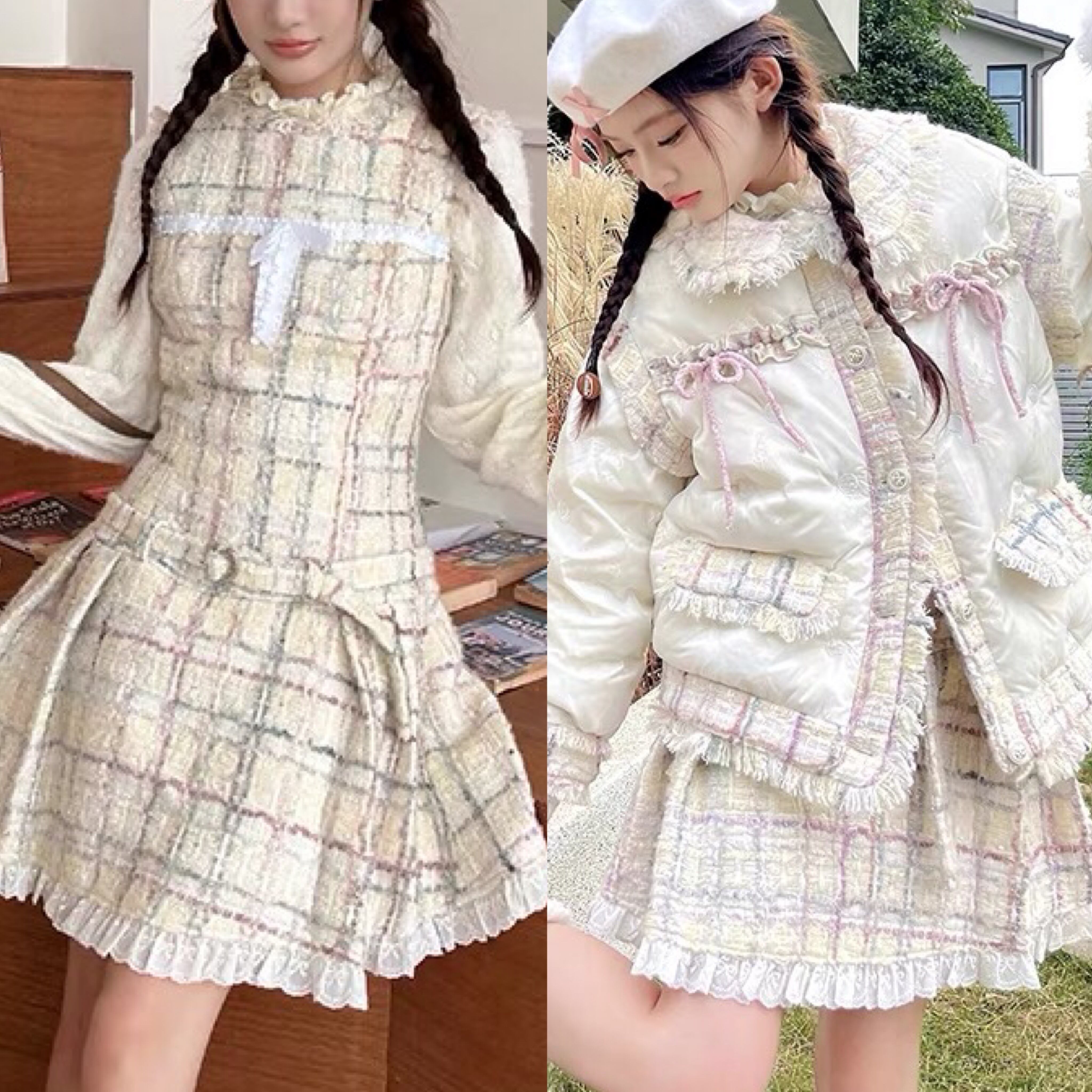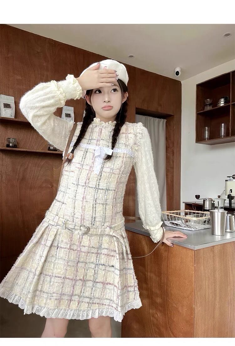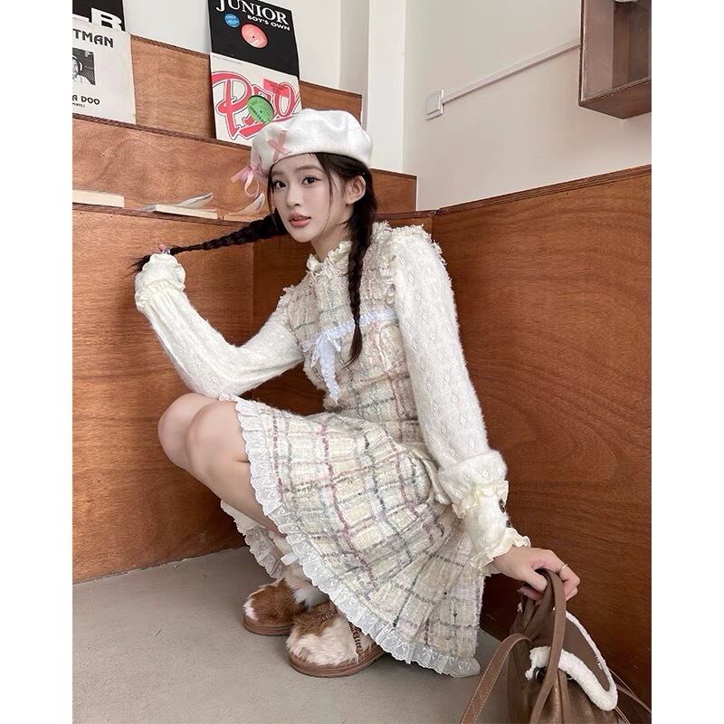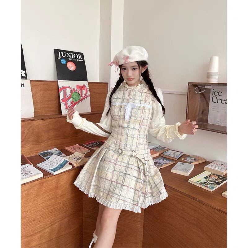 ワンピース ツイード チェック 白 ガーリー 可愛い