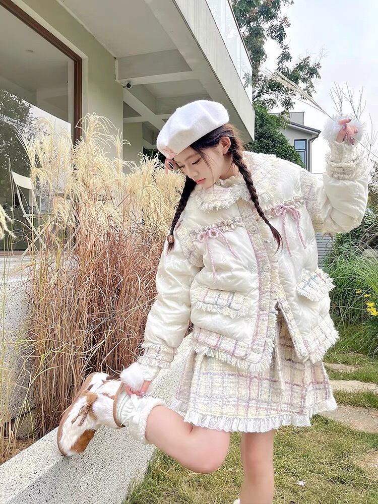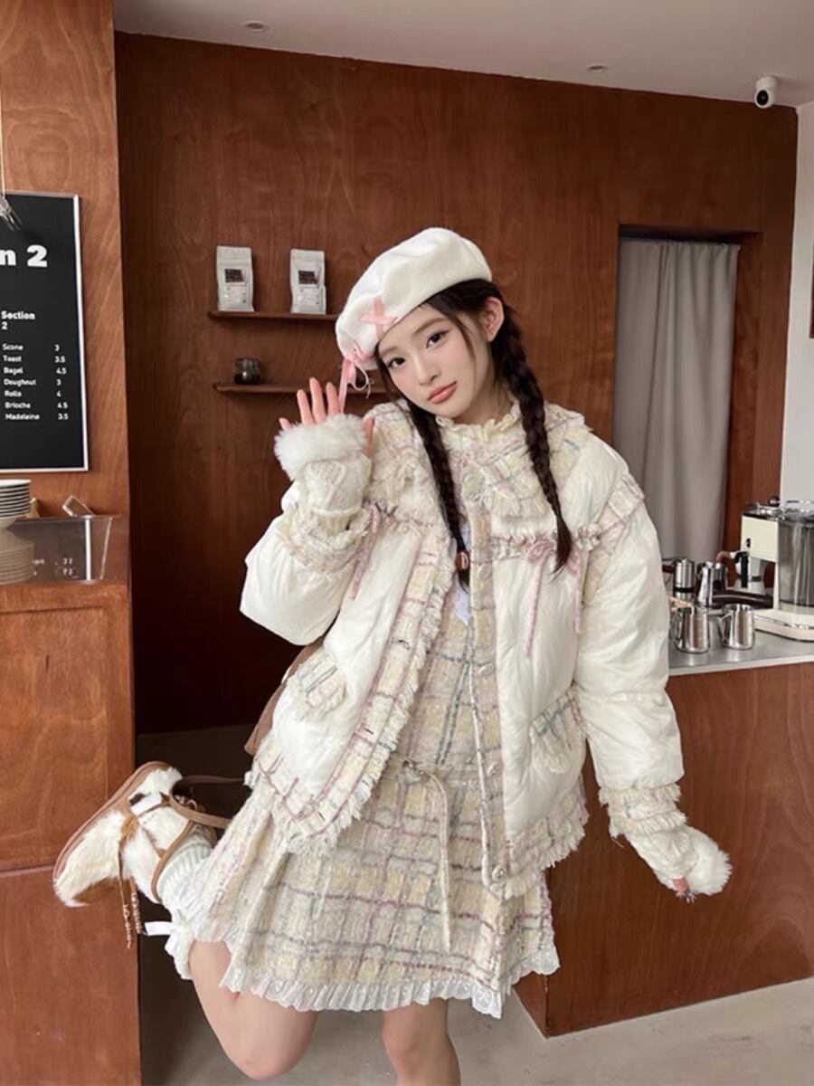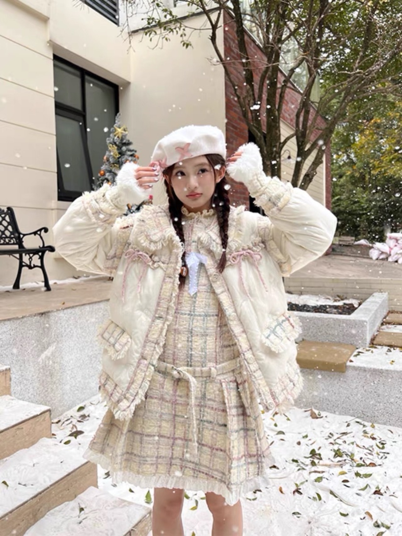 白 チェック コート アウター ジャケット ピンク 可愛い