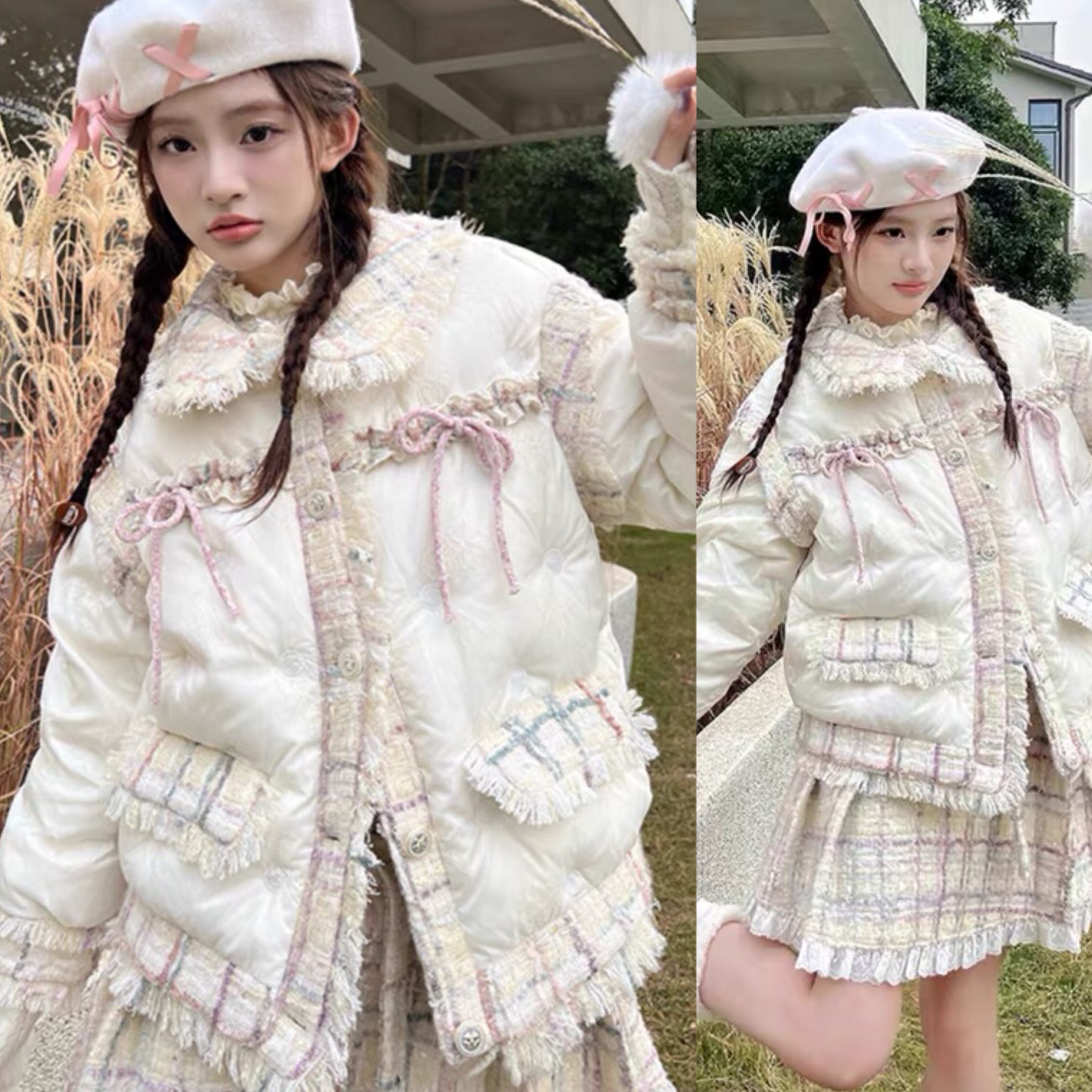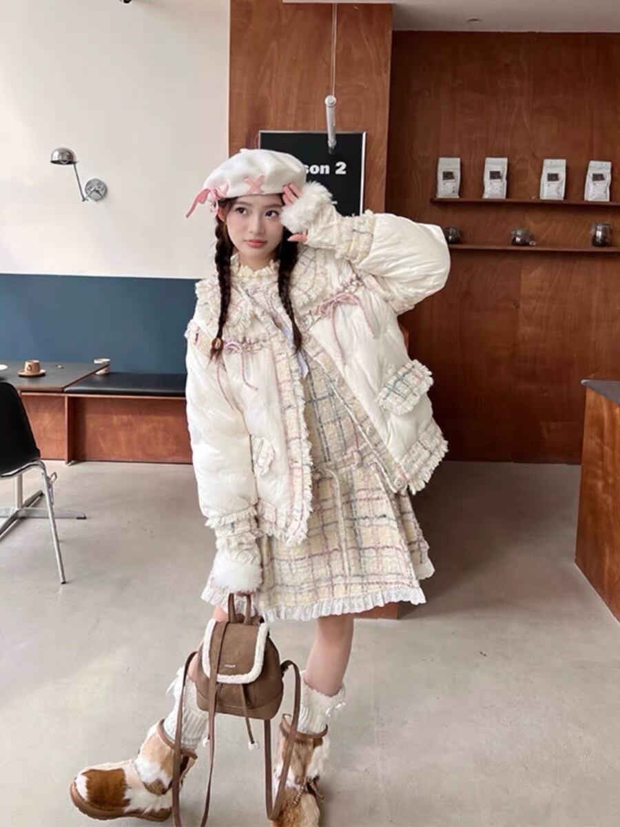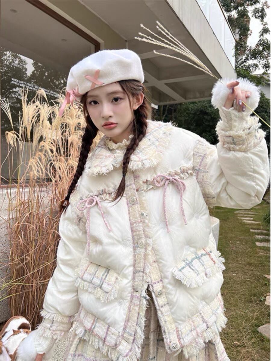 白 チェック コート アウター ジャケット ピンク 可愛い