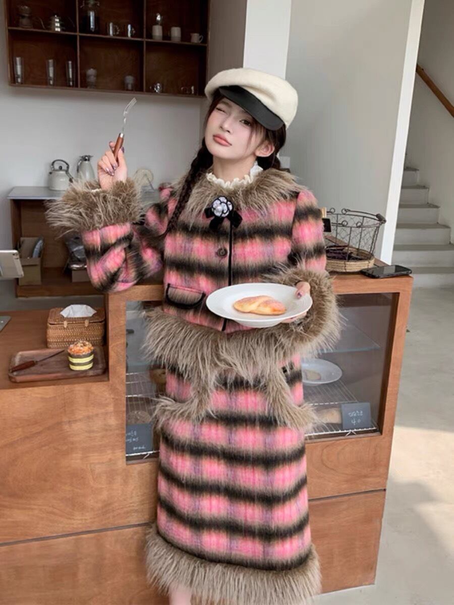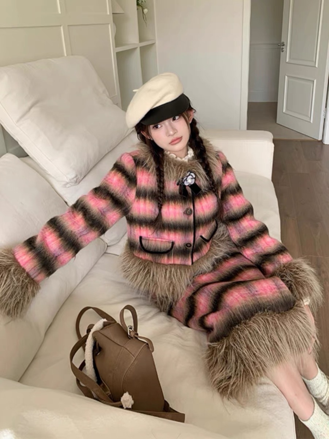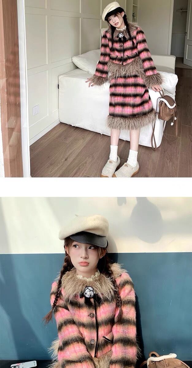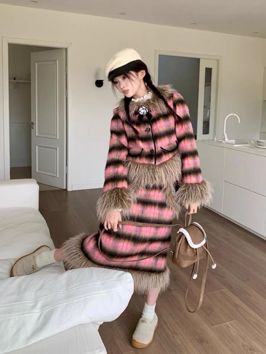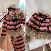 【ジャケット】ピンク オレンジ チェック アウター カーディガン