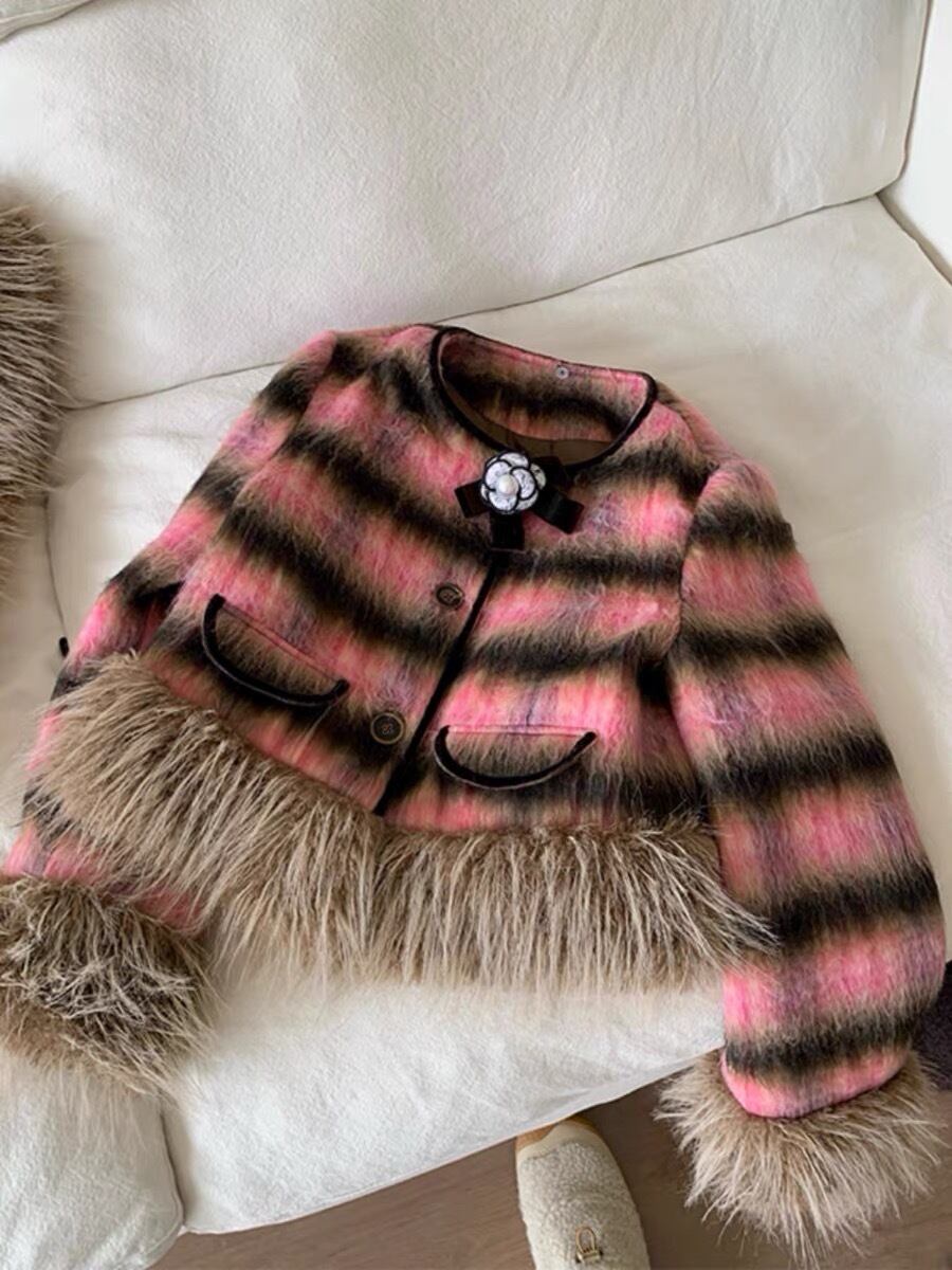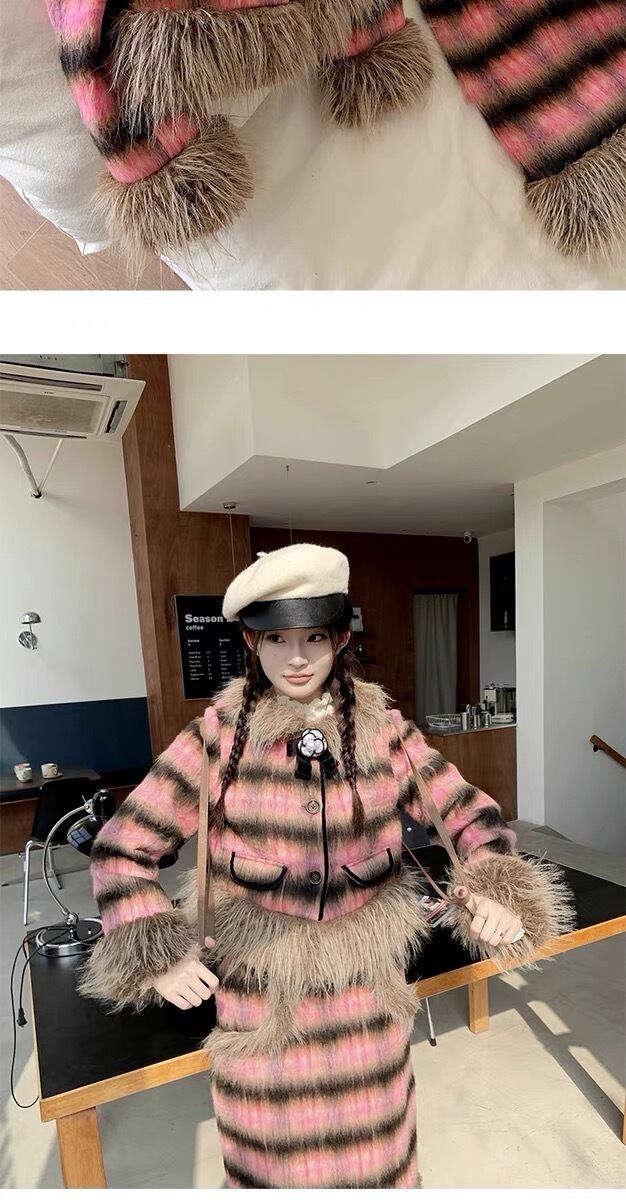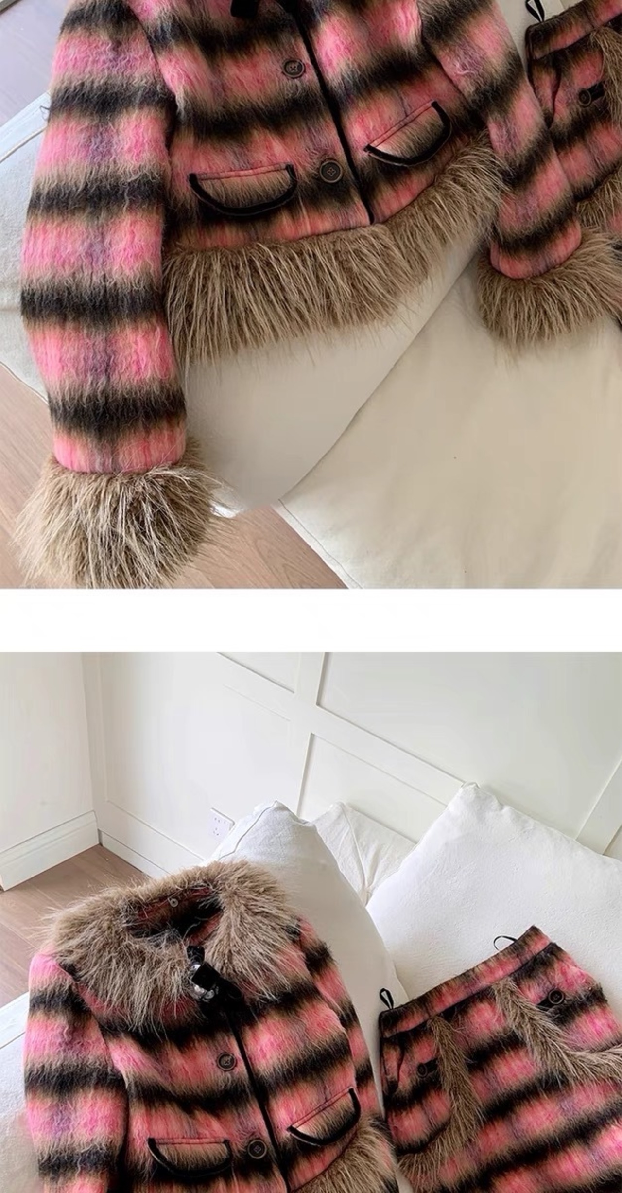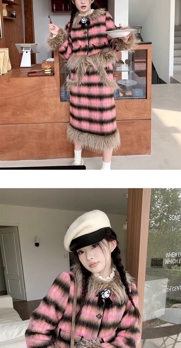 【ジャケット】ピンク オレンジ チェック アウター カーディガン