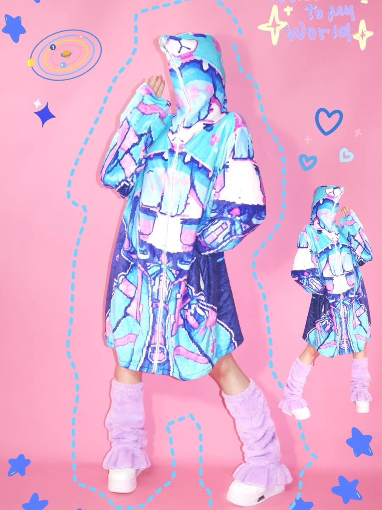 【アウター】水色 紫 スウェット カジュアル パーカー