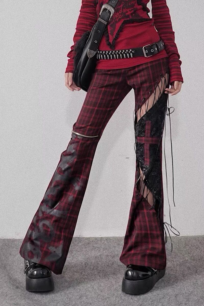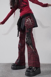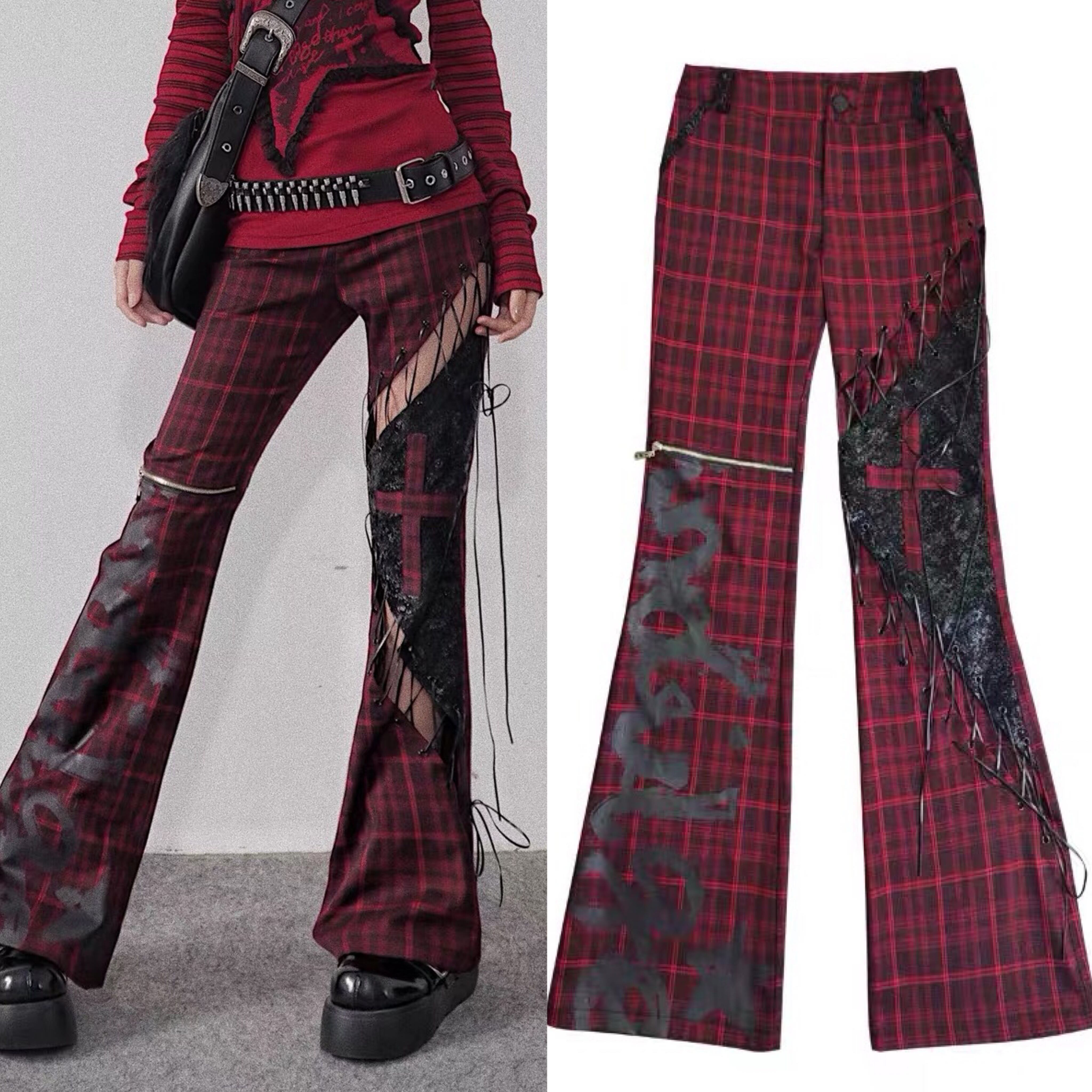 パンツ ボトムス 赤 チェック 黒 ロック