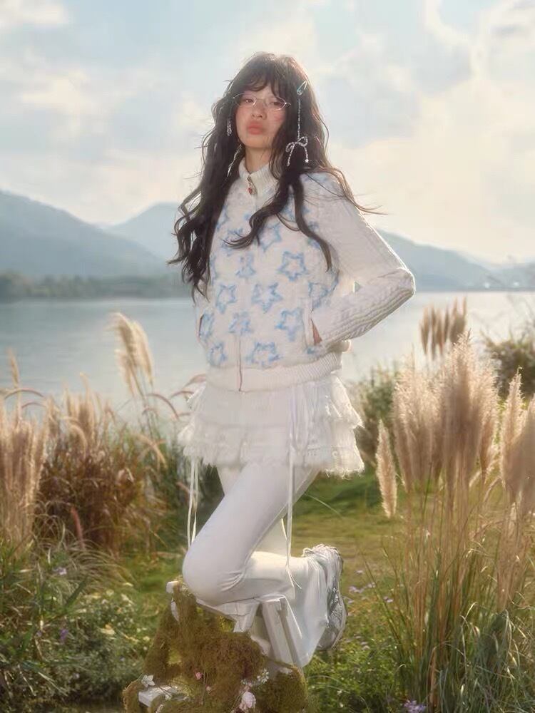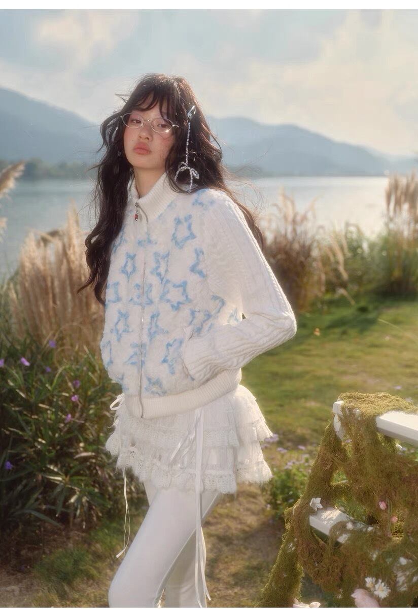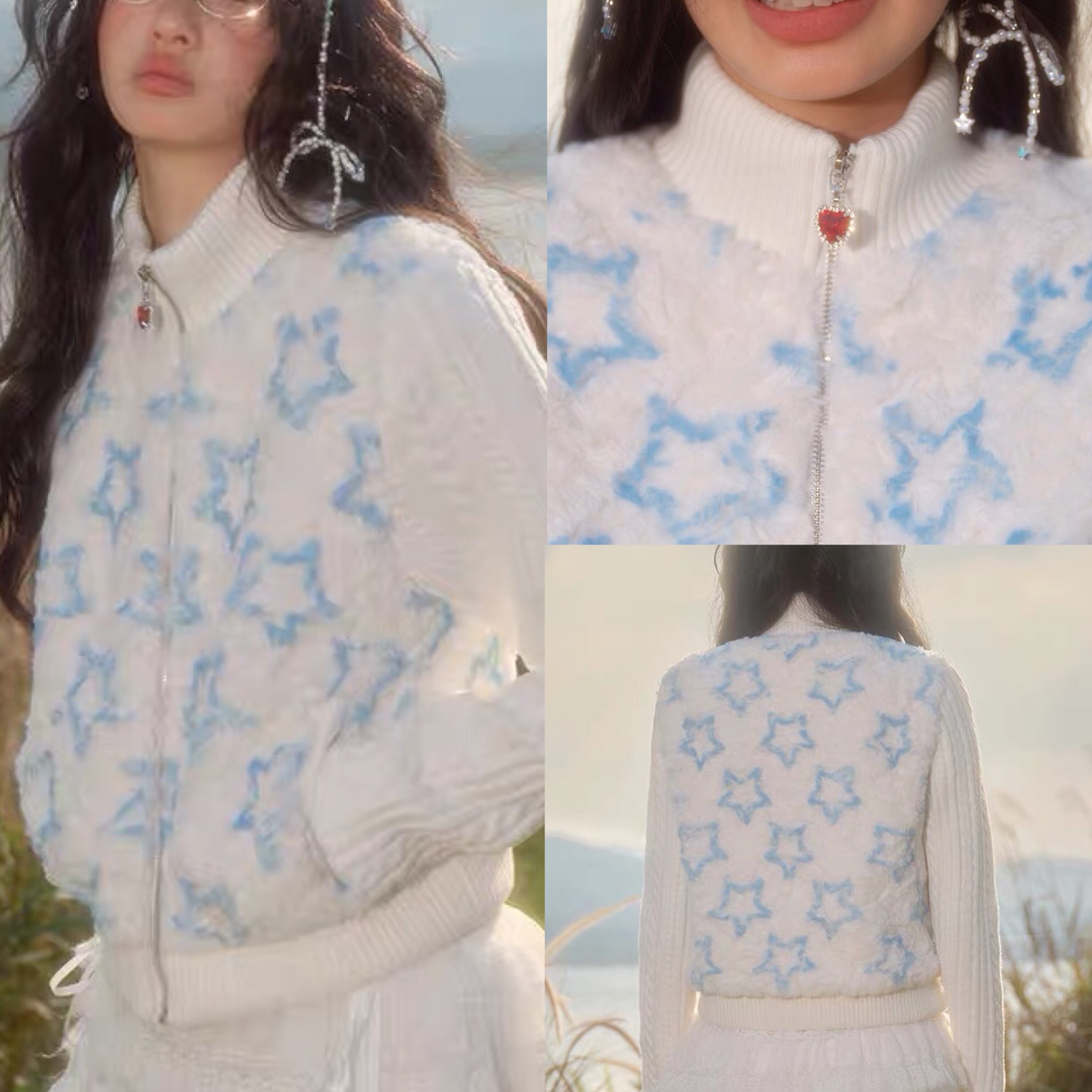 ジャケット ジャンパー 星 白 アウター カーディガン