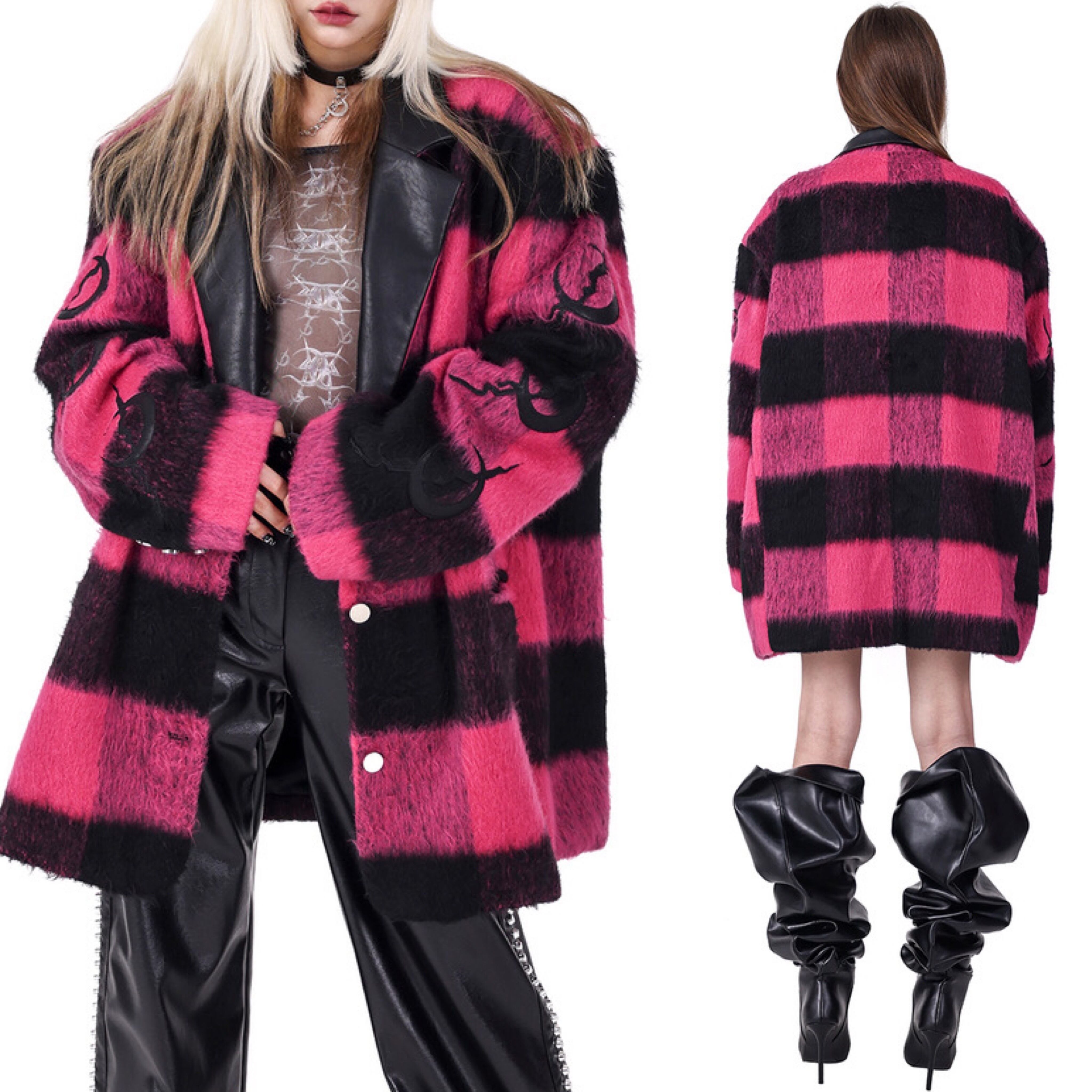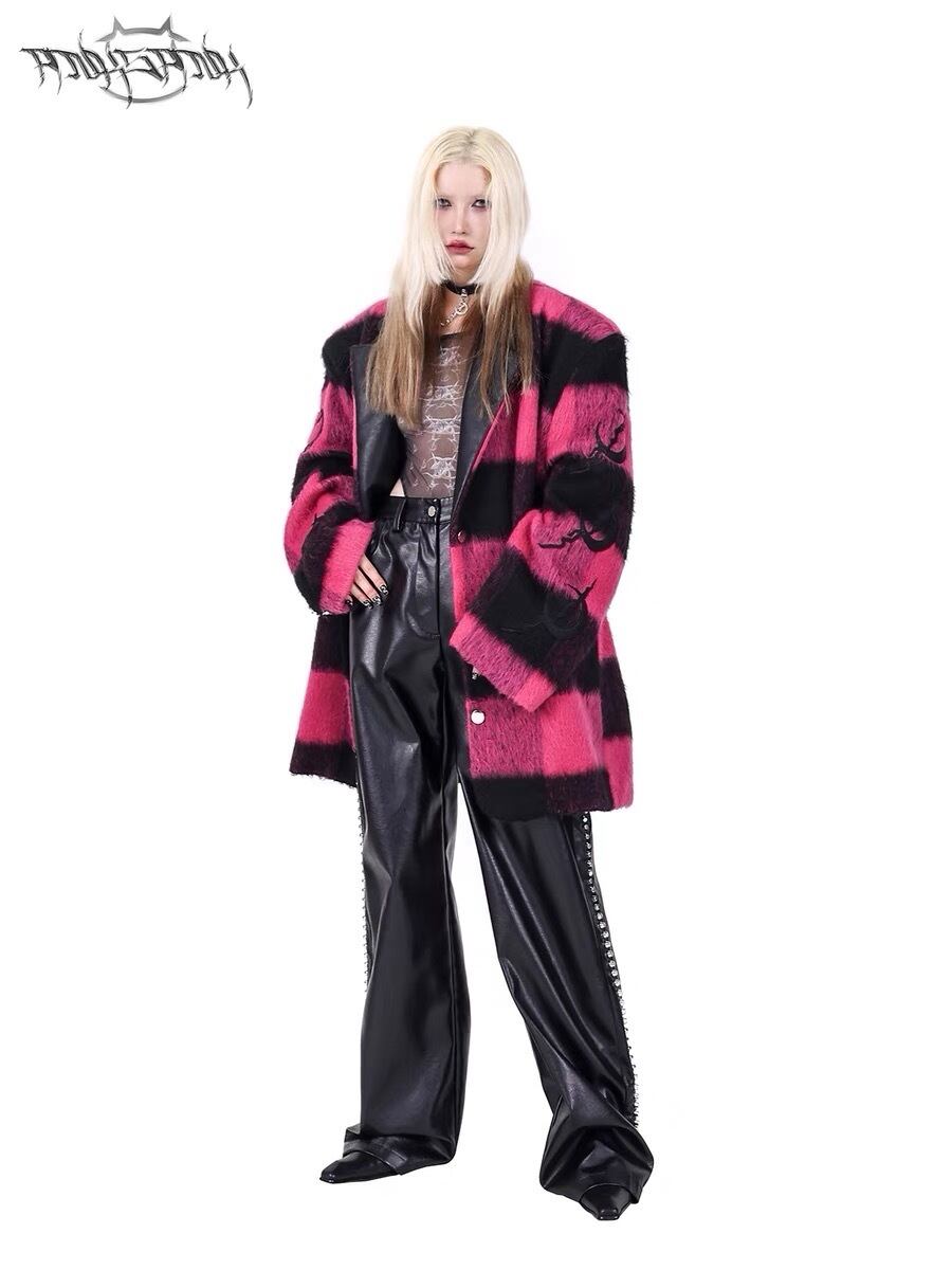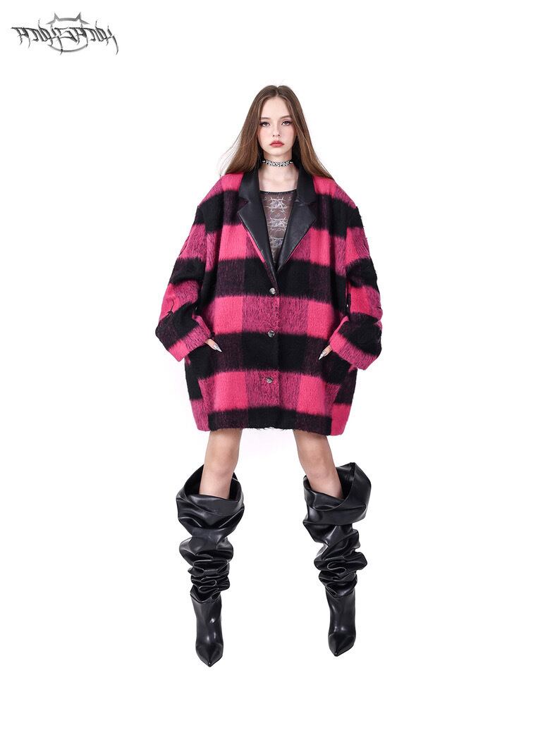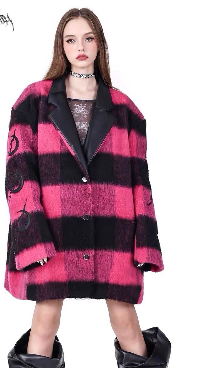 ジャケット ピンク チェック アウター コート ゆったり