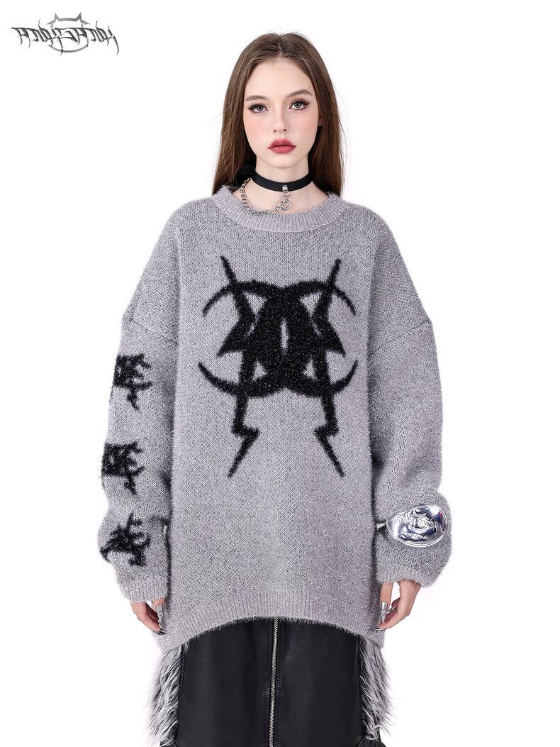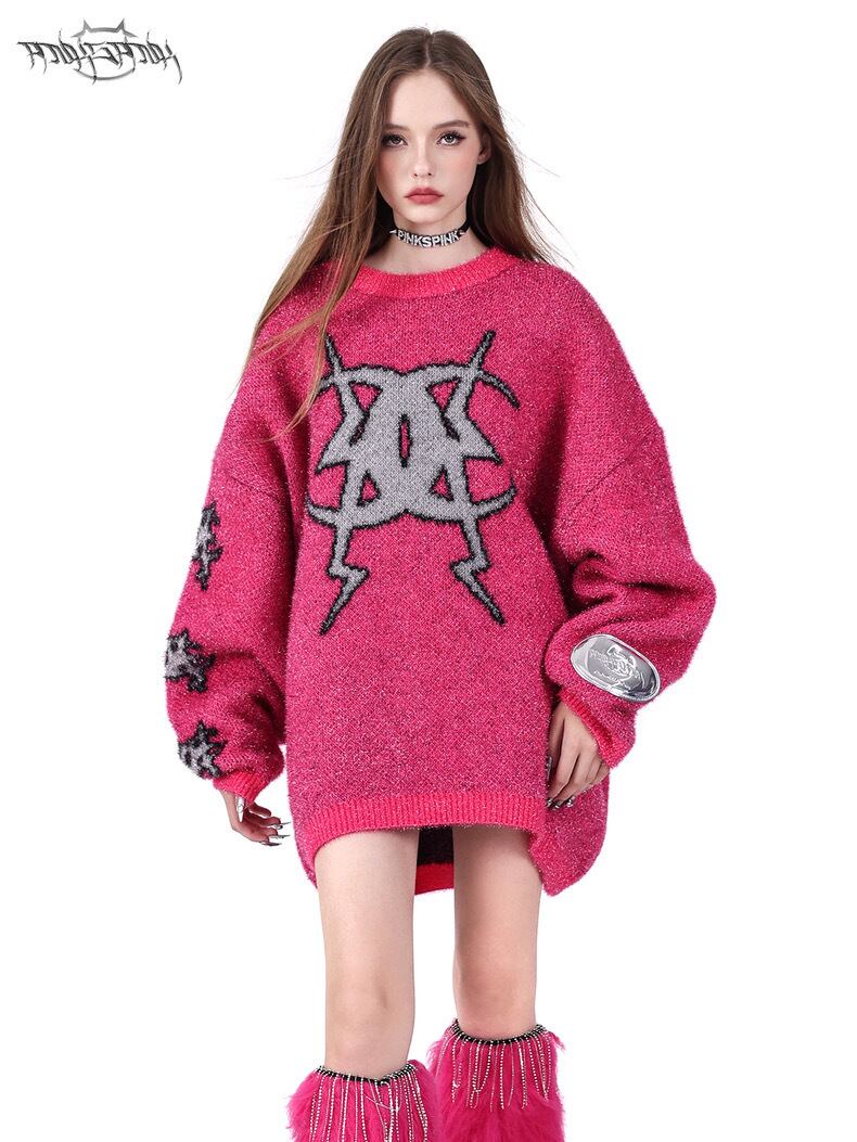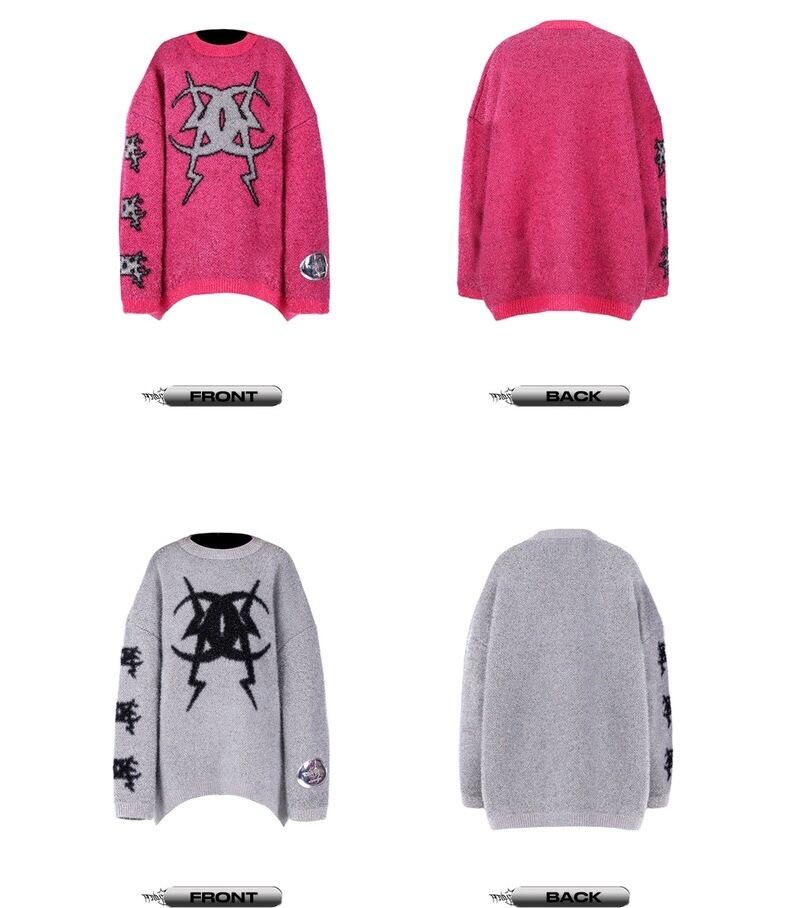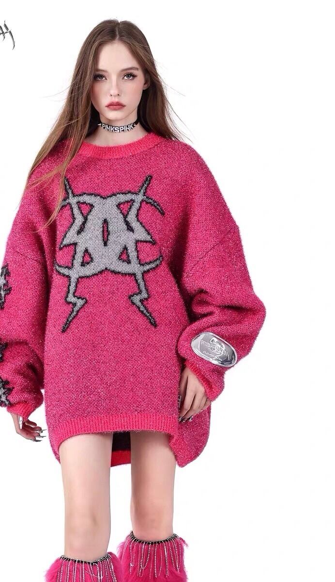 セーター ニット グレー ピンク ゆったり ダメージ